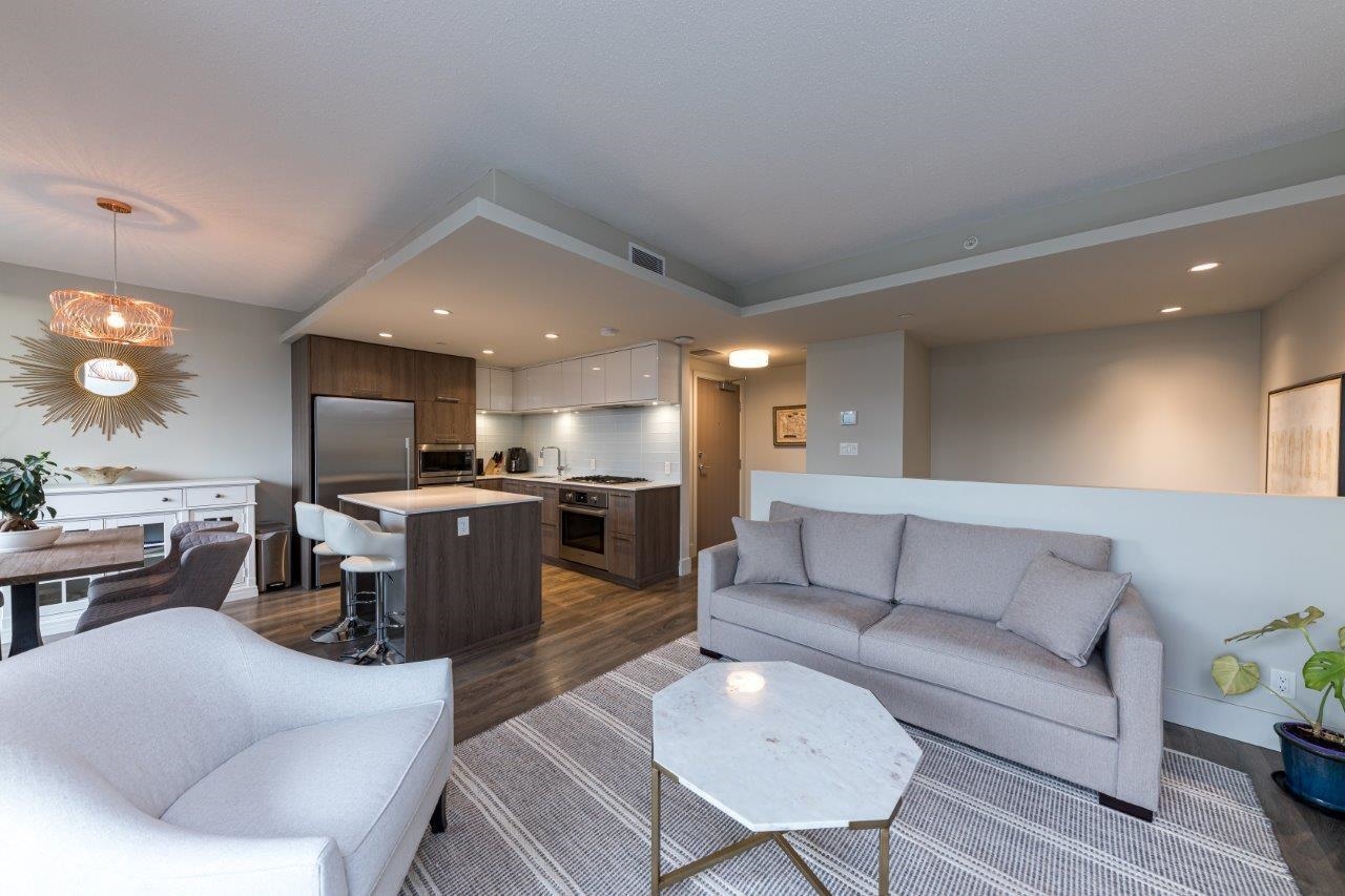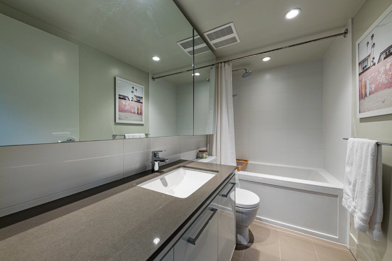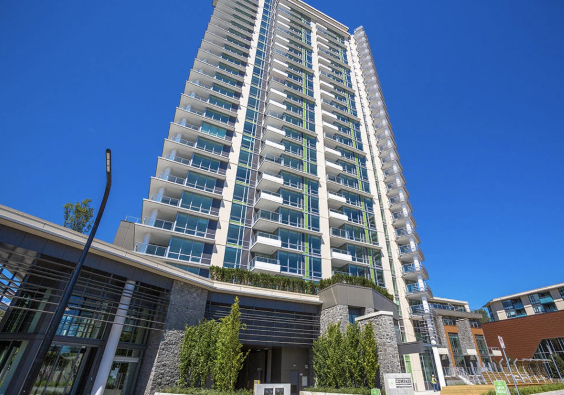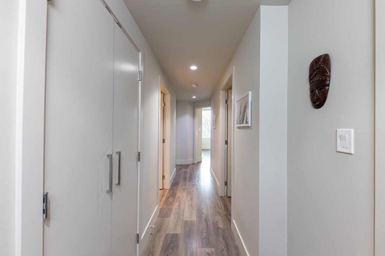 Exceptional value in Seylynn Village! Rare 2-level, 2-bed + den, 2-bath all-concrete home offering privacy, comfort and modern design. Two private entrances create a townhouse feel with condo convenience and safety. Bright open-concept main level flows to an oversized west-facing patio with gas, peaceful views of park, Lynn Creek and mountains — perfect for relaxing or entertaining. Sleek kitchen with quartz counters, stainless steel appliances and gas cooktop. Lower level features a spacious primary with d...