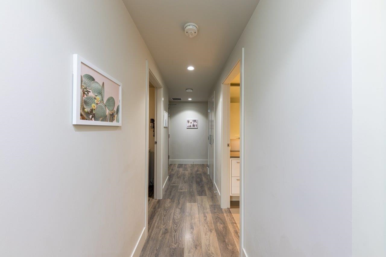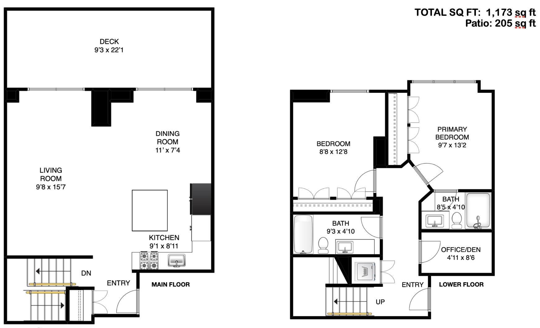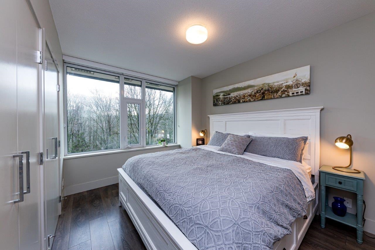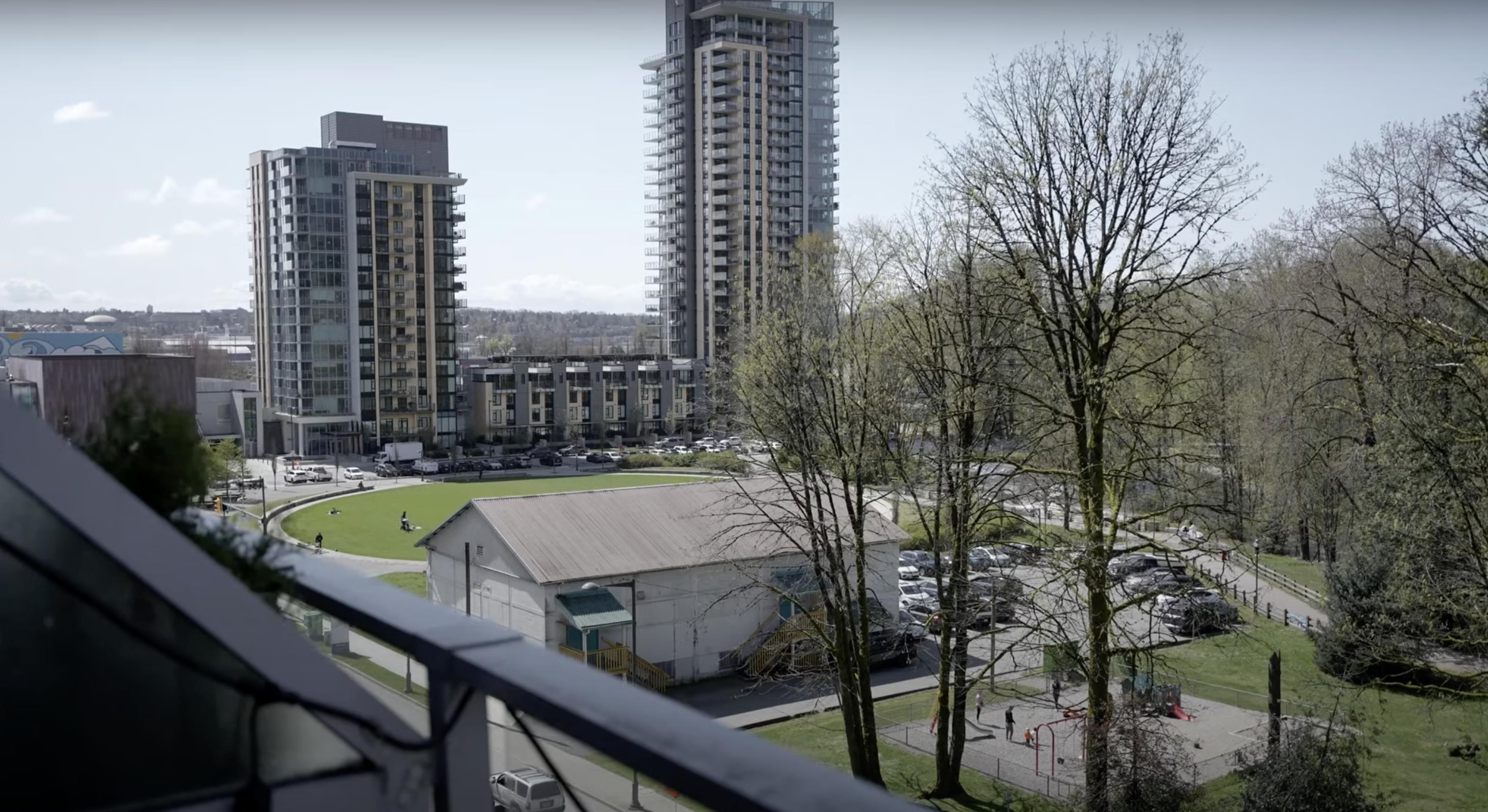 Exceptional value in Seylynn Village! Rare 2-level, 2-bed + den, 2-bath all-concrete home offering privacy, comfort and modern design. Two private entrances create a townhouse feel with condo convenience and safety. Bright open-concept main level flows to an oversized west-facing patio with gas, peaceful views of park, Lynn Creek and mountains — perfect for relaxing or entertaining. Sleek kitchen with quartz counters, stainless steel appliances and gas cooktop. Lower level features a spacious primary with d...