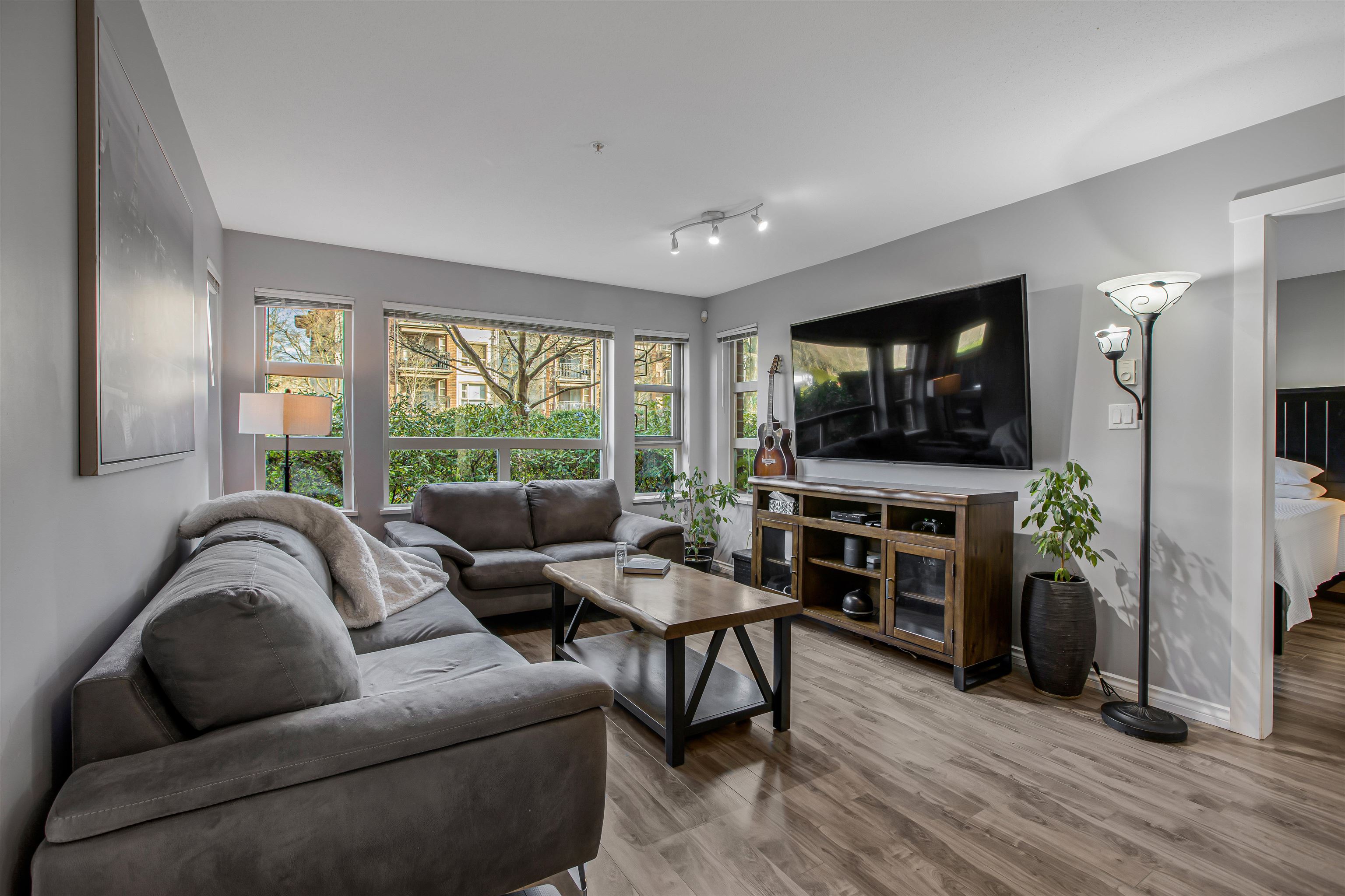 IMMACULATE - 2 bed, 2 full bath bright corner unit with a 300+ sq ft wrap-around patio will capture your attention the moment you walk in. This condo feels like a small home with amazing sight-lines with an effective and bright floor plan. New Laminate flooring throughout, new paint, meticulously cared for with windows galore. Centrally located, you are minutes walk to Lansdown Mall, Skytrain and an abundance of restaurants and cafe's of your choice. Lion's Park by Polygon provides a tranquil tree lined ...