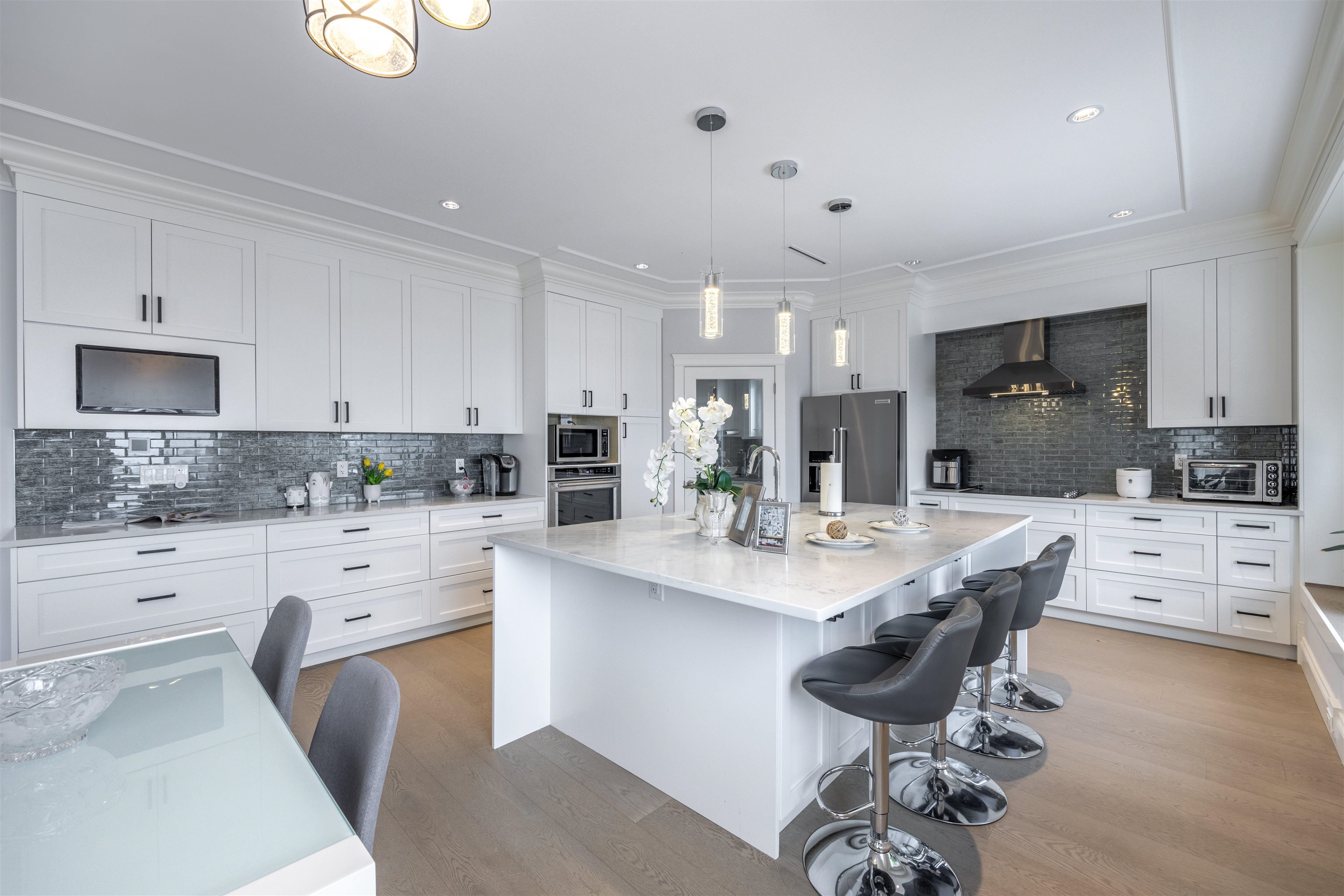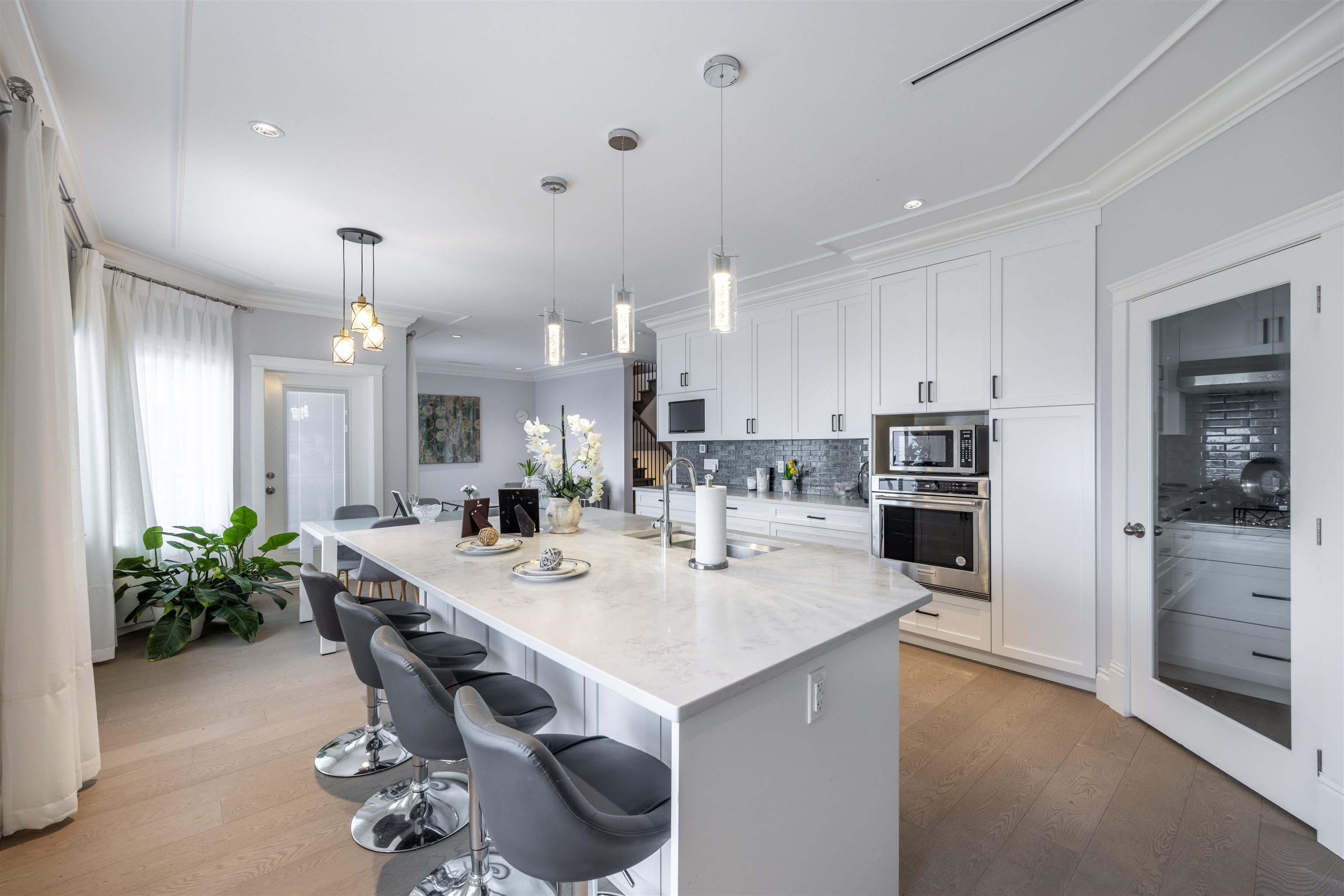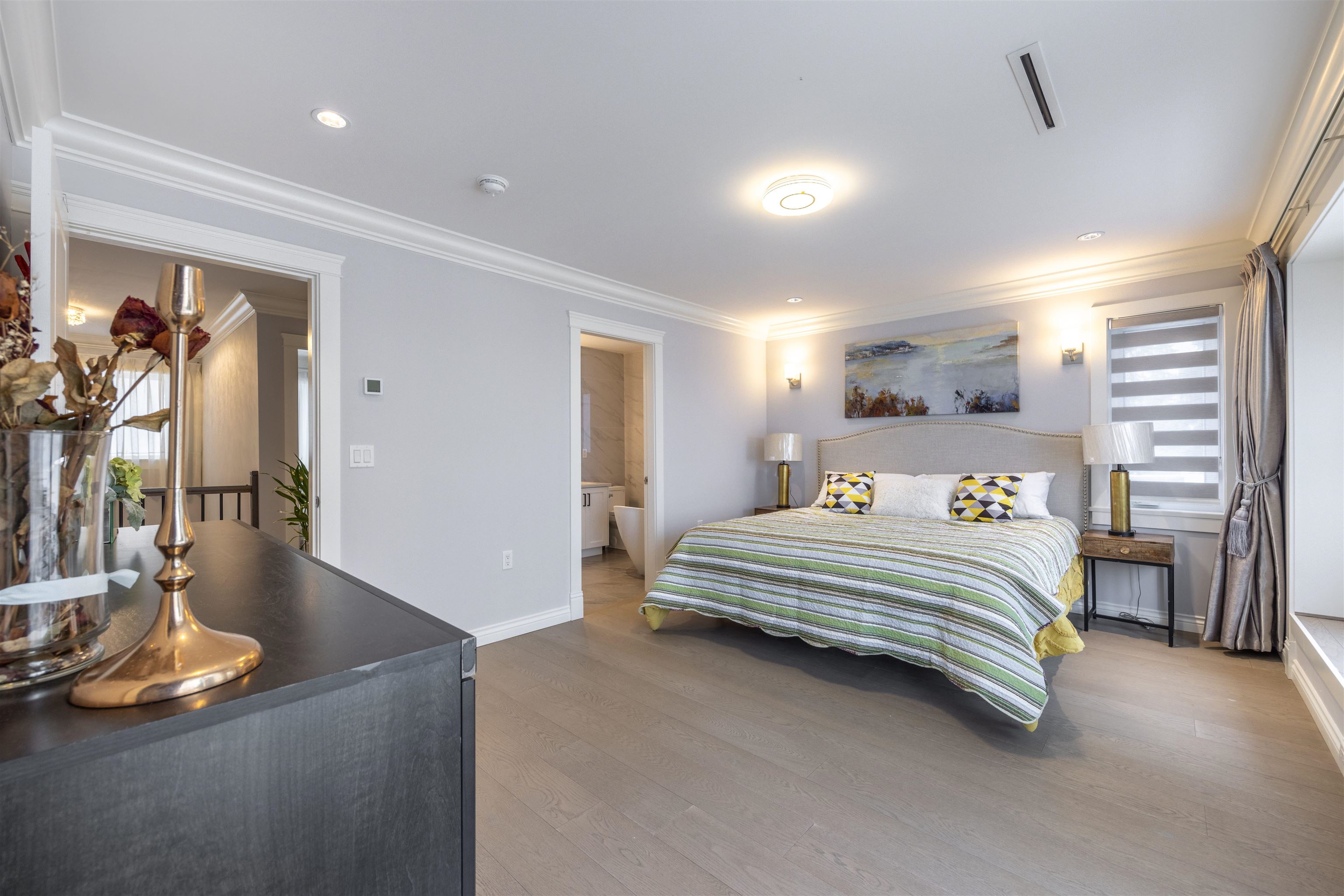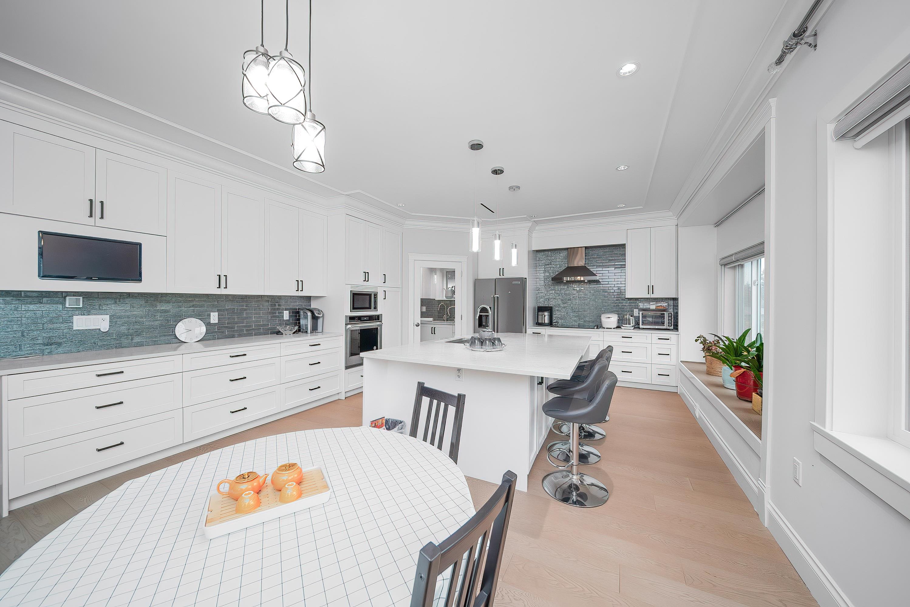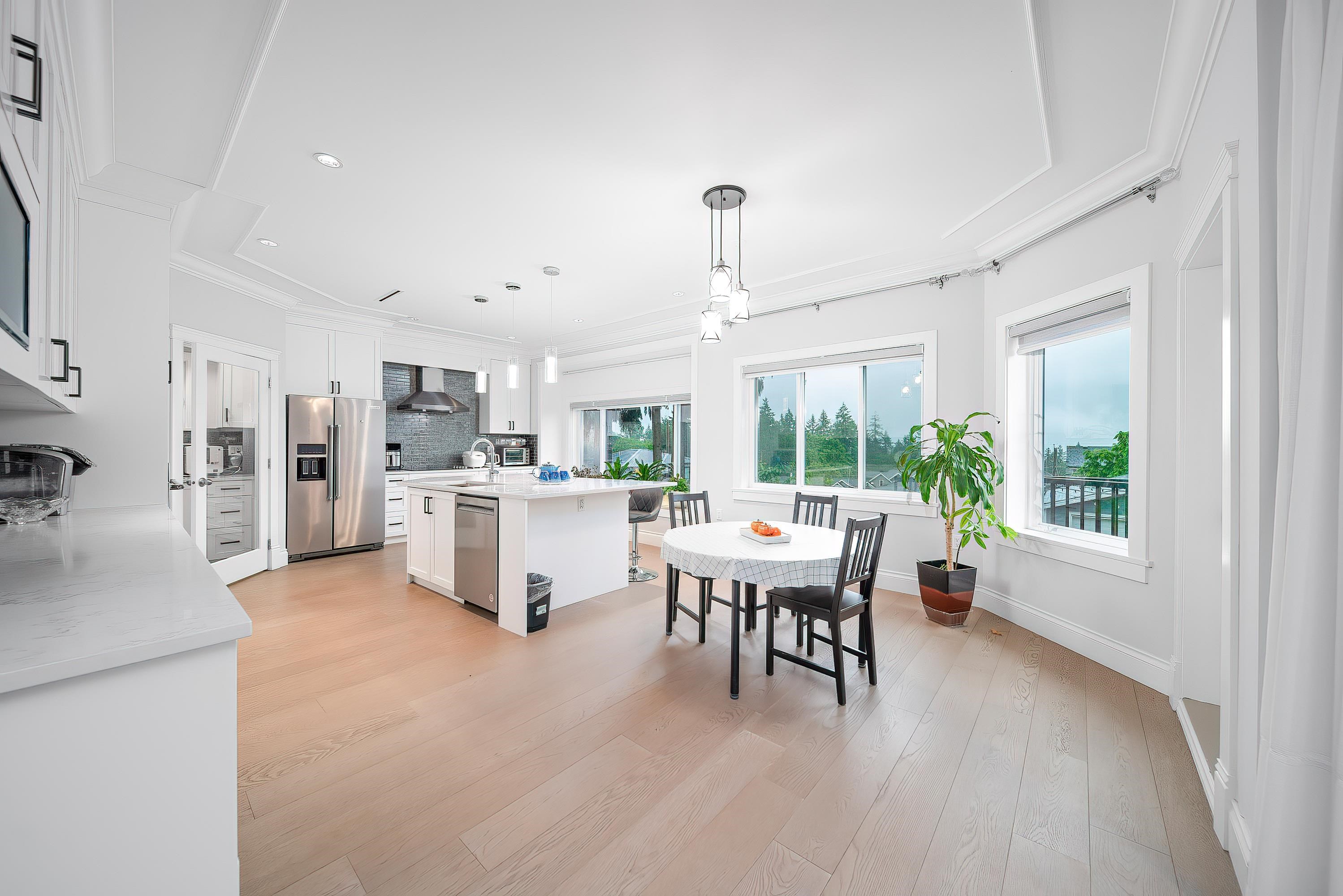Welcome to this 2022 custom-built residence nestled in Burnaby's coveted South Slope neighborhood. This expansive home offers 9 beds and 7 baths, thoughtfully designed to accommodate both comfort and luxury. Experience year-round comfort with radiant floor heating and central AC. The spacious kitchen is bathed in natural light, offering picturesque views and equipped with high-end appliances. Additional soundproofing materials have been installed within bedroom walls and basement areas to ensure a serene li...