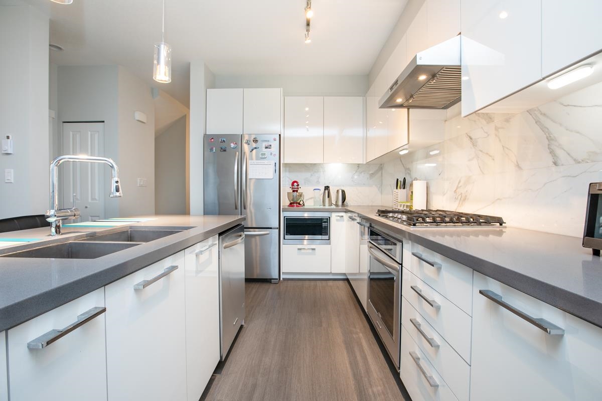 Quality Colborne Lane by Polygon. This duplex-style townhome 4 bedrooms 3.5 baths & den facing South, West and North. Spacious 2000 sqft with a contemporary designed gourmet kitchen, Quartz Countertop, S/S appliances, Gas Stove, next to family room and walk-out balcony with mountain view and firework. Quiet Cul-de-sac in a desirable neighbourhood. Double side by side garage with the convenience of street-level parking right at front door. Short walk to Smiling Creek Elementary and close to pristine forested...