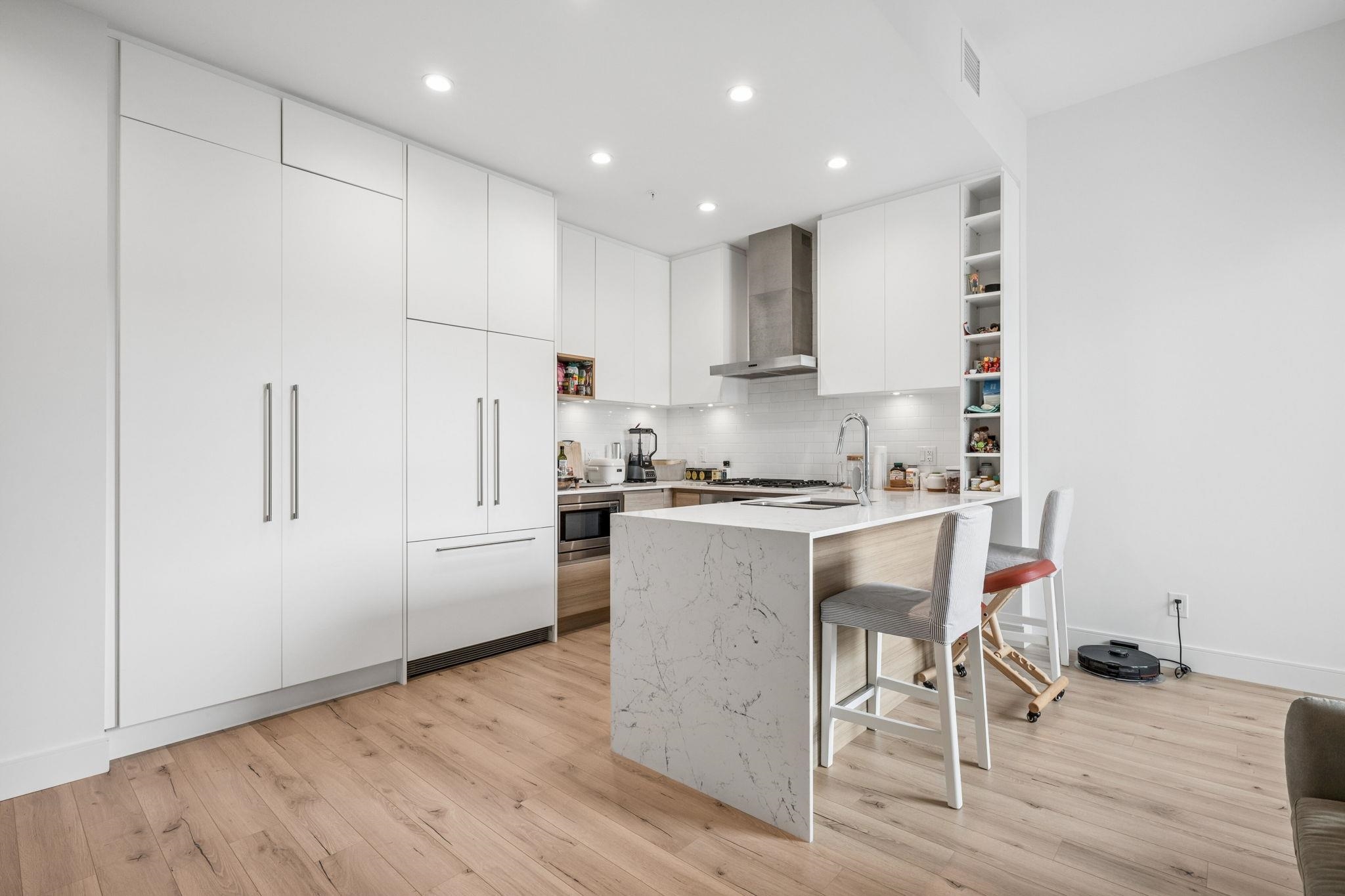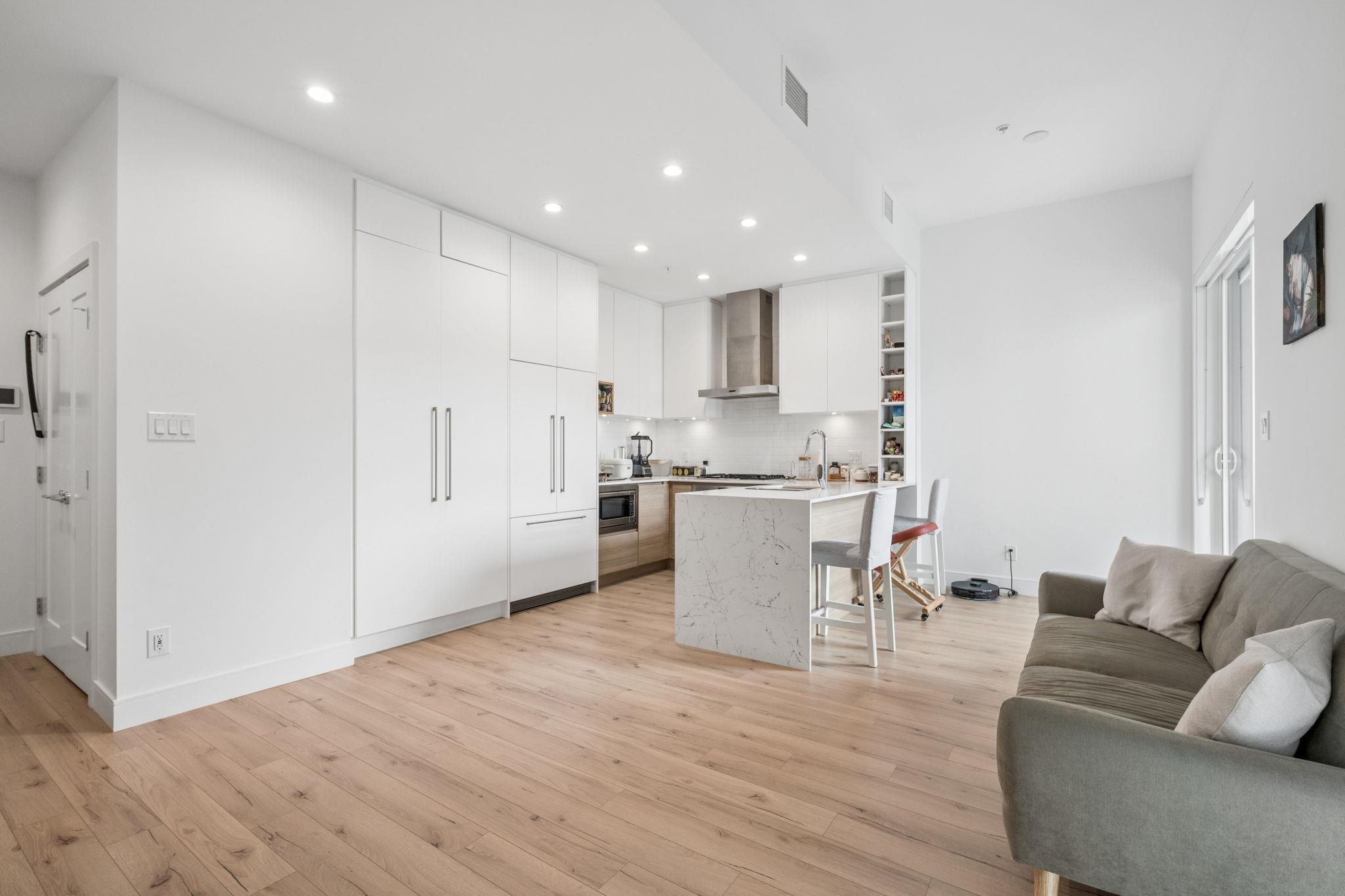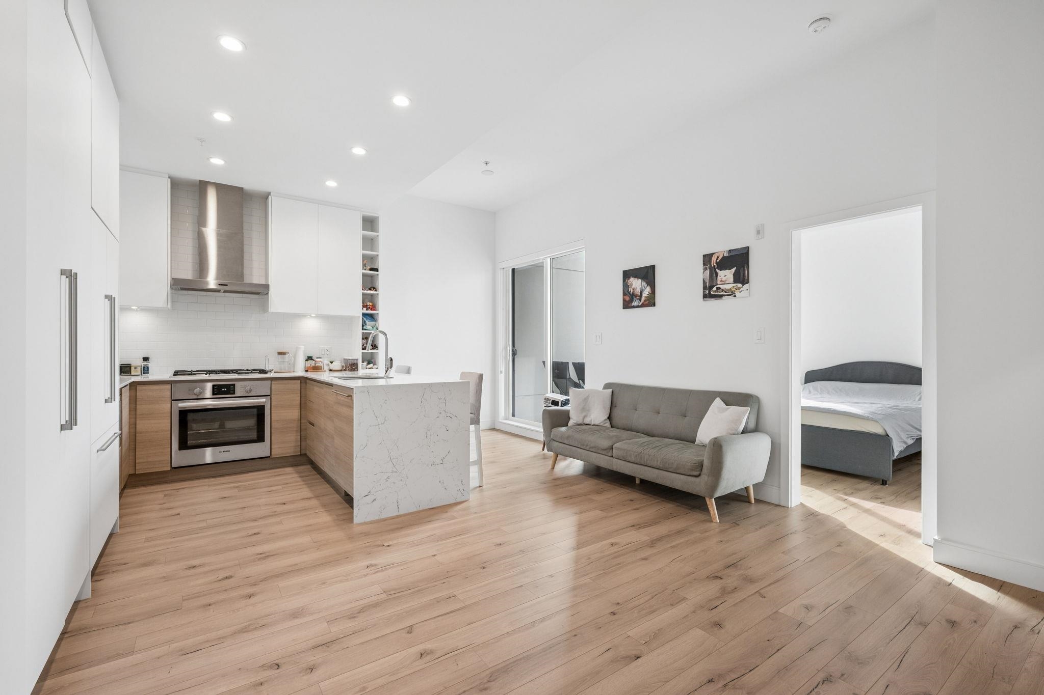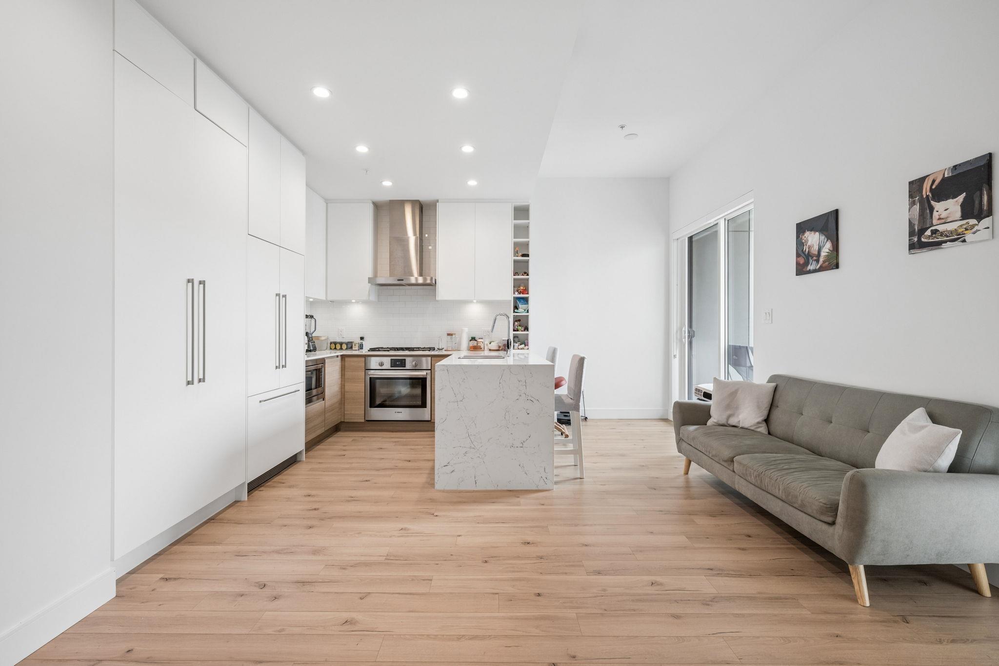 This beautifully designed 1 Bed & DEN! offers modern, open-concept living with soaring ceilings, oversized windows, and premium finishings throughout. The chef-inspired kitchen is the centrepiece, featuring a stunning quartz waterfall island, gas cooktop, and custom pantry—perfect for both everyday living and entertaining. The spacious bedroom includes a large, thoughtfully organized closet, while the functional layout maximizes comfort and style.Located just steps from Brewers Row, Rocky Point Park, the Sh...