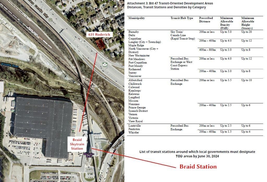 Builders or investors! Prime 7,455 sq.ft. RT-1 lot in Southwest Coquitlam with mutifamily triplex DP submitted—no rezoning required. Quiet cul-de-sac location with a 2-bed, 1-bath home generating $2,350/mo holding income (month-to-month tenant). Just a 7-min walk to Braid SkyTrain, this site also falls within Tier 2 of the Braid Skytrain TOA under Bill 47, offering future redevelopment potential up to 4.0 FSR and 12 storeys. Bonus: opportunity to acquire the adjacent 3,396 sq.ft. City-owned lot for an even ...