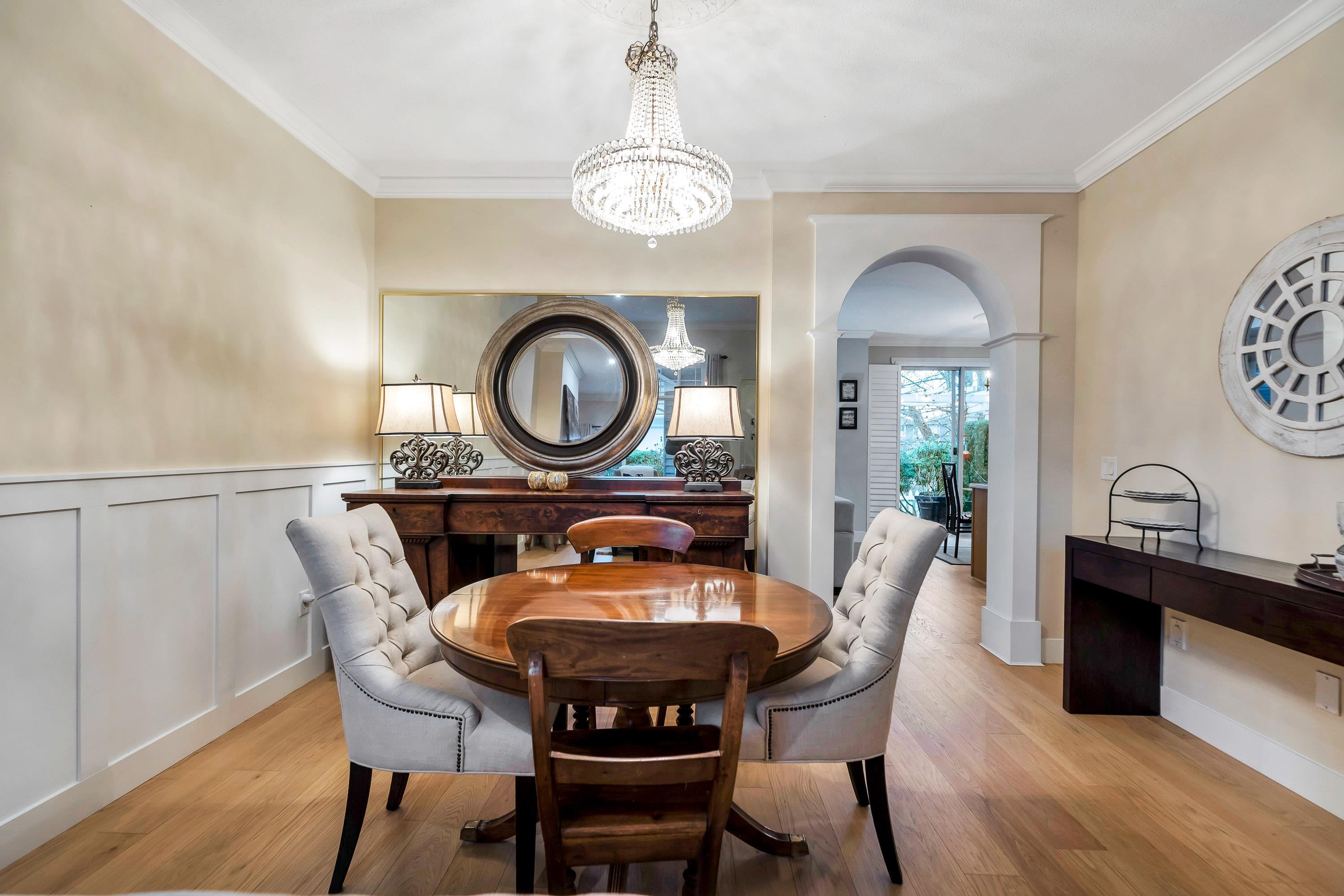 Chesapeake landing-this unit is located along the tranquil waterway offering privacy year round with a landscaped private yard and extended patio. The tasteful updates are throughout the home, hardwood flooring on the main floor, wainscotting, mirrored door to understairs storage, kitchen updated (Wolf 4 burner gas stove).Spacious living room/dining area flow into family room and kitchen. California shutters allow for the natural light and privacy. Upper floor primary hardwood flooring adds to the luxury o...