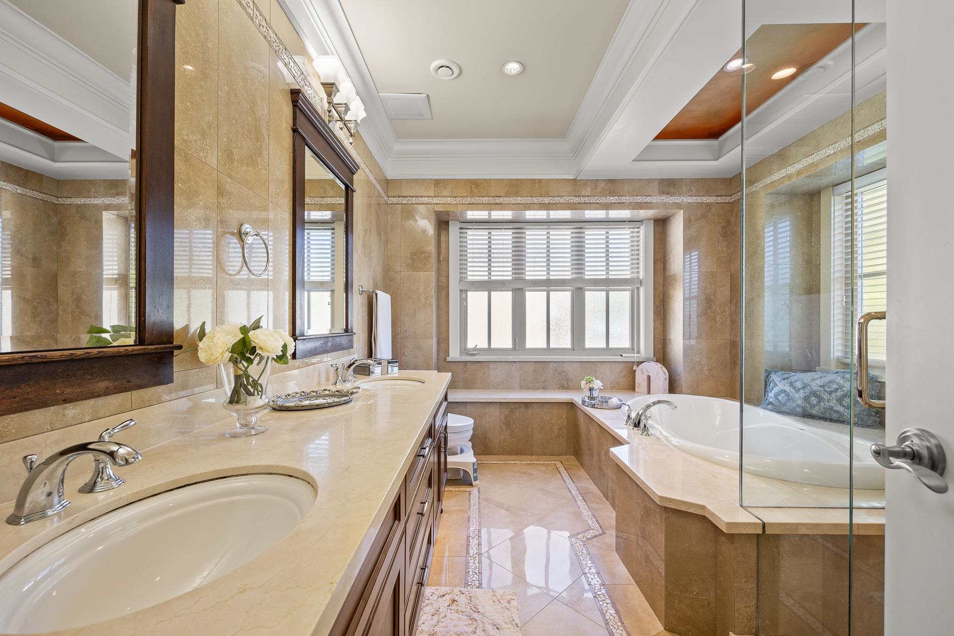 Elegant Custom Home in Prestigious South Granville Luxurious 4-level character home built by TARA DEVELOPMENTS with design by a renowned designer. Located on the high side of a quiet tree-lined street, this residence offers 6 bedrooms & 7 baths with outstanding quality, timeless style, and meticulous attention to detail. Features include a grand foyer with soaring ceilings, walnut hardwood floors, extensive granite & marble, gourmet kitchen with Sub-Zero & Wolf appliances, maple cabinetry, home theatre, wet...