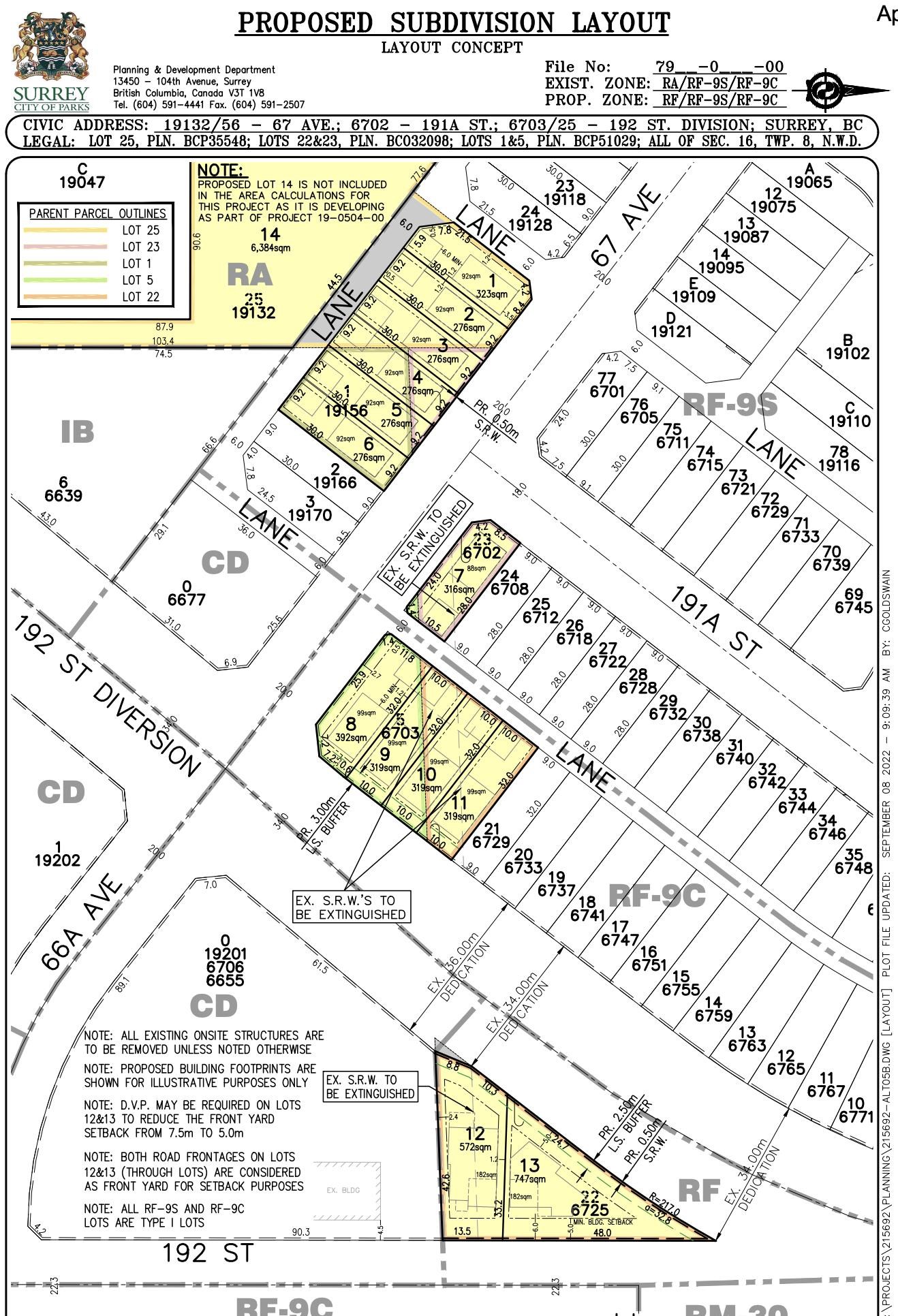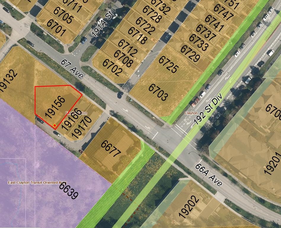 Opportunity to acquire a 7,707 SF parcel in Cloverdale. Located within the East Clayton NCP which designates this property as 10-15 UPA medium density and also falling under Tier 3 TOD designation for min 3.0 FAR/8 Storey Development. The site was a component of a previously proposed 13 lot subdivision (Proj #21-0276) which may be revived by assembling neighboring parcels (19156 67 Ave also listed for sale). Minutes to shopping and restaurants in Clayton & Willow brook Mall, Clayton Community Centre and sho...