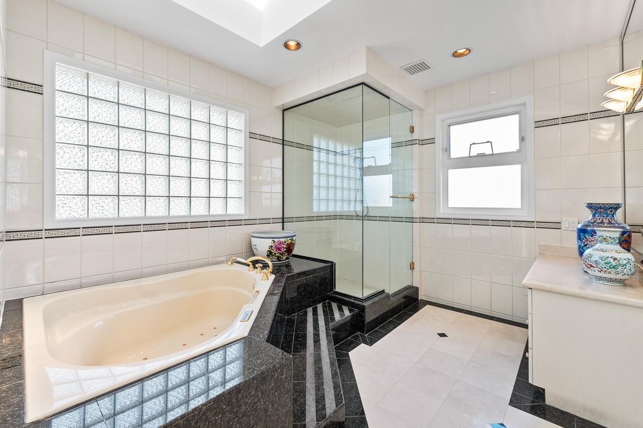Rare Gem in Prestigious Chatterton Road ! Huge lot 11389 SqFt, This 5024sf SOUTH facing & European-style custom-built home with 6 beds & 7 baths . Architectural design with Roman arch & columns. Grand foyer with staircase overlooking courtyard. 10' height ceilings with extensive use of crown moulding, Huge gourmet kitchen . NEW FLOOR up. 1 Den & 1 bed with 1 full bath with Separate Entrance ! The HUGE master bedroom with air-con/ Walking Closet / spa-inspired ensuite bath / private balcony, 5 ensuites up P...