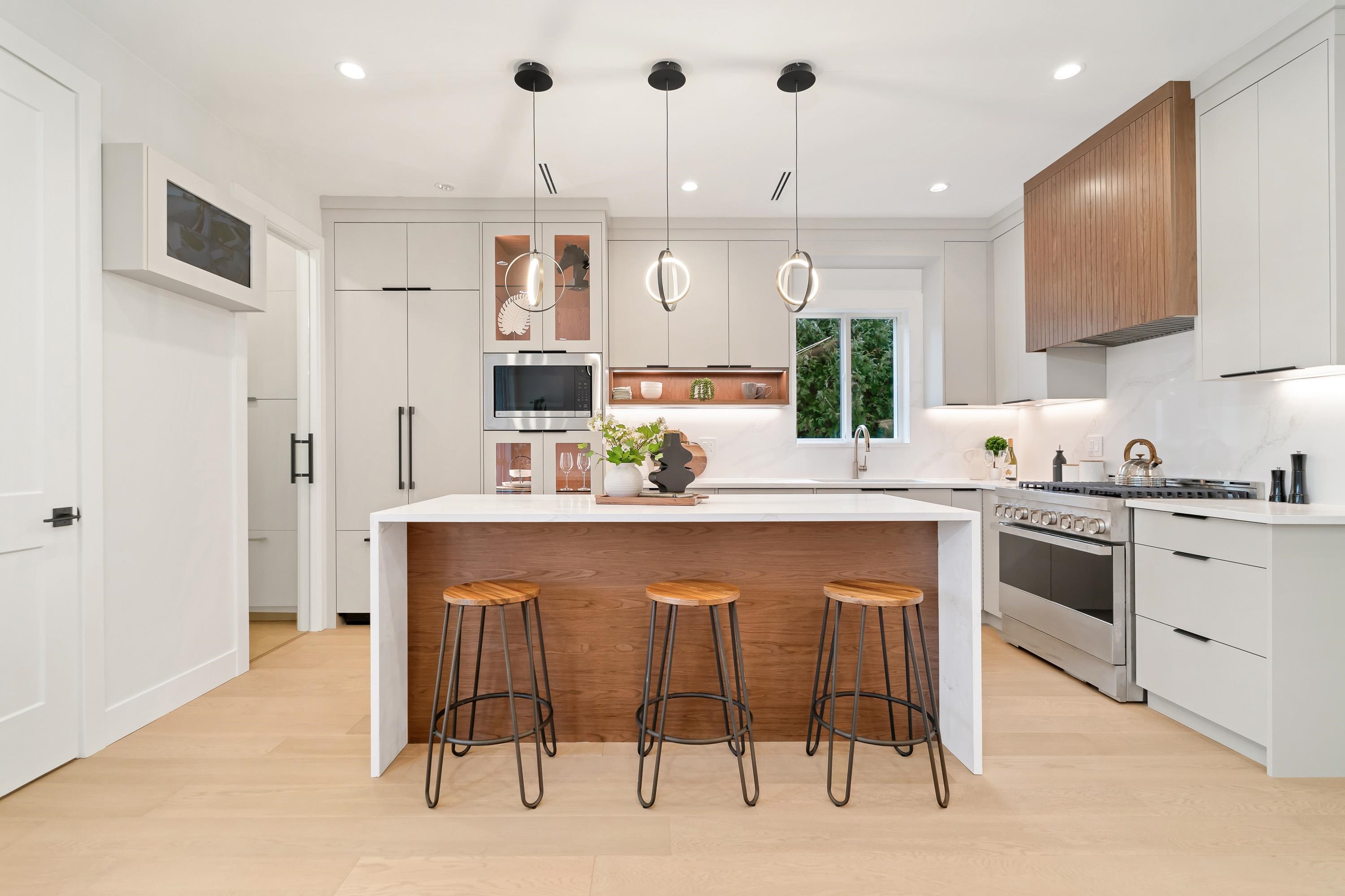 Beautiful 3-storey home situated on a quiet street in one of Burnaby’s most desirable family-friendly neighborhoods. Featuring 8 bedrooms and 5 bathrooms, this spacious residence offers a chef-inspired kitchen with a 36” gas range, built-in fridge, smart home controls, hardwood floors, and radiant in-floor heating throughout. Includes a fully finished 4-bedroom, 2-bath suite — perfect for extended family or strong rental income potential. Enjoy a single garage, additional parking, secure gated access, and ...