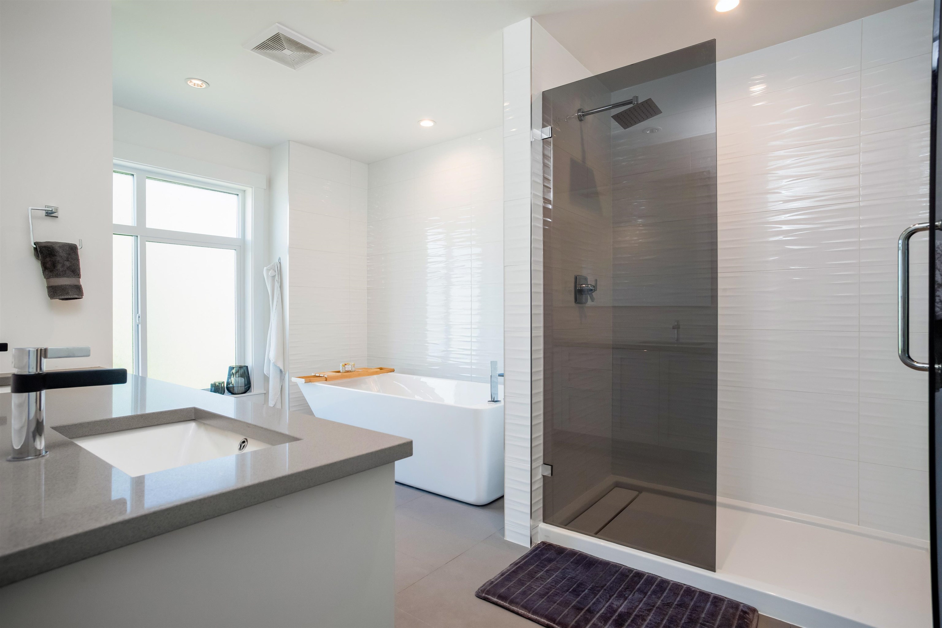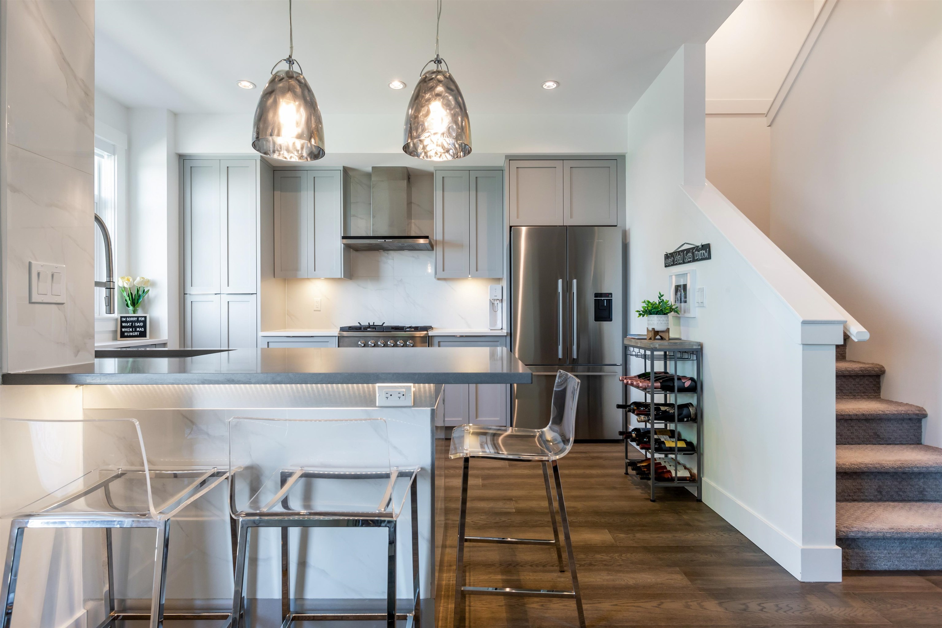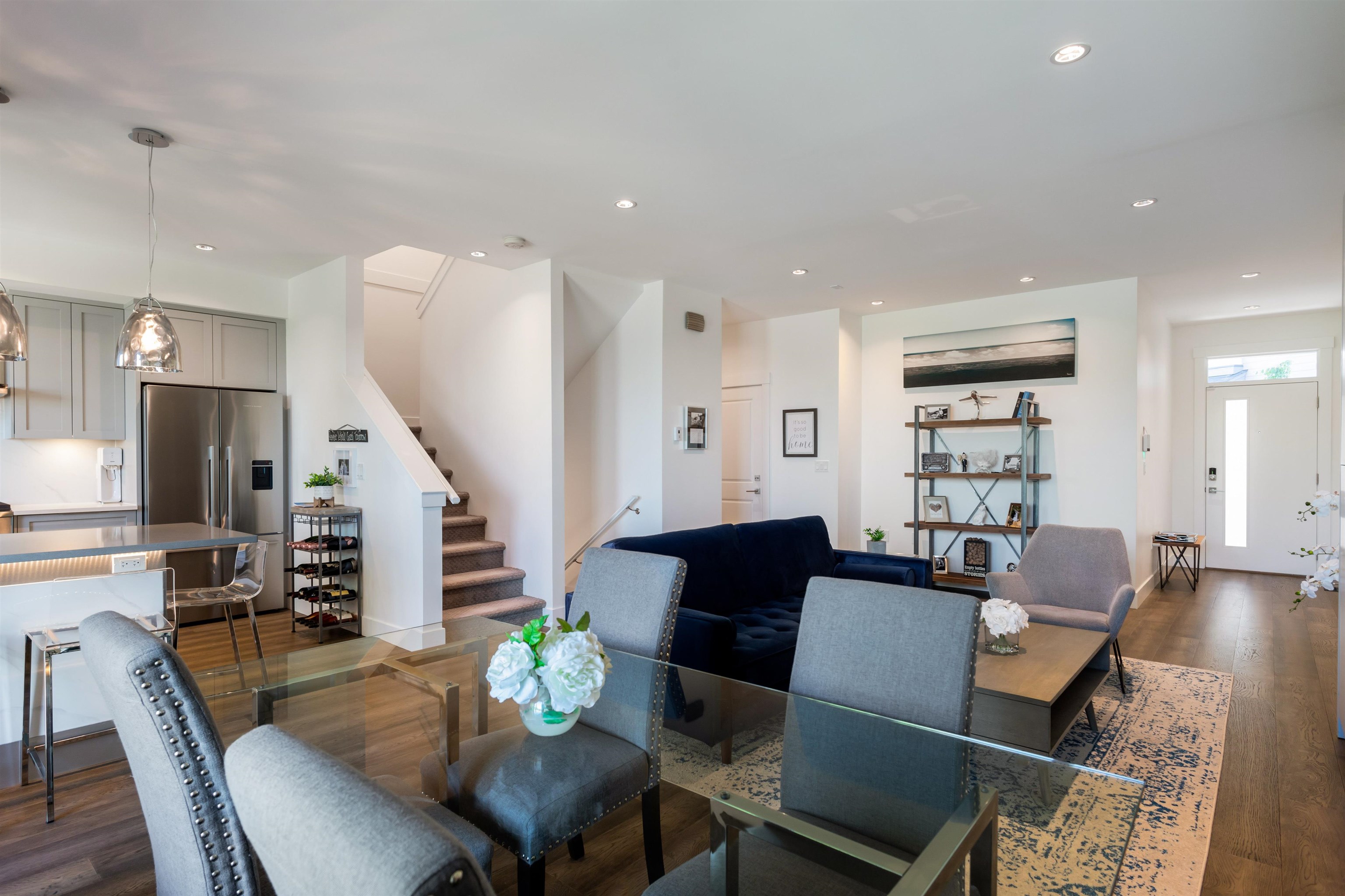 RARE ROOFTOP TOWNHOME WITH STUNNING VIEWS. This 4-bed, 4-bath townhome on Burke Mountain offers 2,621 sq ft of bright, modern living with Fraser River views from two balconies and a massive private rooftop patio. Built in 2020, it features central air, EV charging, engineered hardwood, custom closets, premium appliances, spa-inspired baths, UV roller shades, and a 2-car garage. Perfect for entertaining, with a rooftop ideal for BBQs or morning coffee above the trees. Steps to parks, trails, schools, cafés, ...