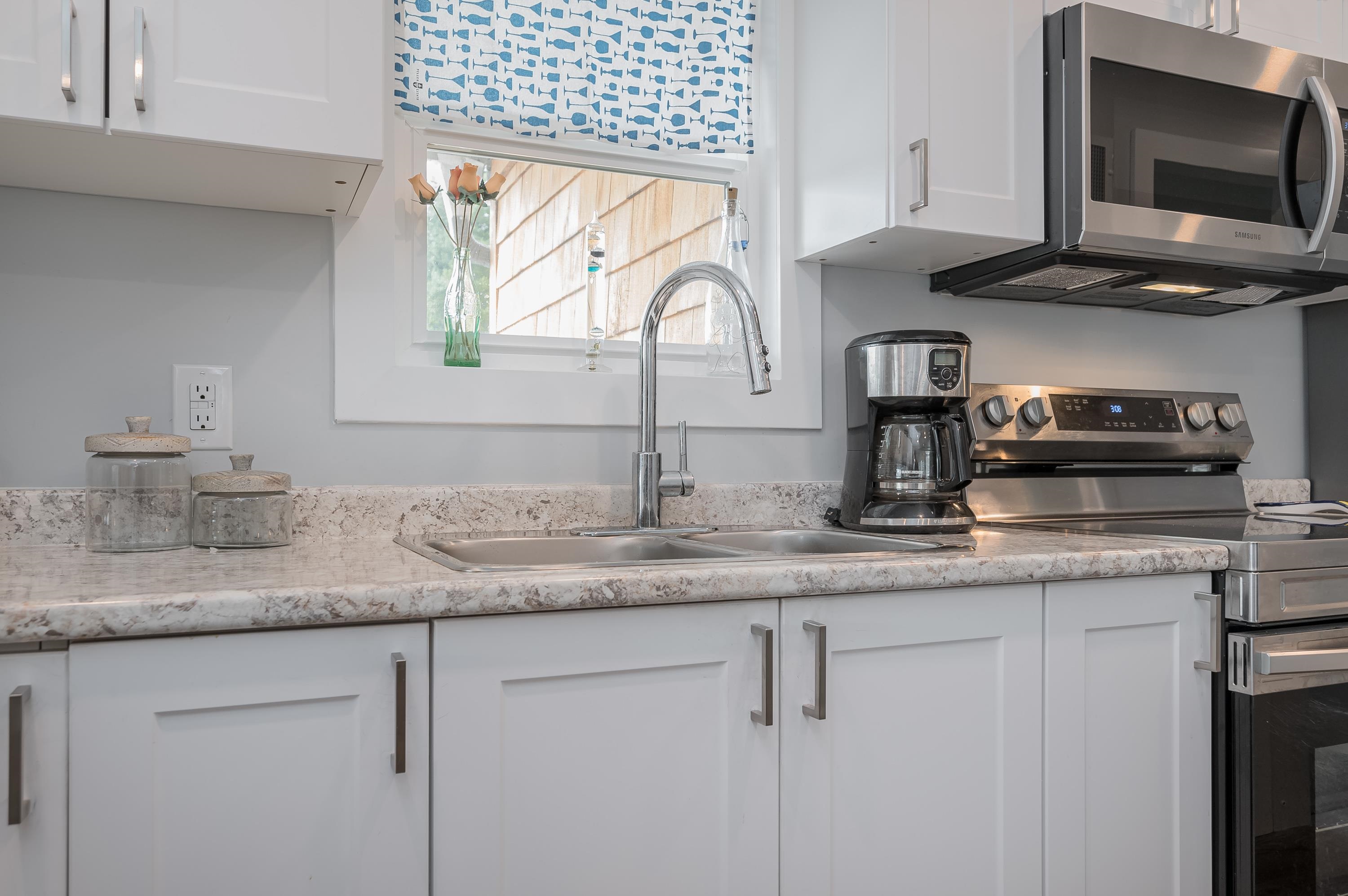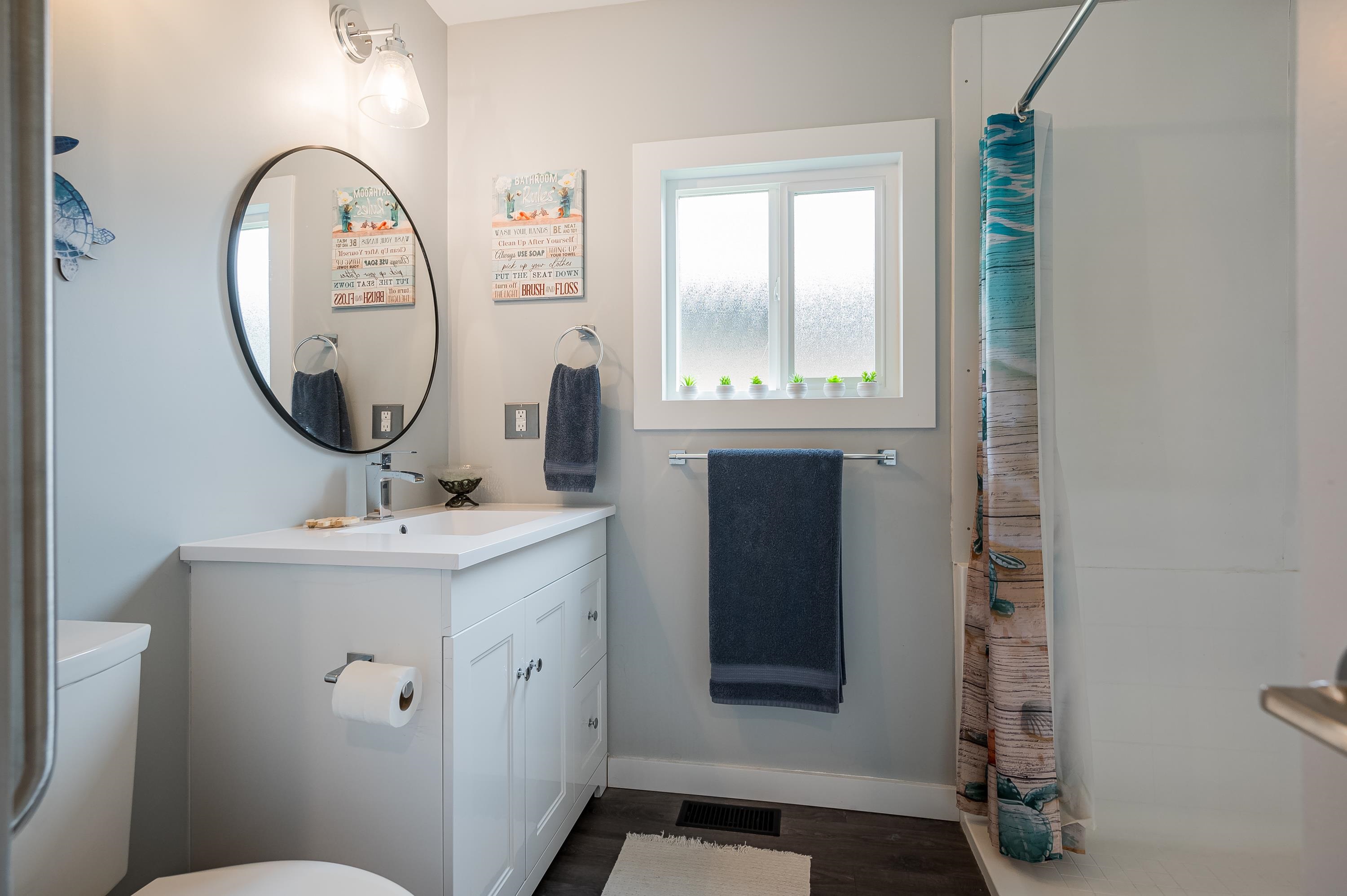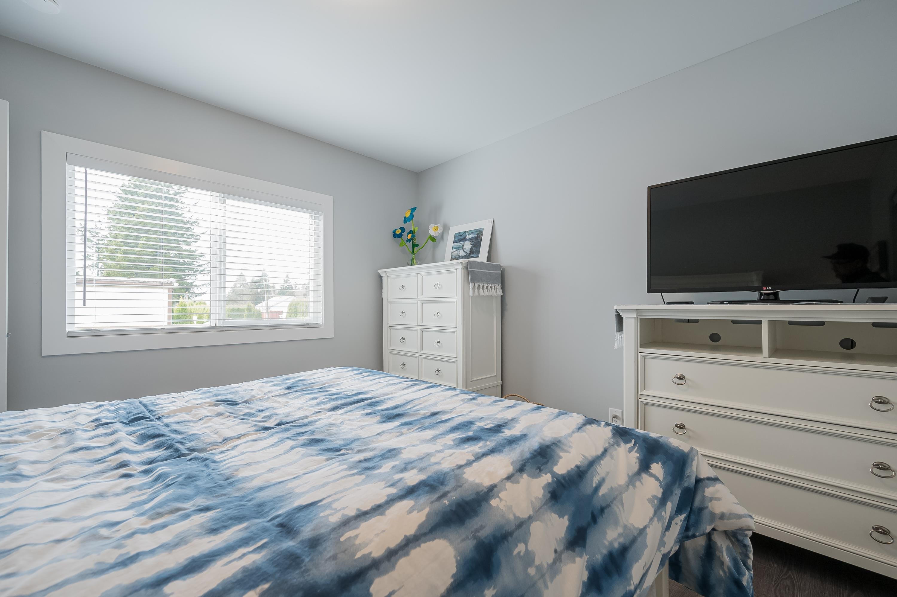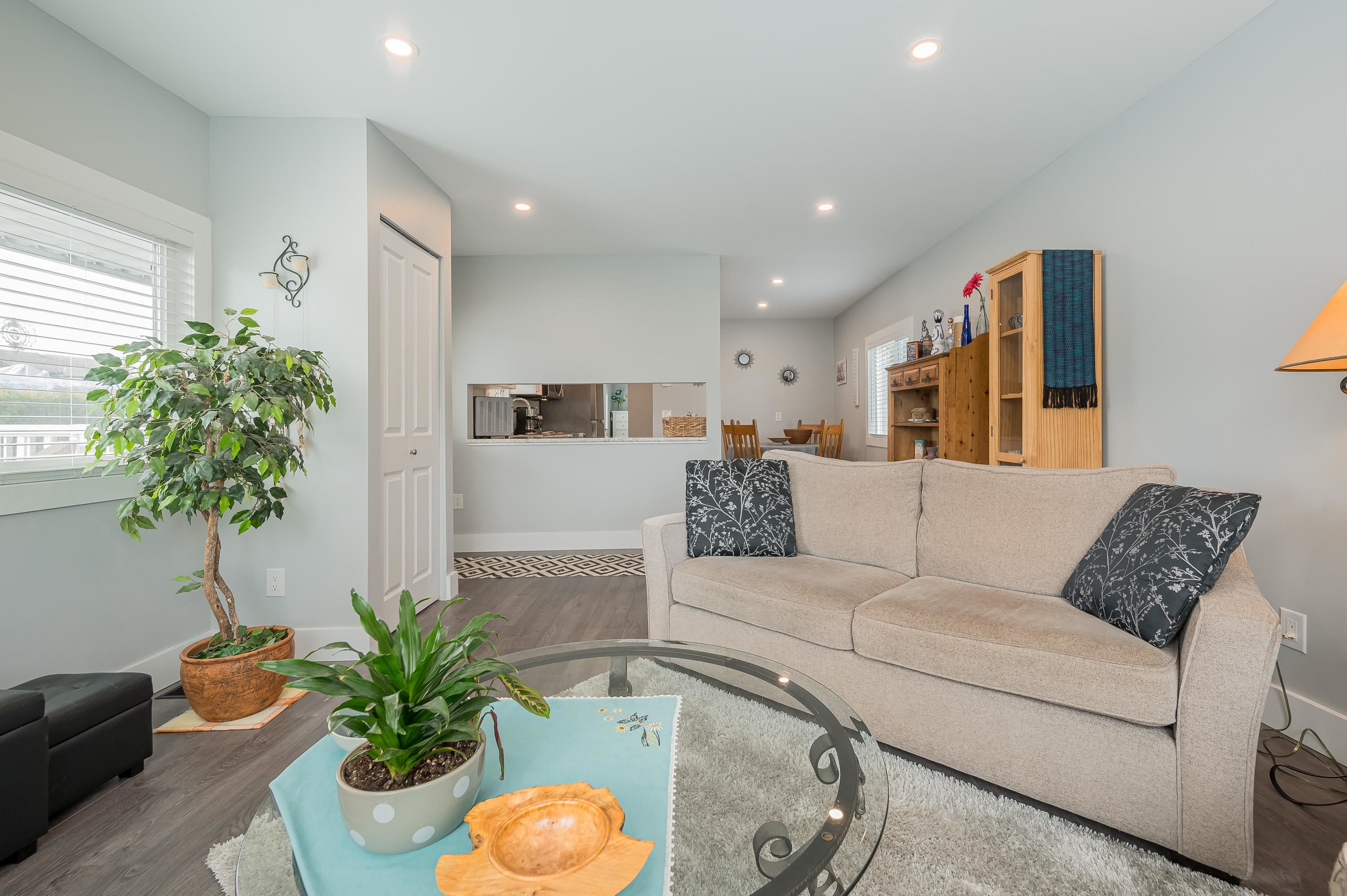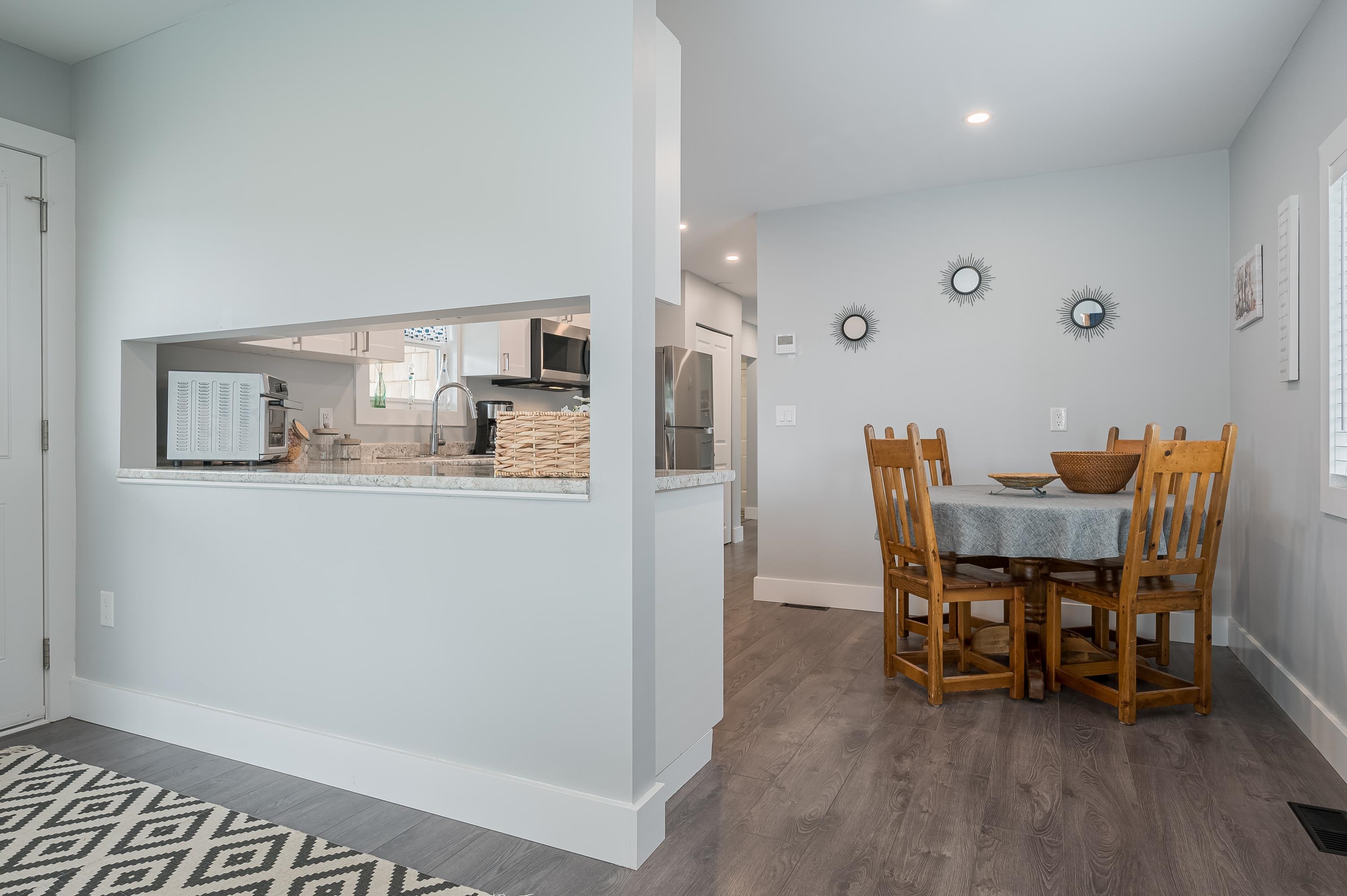 Step into this freshly renovated and bright 14' single-wide manufactured home, offering 2 Bedrooms /1 Bathroom with spacious walk-in shower. There's a versatile Flex Room for a 3rd Bedroom, Den or Office. This home boasts all-new features, including; kitchen, bathroom, laminate flooring, doors, pot lights, windows & New HP and air conditioning. Enjoy cooking with new S/S Appliances. Fantastic outdoor space w/covered front deck and new back deck with steps leading to back & side yard with privacy cedar tree...