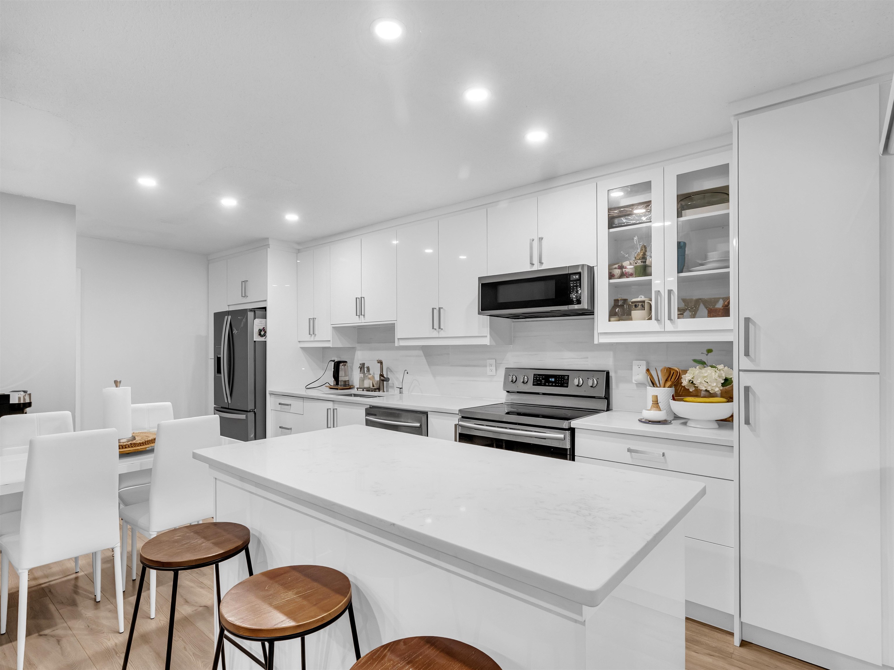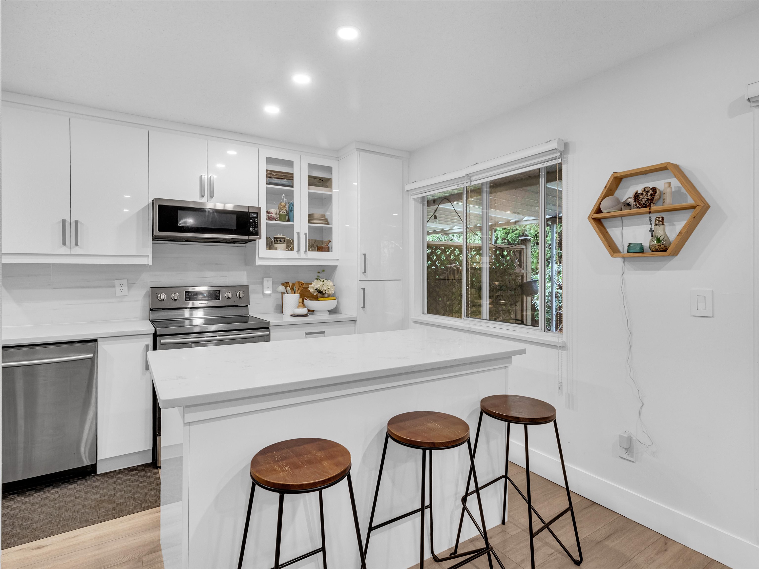 THE GABLES - Beautifully updated 2-bedroom, 2.5-bath end-unit townhome in a rare 7-unit complex, ideal for first-time buyers or growing families. Highlights include a contemporary kitchen with quartz countertops, stainless steel appliances, tile backsplash, and updated flooring throughout. Bathrooms feature modern vanities and a refreshed tiled shower. Upstairs, you'll find two generous bedrooms, including a primary with a large walk-in closet. The garage is currently set up as a flex space, offering extra ...
