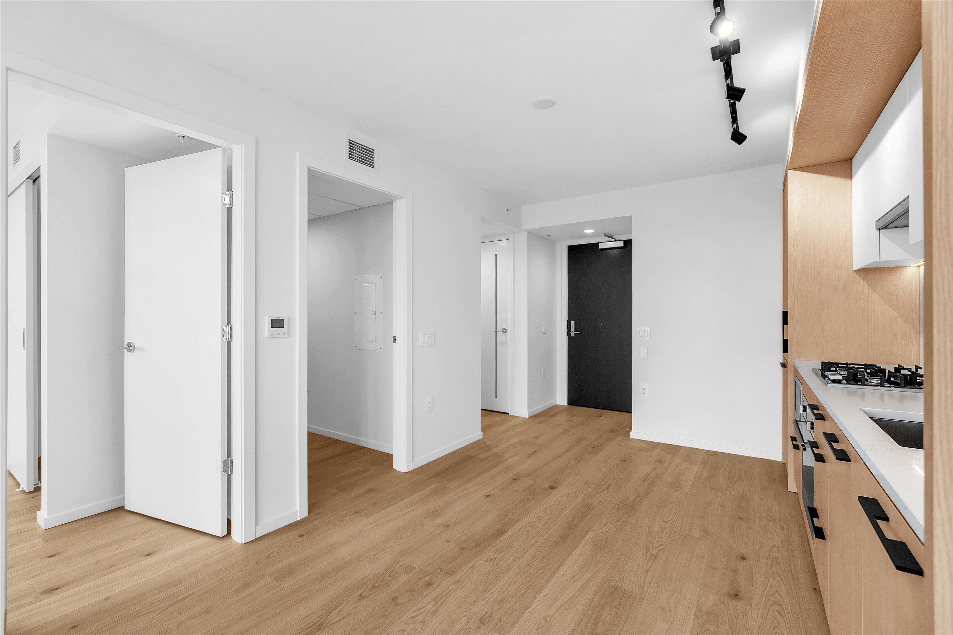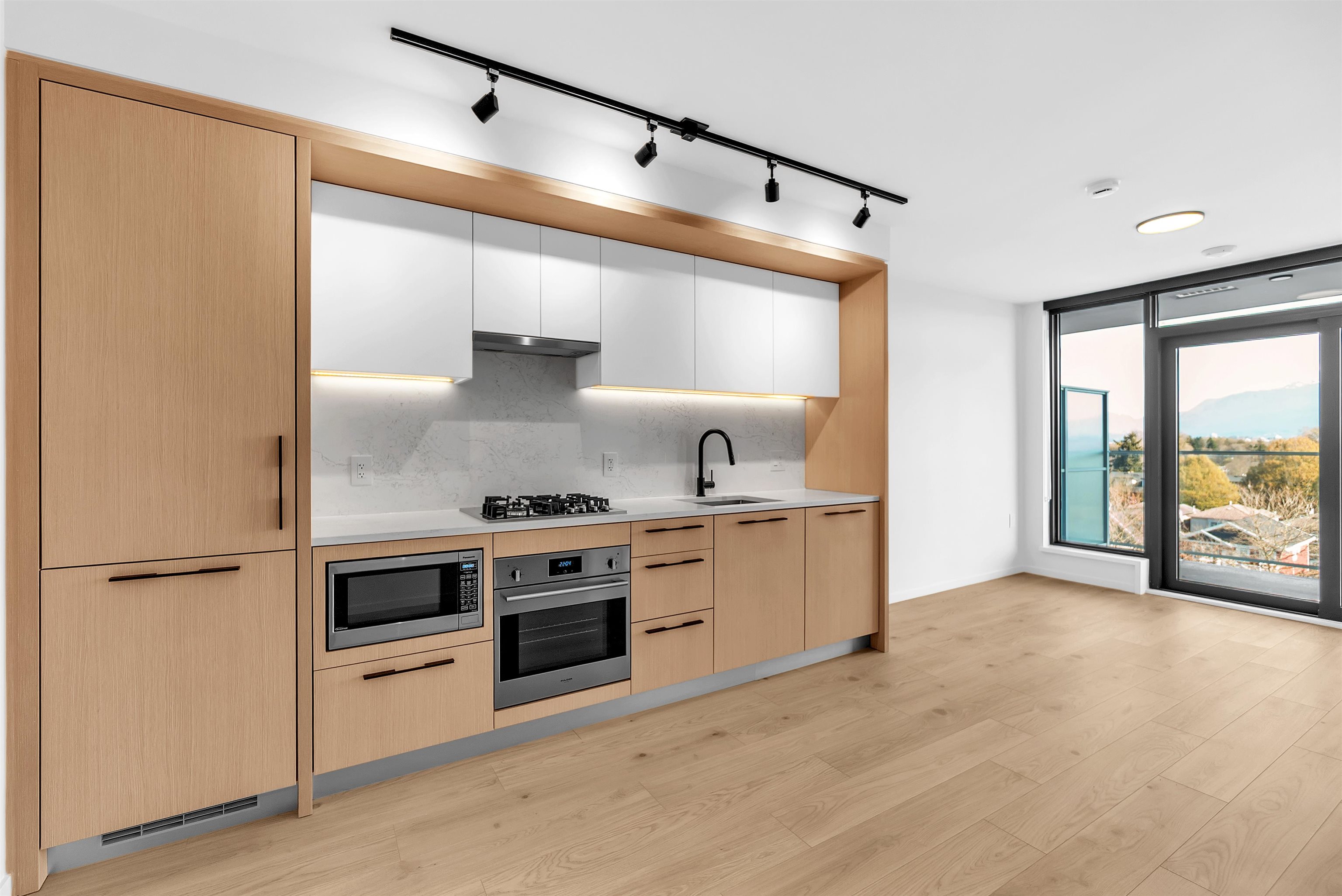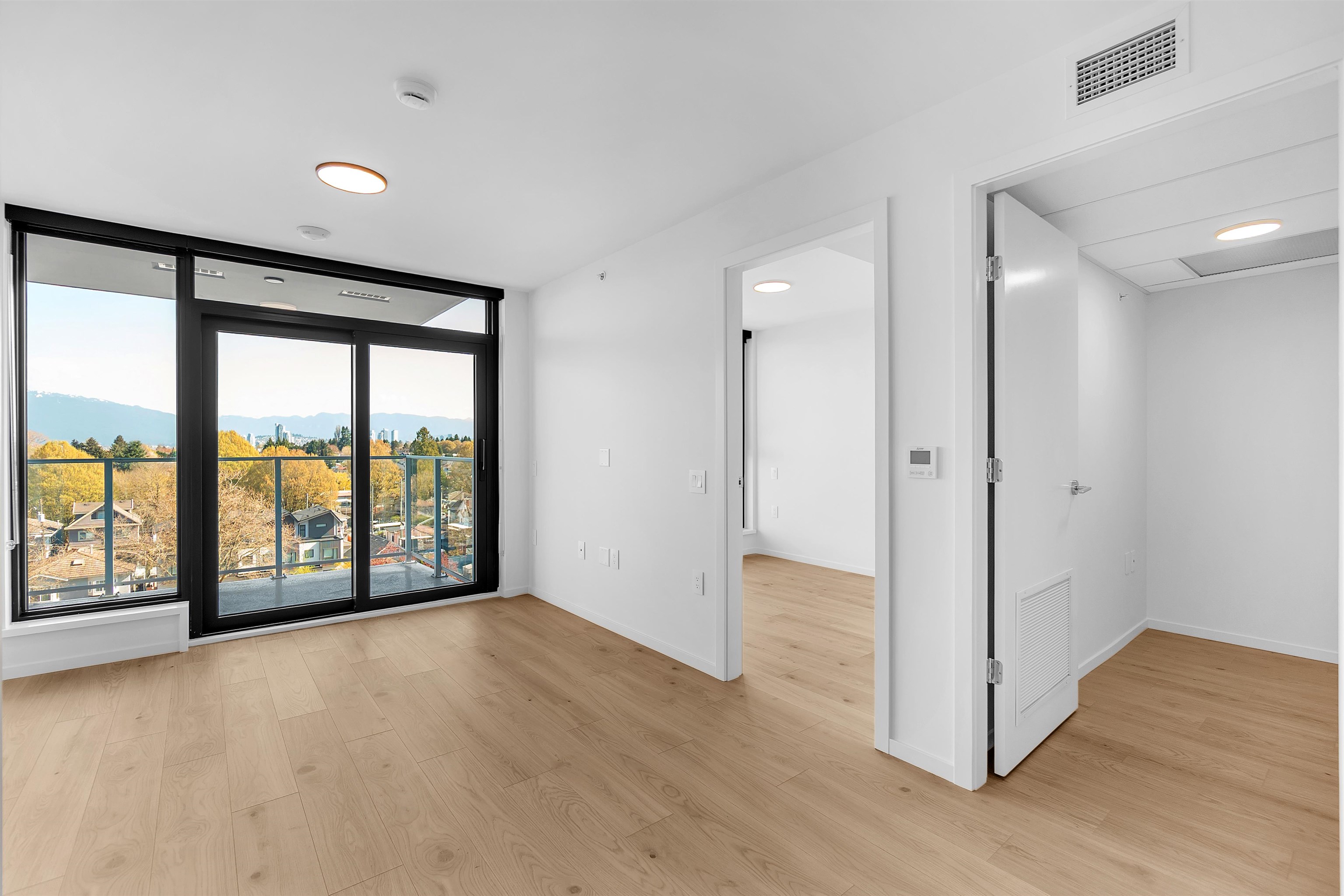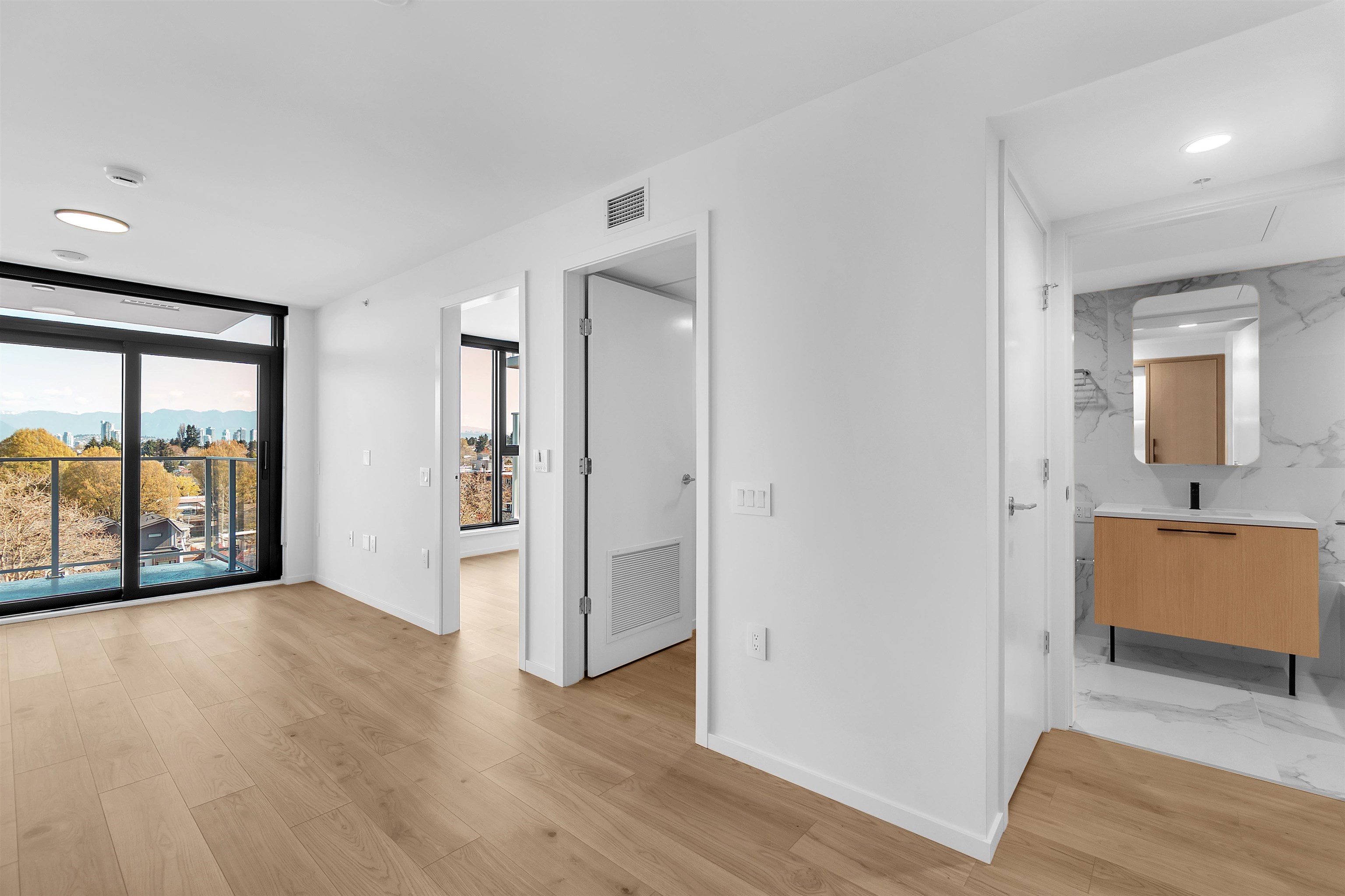 Available ASAP. BC Hydro included for the first 12 months. Brand new 1 Bed + Den condo at FRAME Vancouver, ideally located at Kingsway & Earles in the heart of Norquay Village, East Vancouver. This north-facing home in a concrete building offers 520 sq.ft. of efficient interior space plus a 55 sq.ft. private balcony on the quiet side, featuring breathtaking, unobstructed mountain and city views with full privacy. Enjoy central A/C, high-end Fulgor Milano appliances, and modern finishes throughout. Includes ...