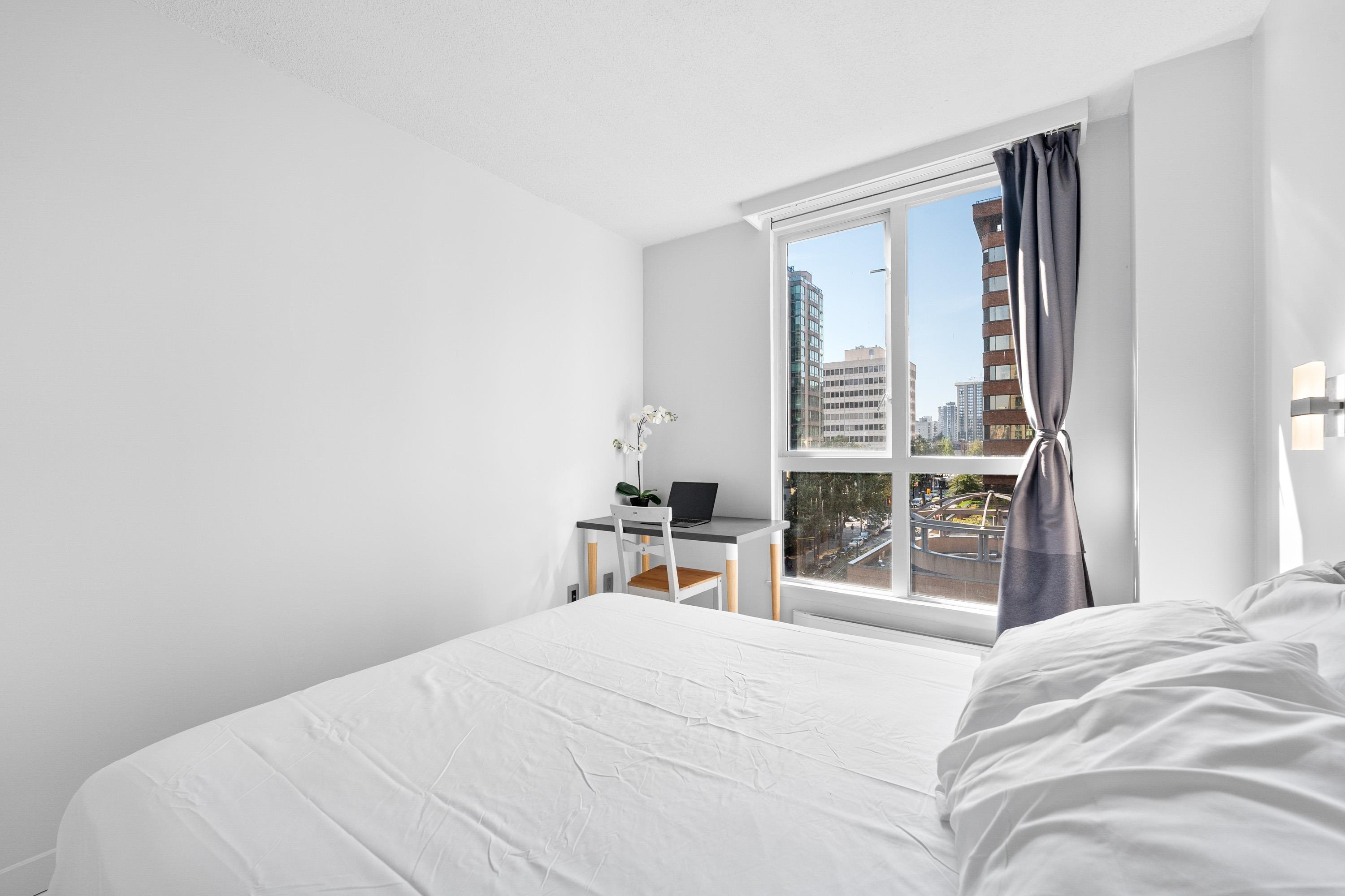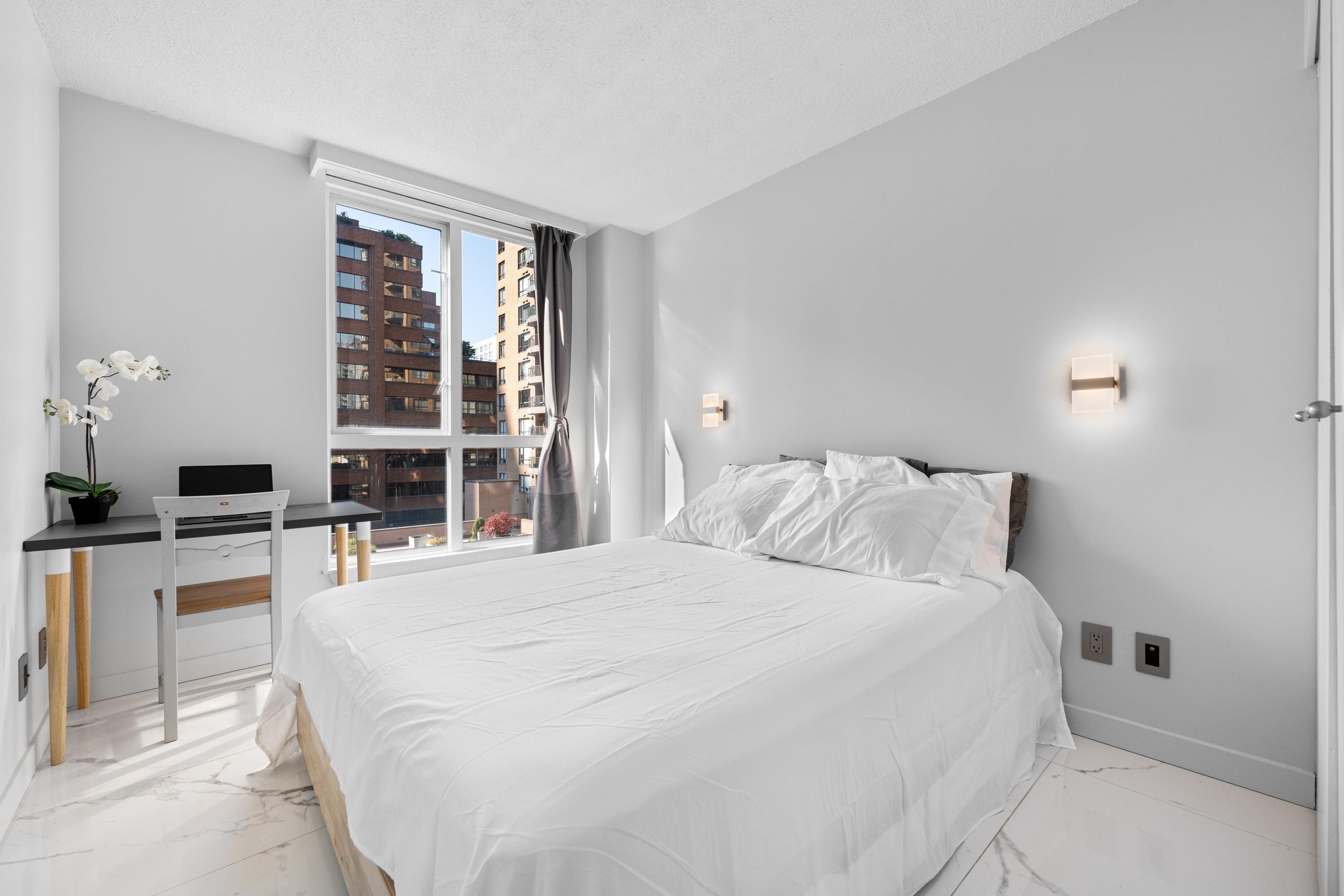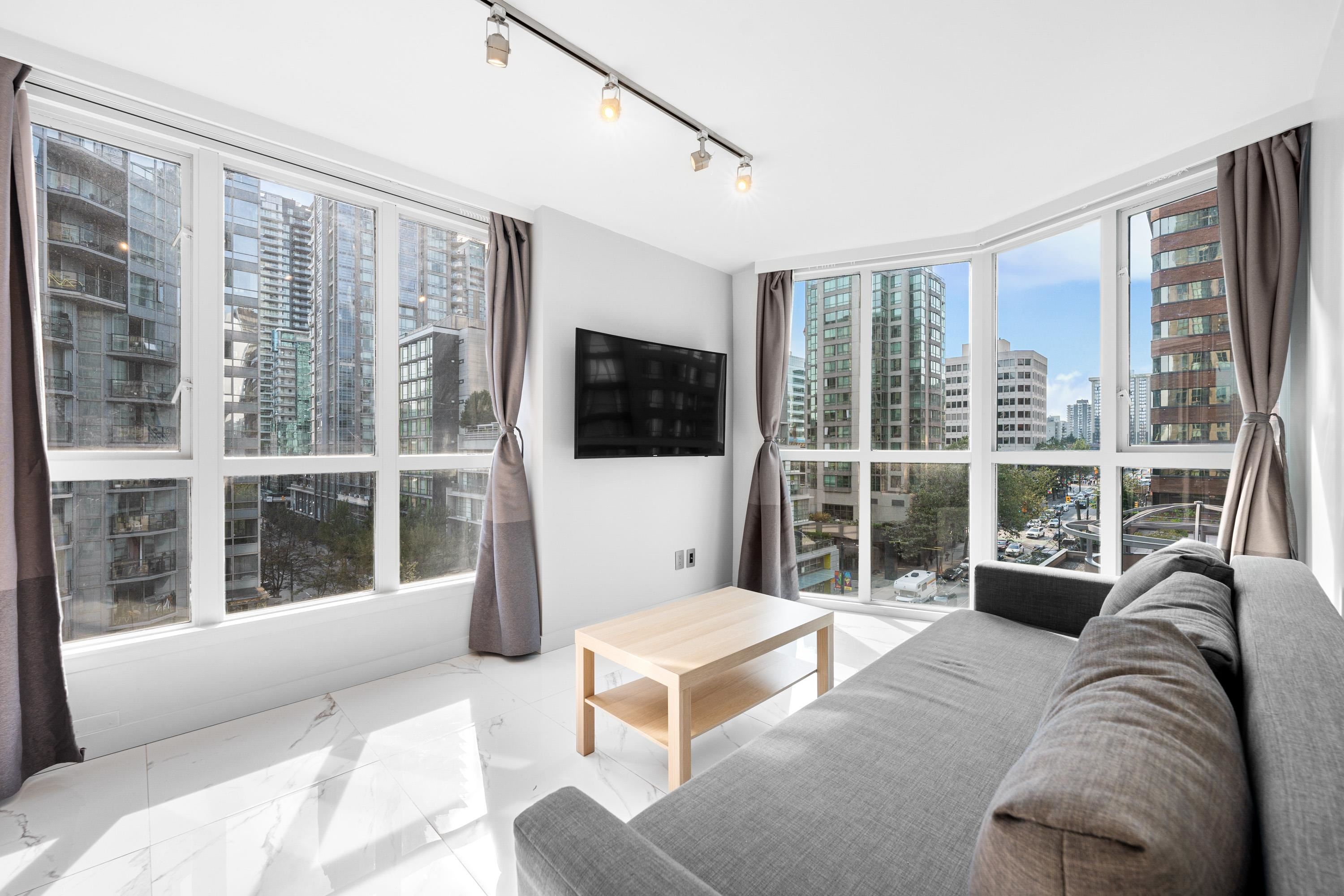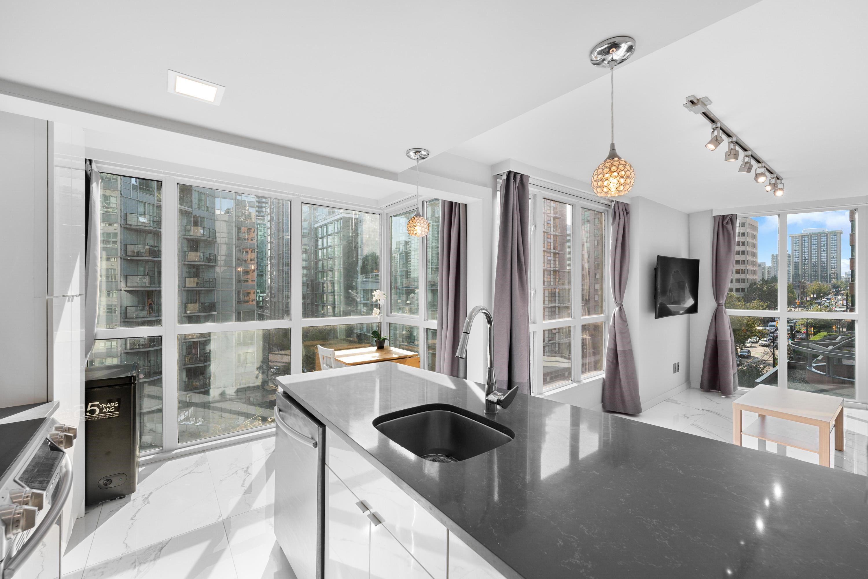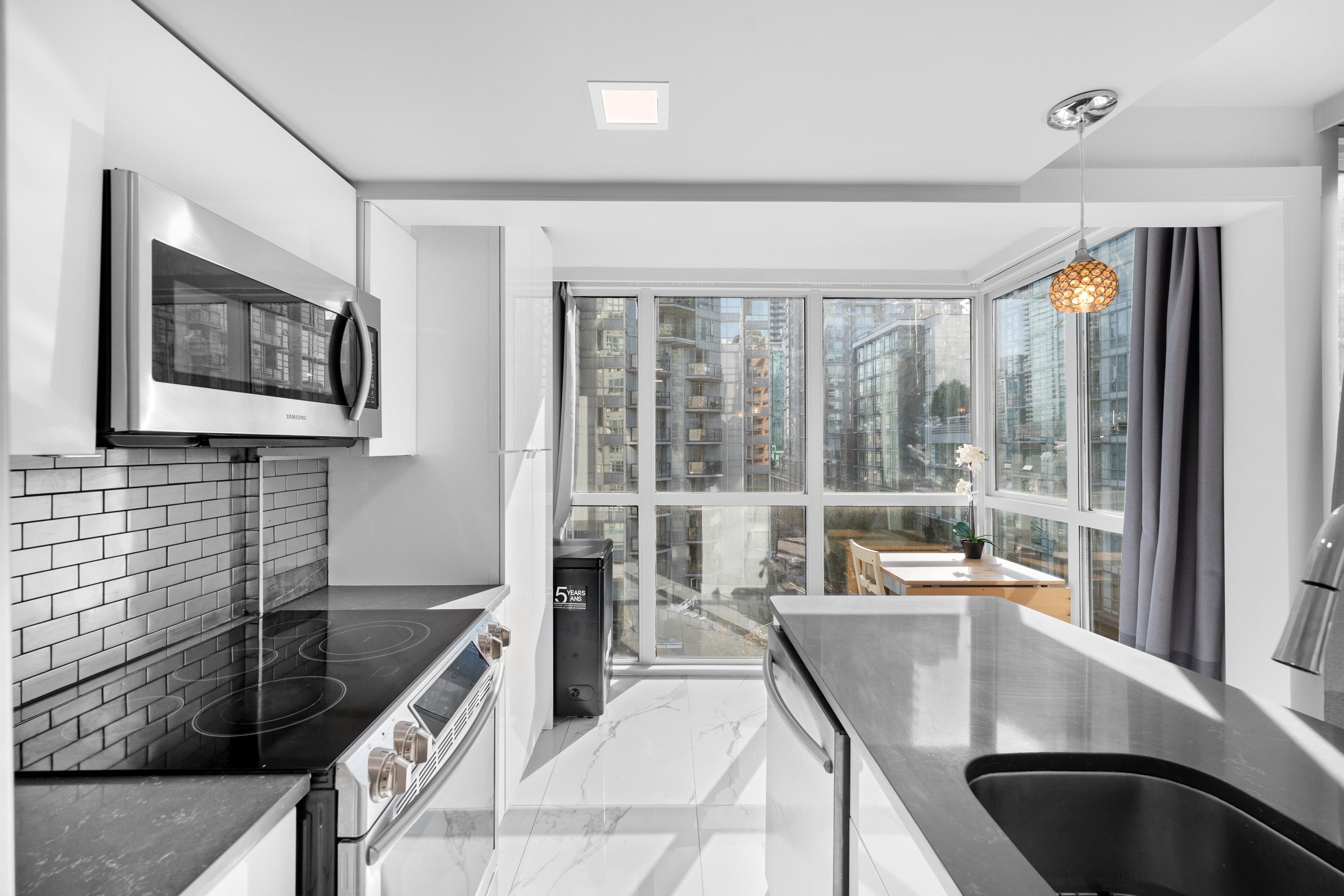 Stylish updated 1-bedroom, 1-bath corner suite in the heart of Downtown offers 550 sq.ft. of smart, modern living—perfect for first-time buyers or investors. Enjoy a bright open-concept layout with city views and a beautifully designed kitchen featuring custom cabinetry, stainless steel appliances, and sleek quartz countertops. Residents enjoy fantastic building amenities, including an indoor pool, hot tub, gym, bike room, and a peaceful garden courtyard. With shopping, dining, the seawall, and transit just...
