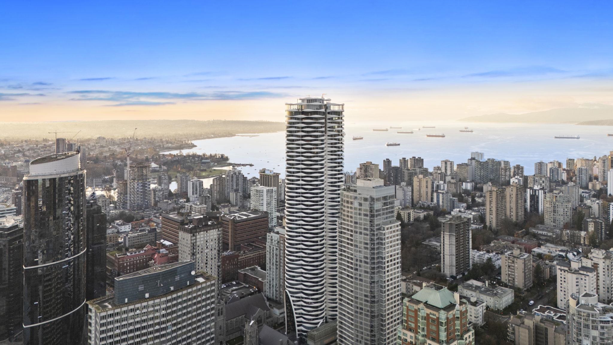 Welcome to The Butterfly by Bing Thom, one of Vancouver’s most architecturally significant landmarks. A rare opportunity to acquire an iconic DT residence at exceptional value. At peak, comparable homes sold for up to $2,900/sqft. Now offered at approx. $1,196/sqft, over 50% below peak and below assessed value. This beautifully designed 2BR home offers 1,086sqft of airy living framed by curved glass and open city views. The layout flows effortlessly for both everyday living and entertaining, featuring a sle...