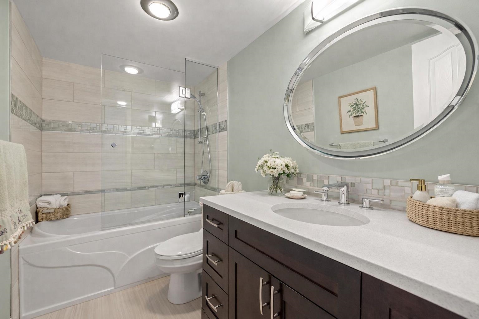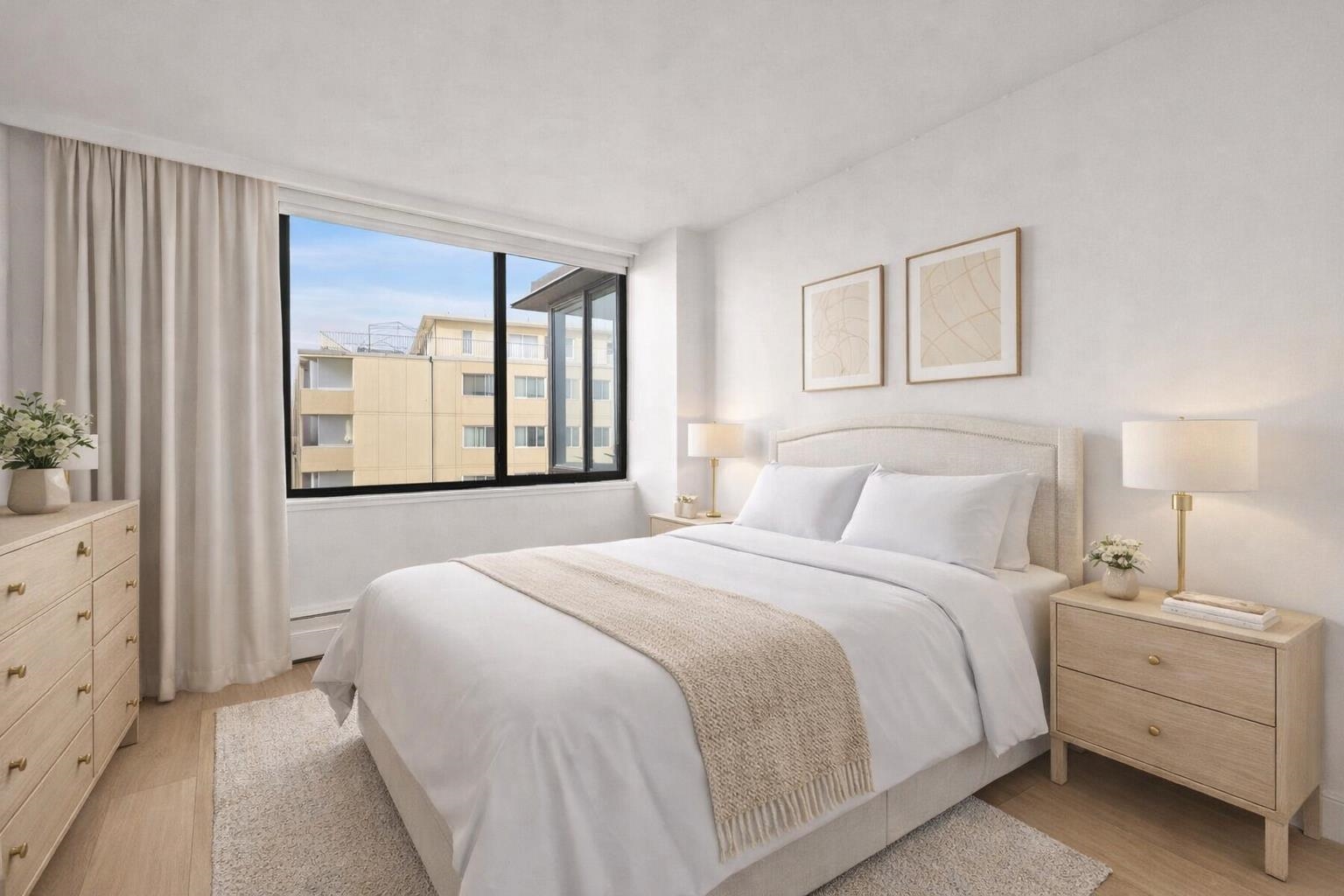 Welcome to this sunny two bedroom + den, two bathroom 1,202 sqft home in one of West Vancouver’s most sought after concrete buildings - Vandemar West. The property is fully renovated and showcased sparkling ocean views to the West and majestic mountain views to the North and East. Features include: sleek kitchen w quartz counters & stainless steel appliances, engineered hardwood floors, cozy electric fireplace, spacious primary w walkthrough closets to ensuite, in-suite laundry, two side by side parking spa...