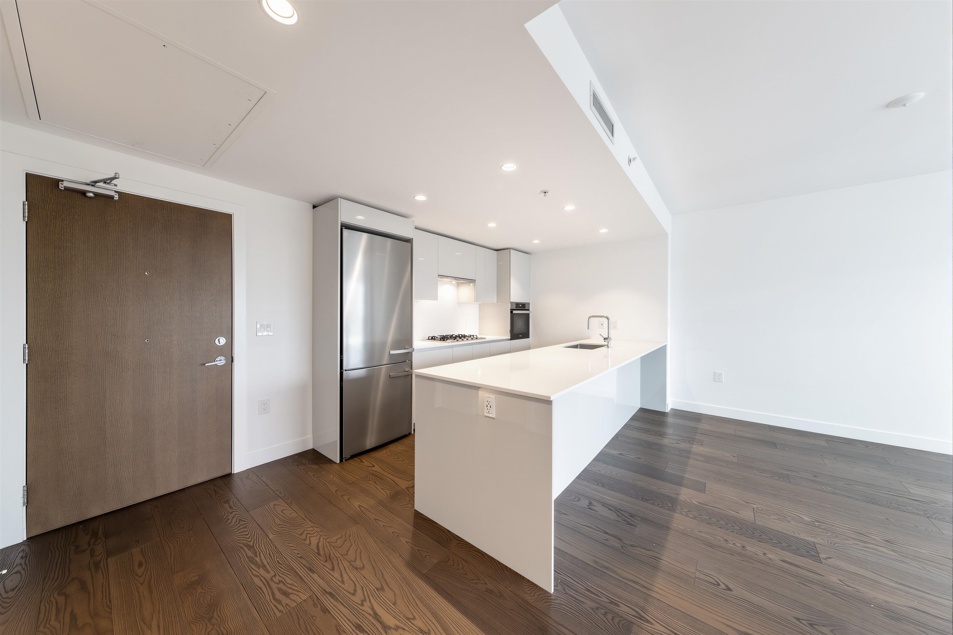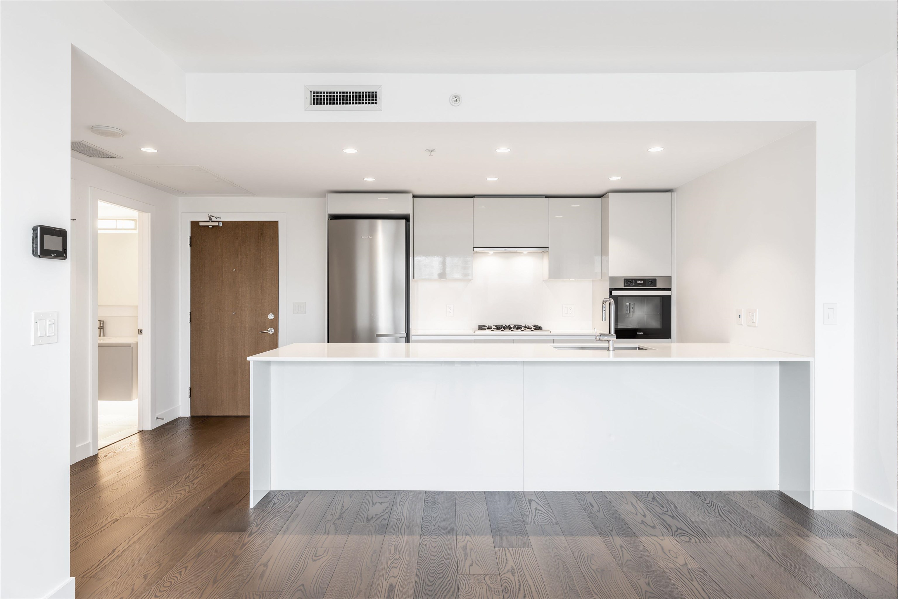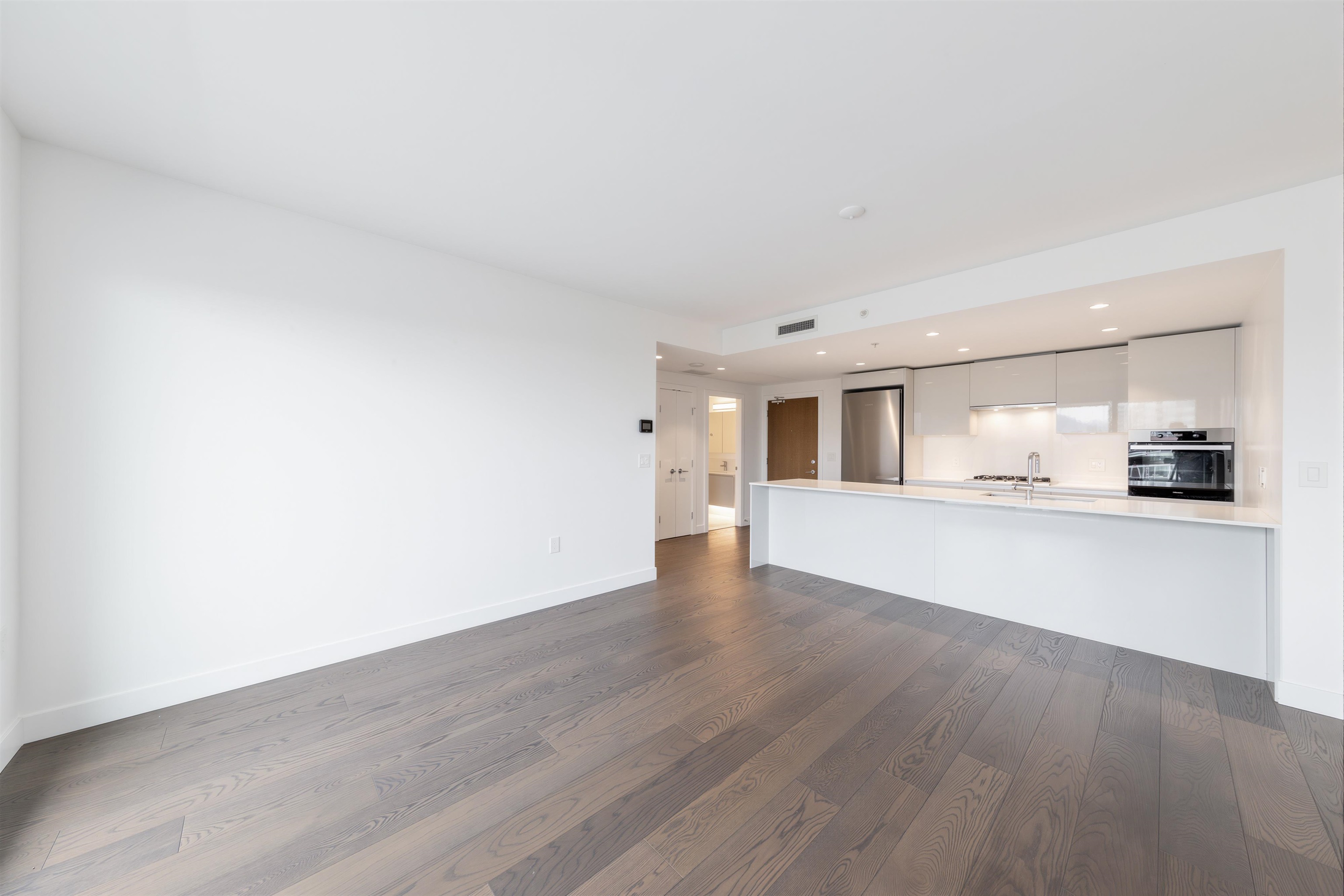Rarely available home with a functional layout and spacious living/dining, a standout among typical compact 3-beds & 2 baths. Features A/C, engineered hardwood, and a sleek kitchen with Miele appliances, gas cooktop, and oversized island. Bright floor-to-ceiling windows with open city views. Primary fits a king bed, with walk-in closet and double-vanity ensuite. Resort-style amenities: gym, lounge, guest suite, and 25,000 sqft garden. Walk to Oval, Minoru Park, Richmond Centre, and Riverfront.