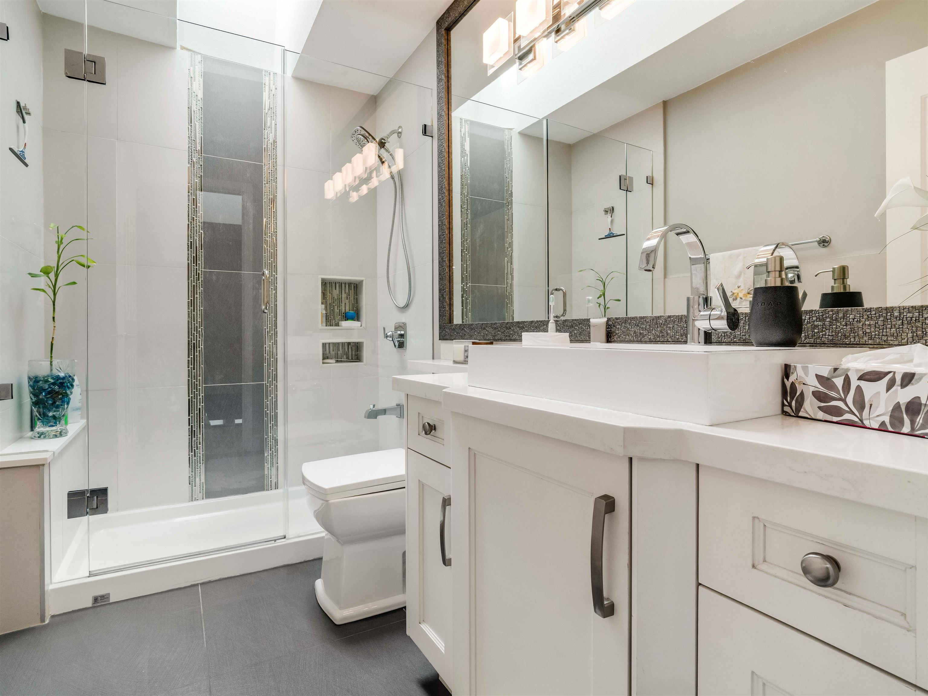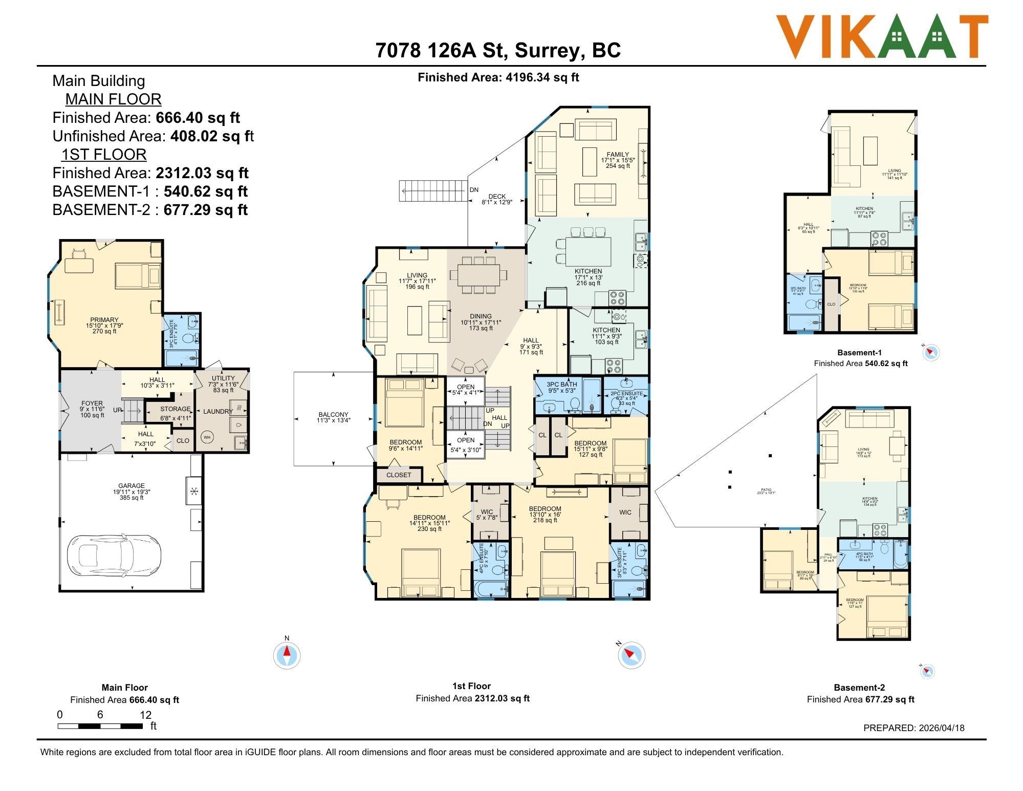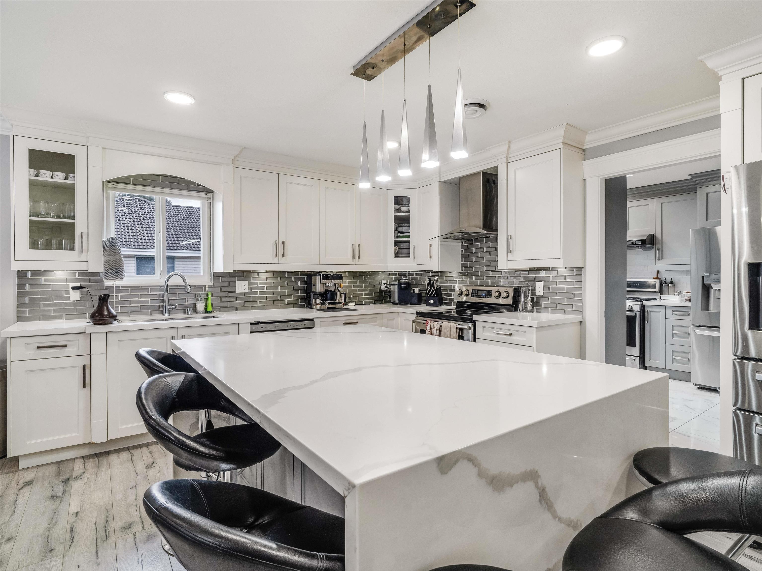 FULLY RENOVATED HOME IN NEWTON! Situated on a 7,128 sq ft lot. Beautiful Renovated 8 bedroom 6.5 bath with 2+1 bed suite for good rental income. Main floor features living room, main kitchen, spice kitchen, family room ,dining area, balcony, 4 bedrooms and 3.5 baths. Downstairs features big full size bedroom with full bath for main house use, laundry, double garage and 2+1 basement suites. This Beautiful home was renovated with newer kitchen, flooring, railing, driveway, windows, skylights bathrooms, paint,...