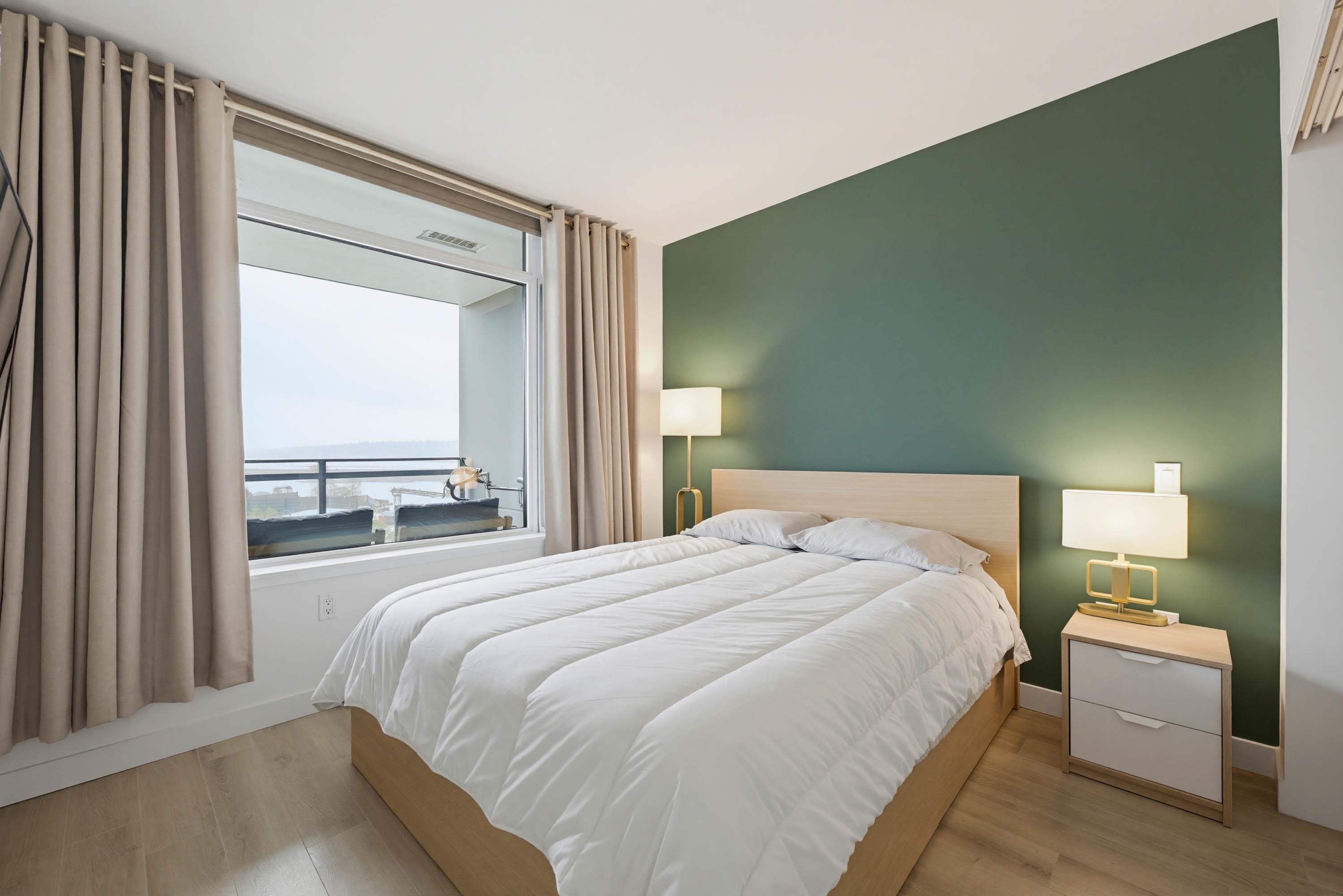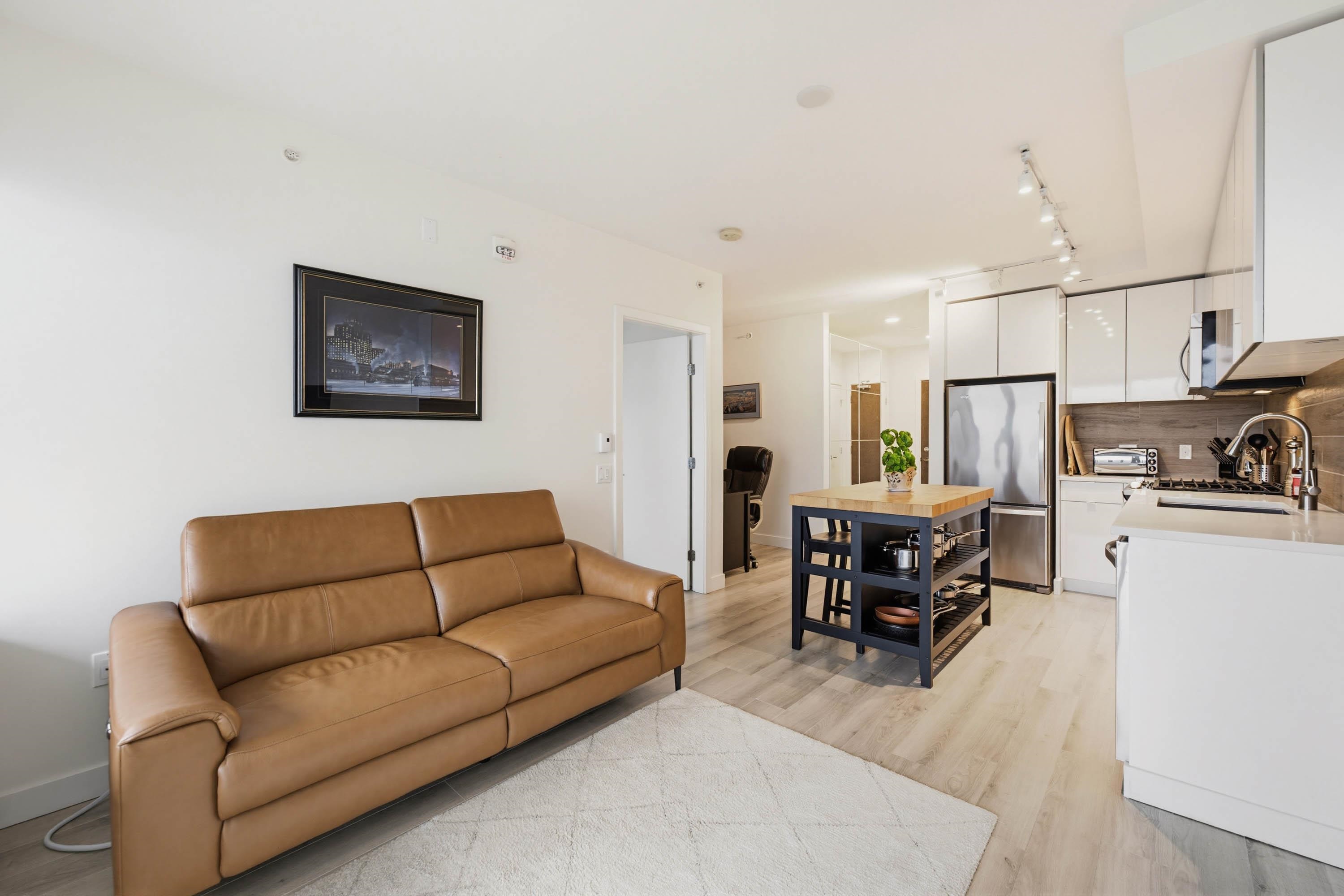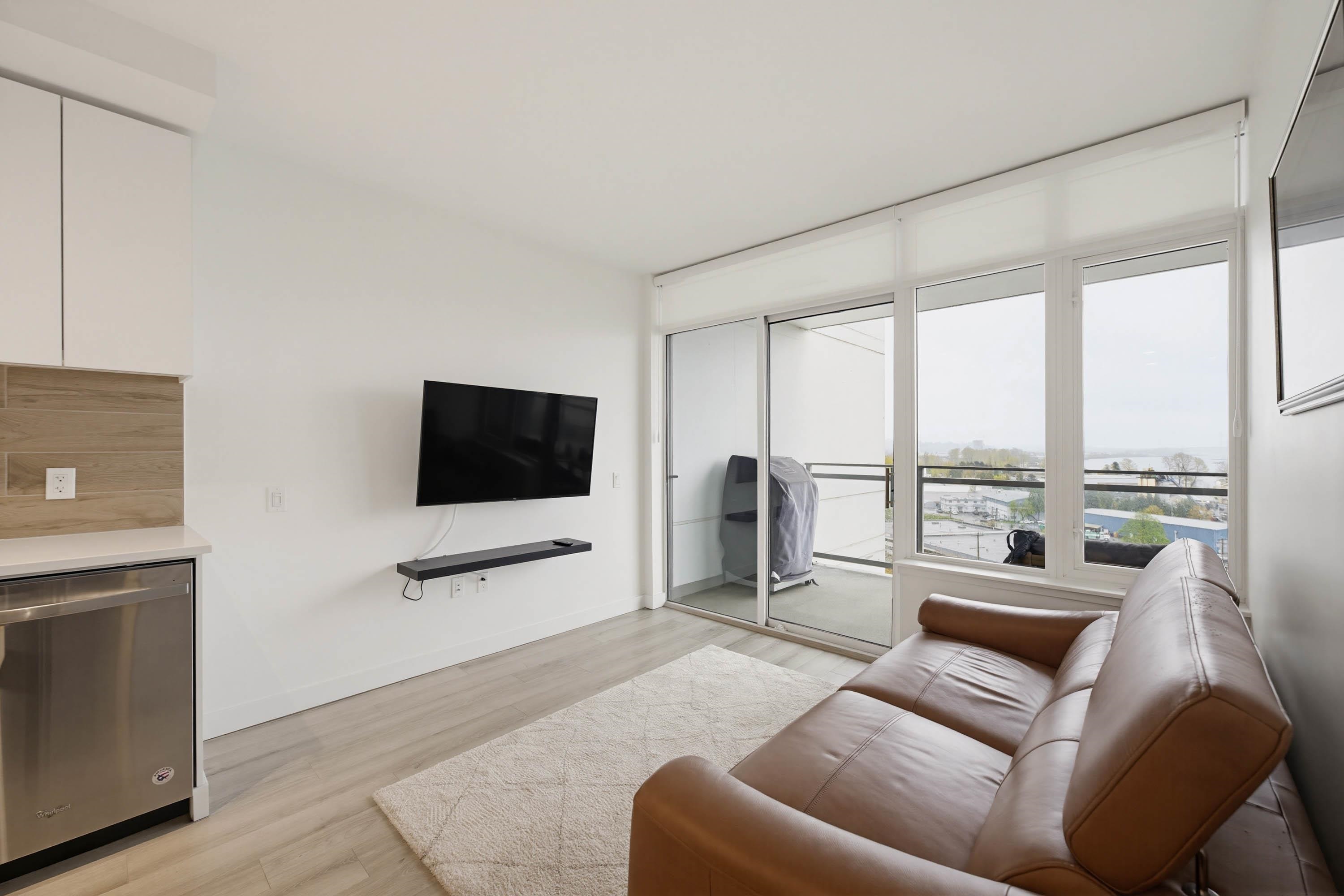 Welcome to The Sapperton, by award-winning Wesgroup in the heart of New West's Brewery District. Concrete building. Move in ready home w/ stunning Bright Southeast views of the mountains and Fraser River. 1 bdrm + den. Great layout at 580 sqft. Corner unit. Features modern kit w/ island, quartz counter tops, s/s appliance, gas range, custom California Closets, custom built ins, remote blinds, new paint. Enjoy your morning coffee on your private balcony with water views and evenings BBQing. Top-tier amenitie...