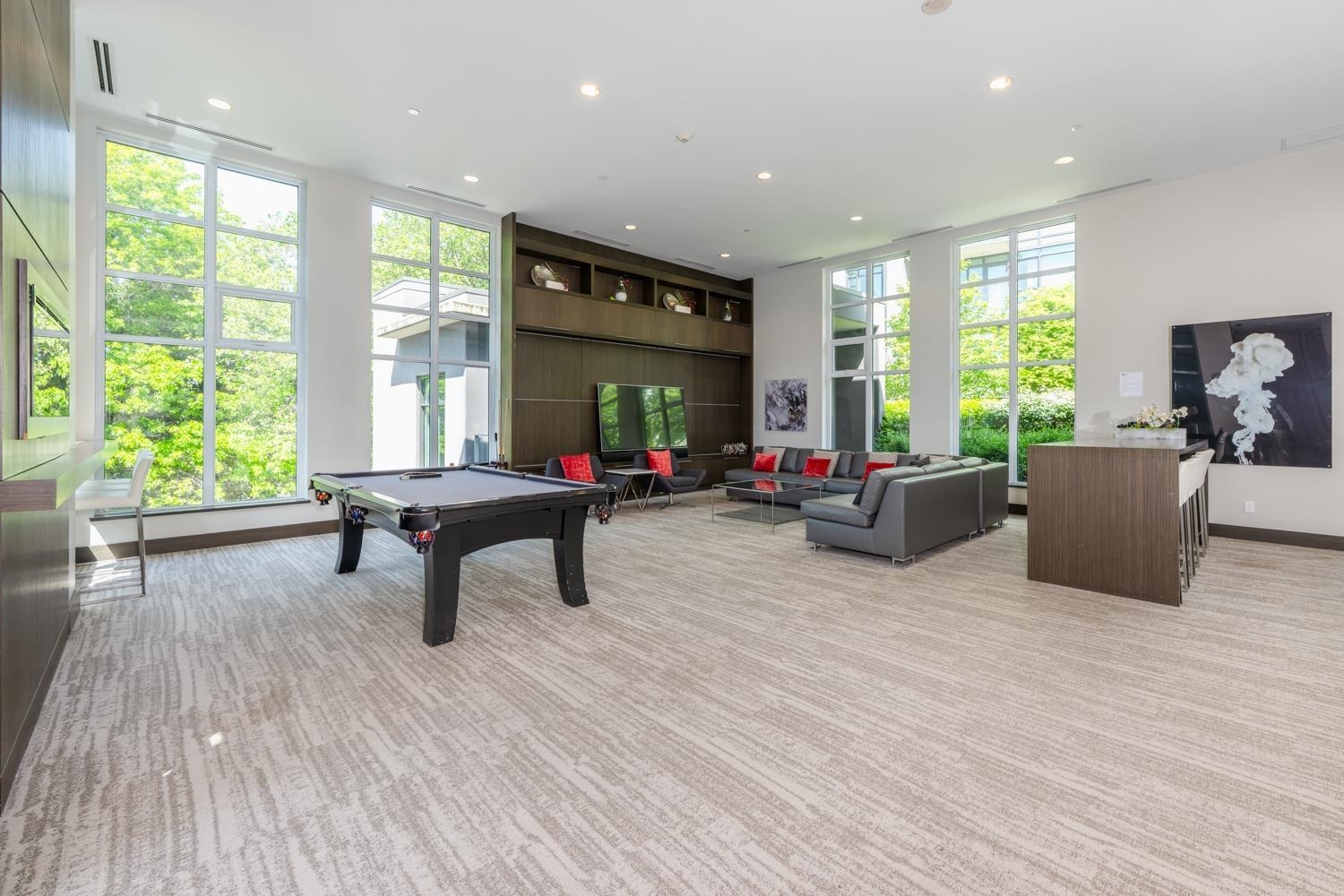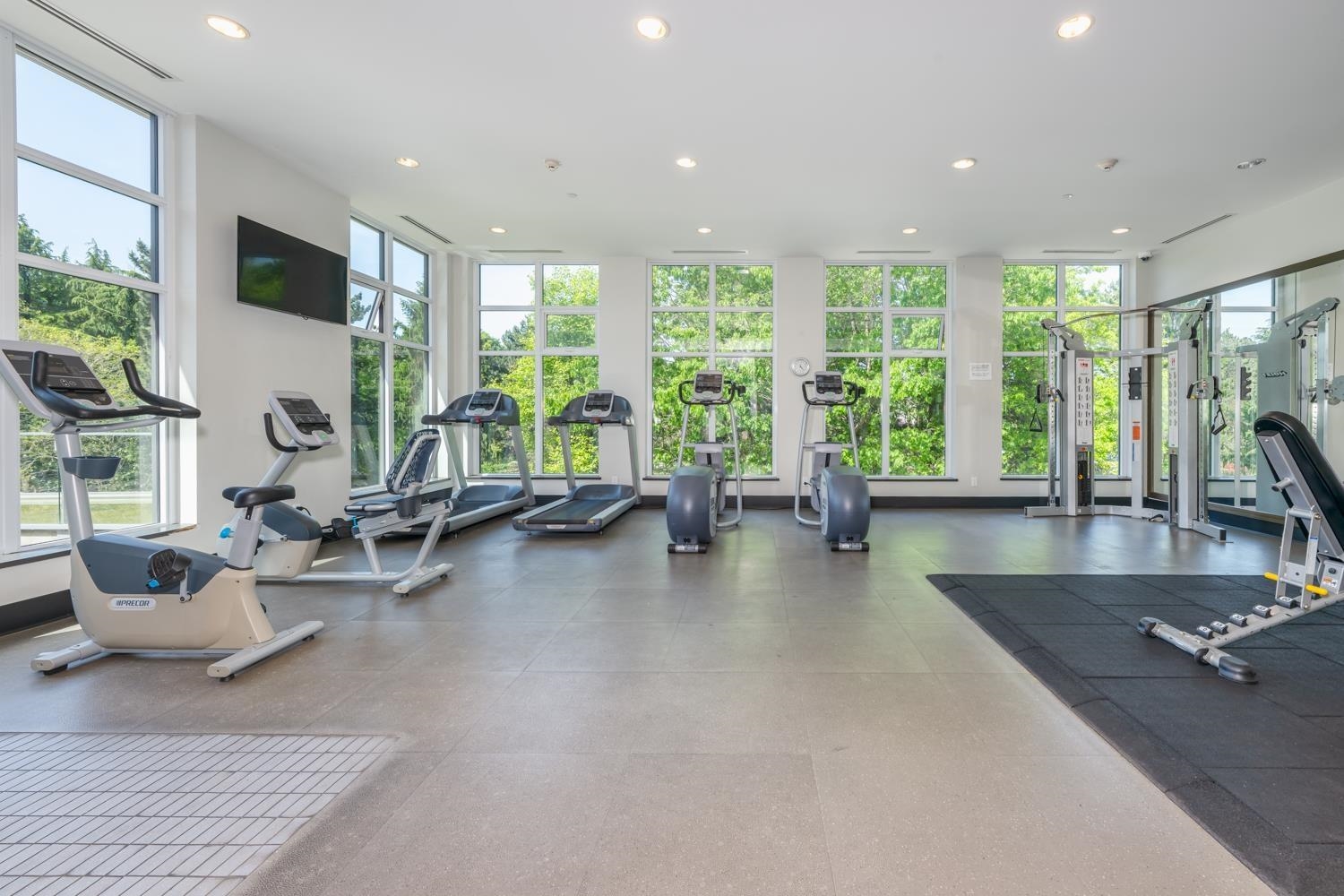 Luxury spec throughout suite steps to Richmond Center and Skytrain and features: Contemporary kitchen with upgraded appliances (Bosch/Liebher) & stone countertops. Bright and spacious living and dinning room with functional layout and throughout engineered hardwood floors. Enjoy the Beautiful courtyard garden view from all rooms and balcany. Marble washrooms, quartz countertops and oversized stand up showers. Social Lounge, Gym & live-in onsite manager. In suite Air Conditioning and Heating System, washer&D...