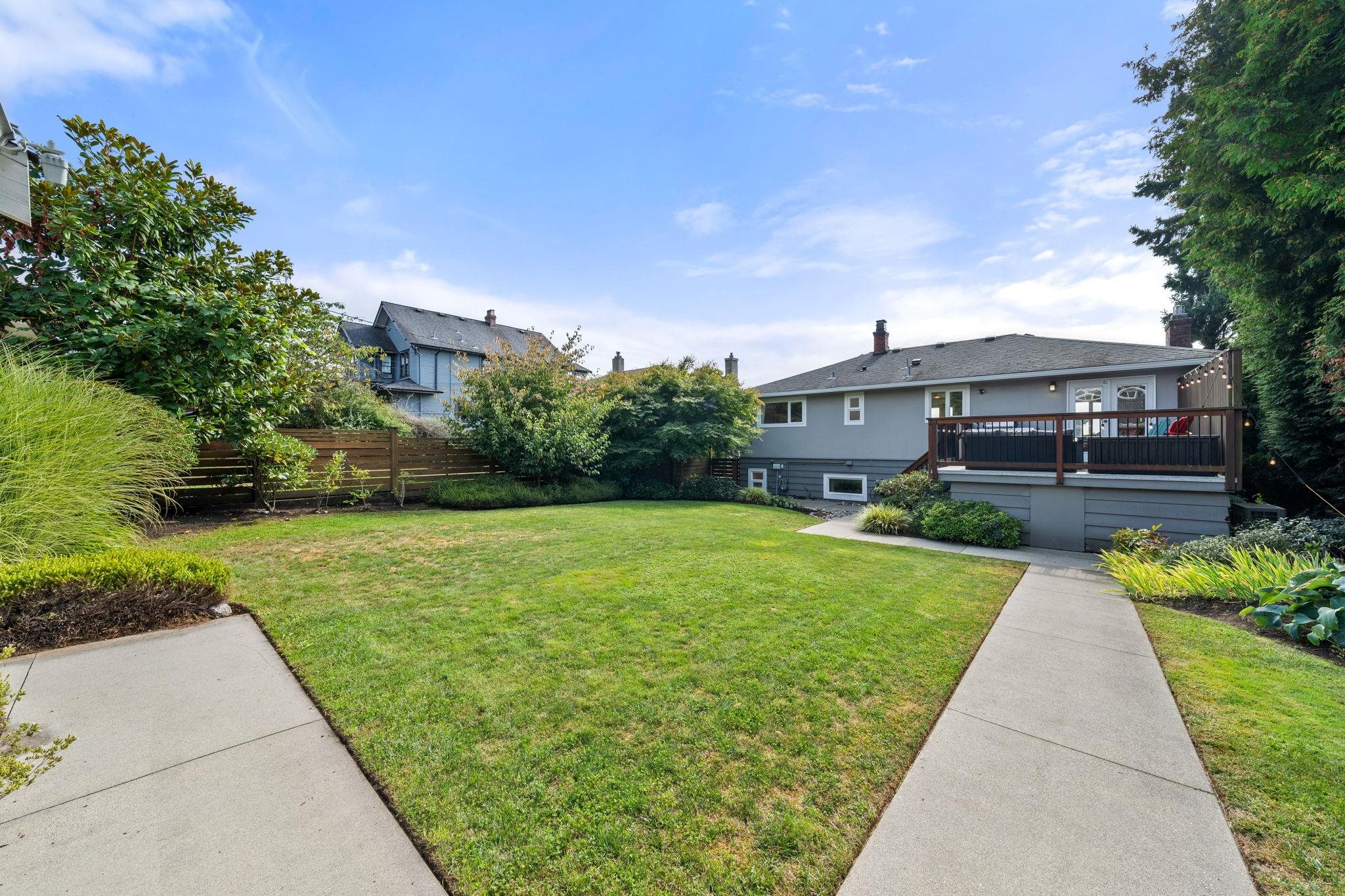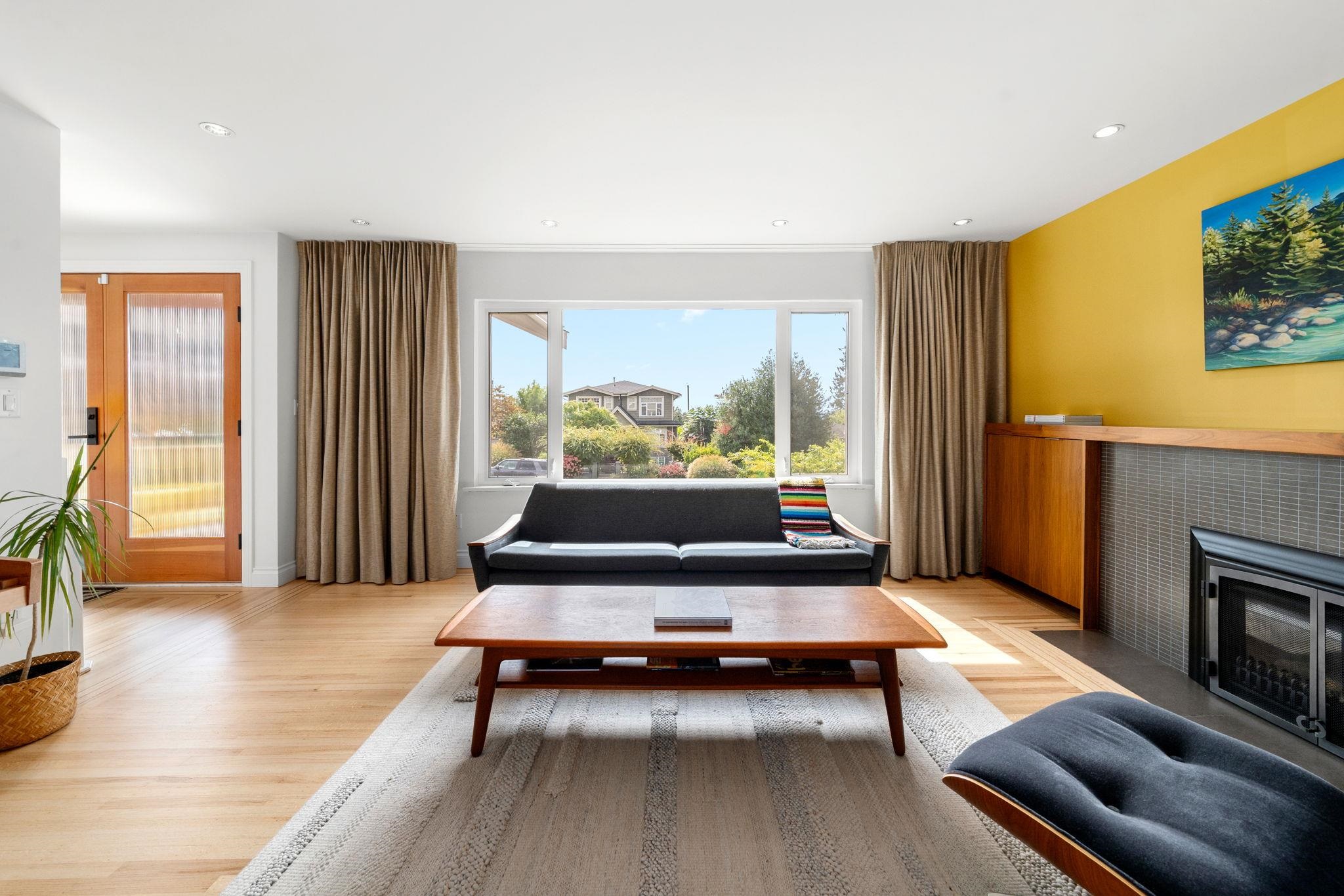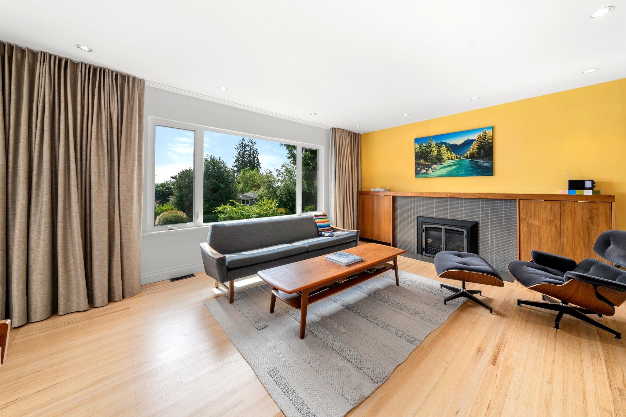 Welcome to your ideal mid-century bungalow in desirable Queensbury! This move-in ready home combines modern comfort with timeless character, featuring warm wood accents and beautifully refinished oak floors. A high-efficiency heat pump and furnace ensure year-round comfort, while built-in speakers enhance the living room, bathroom, entertainment room, and garage. Mature landscaping, a private backyard, and a front porch, with views of Downtown Vancouver, create perfect spaces to relax and entertain. The spa...