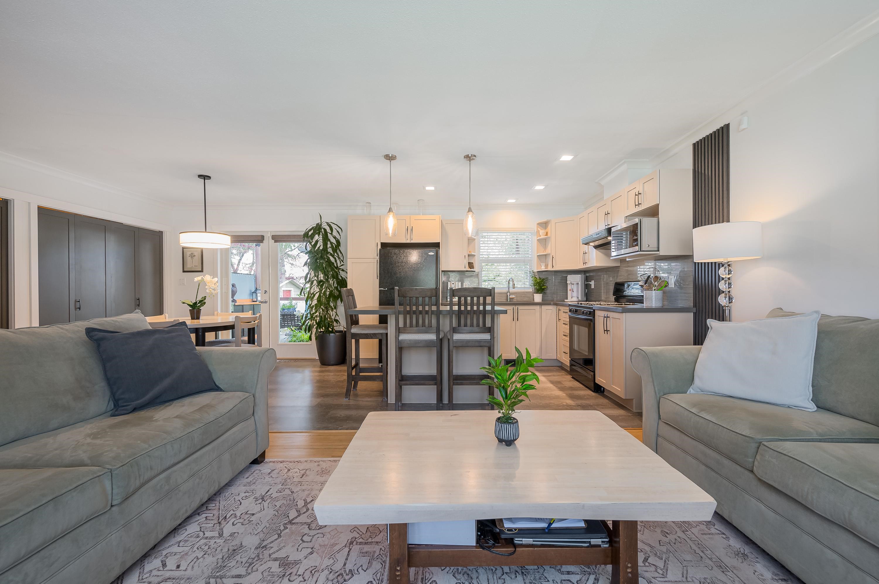 Tucked into a desirable North Delta neighbourhood,this well cared for rancher reflects true pride of ownership throughout.Offering 3 bedrooms, the home features numerous updates and upgrades including hardwood flooring,updated kitchen with maple cabinetry, and a beautifully renovated bathroom with double sinks and in floor heating. Bright and functional layout with comfortable everyday living in mind.Total 1017 sf.The backyard is a standout, thoughtfully designed for entertaining with a covered outdoor kitc...