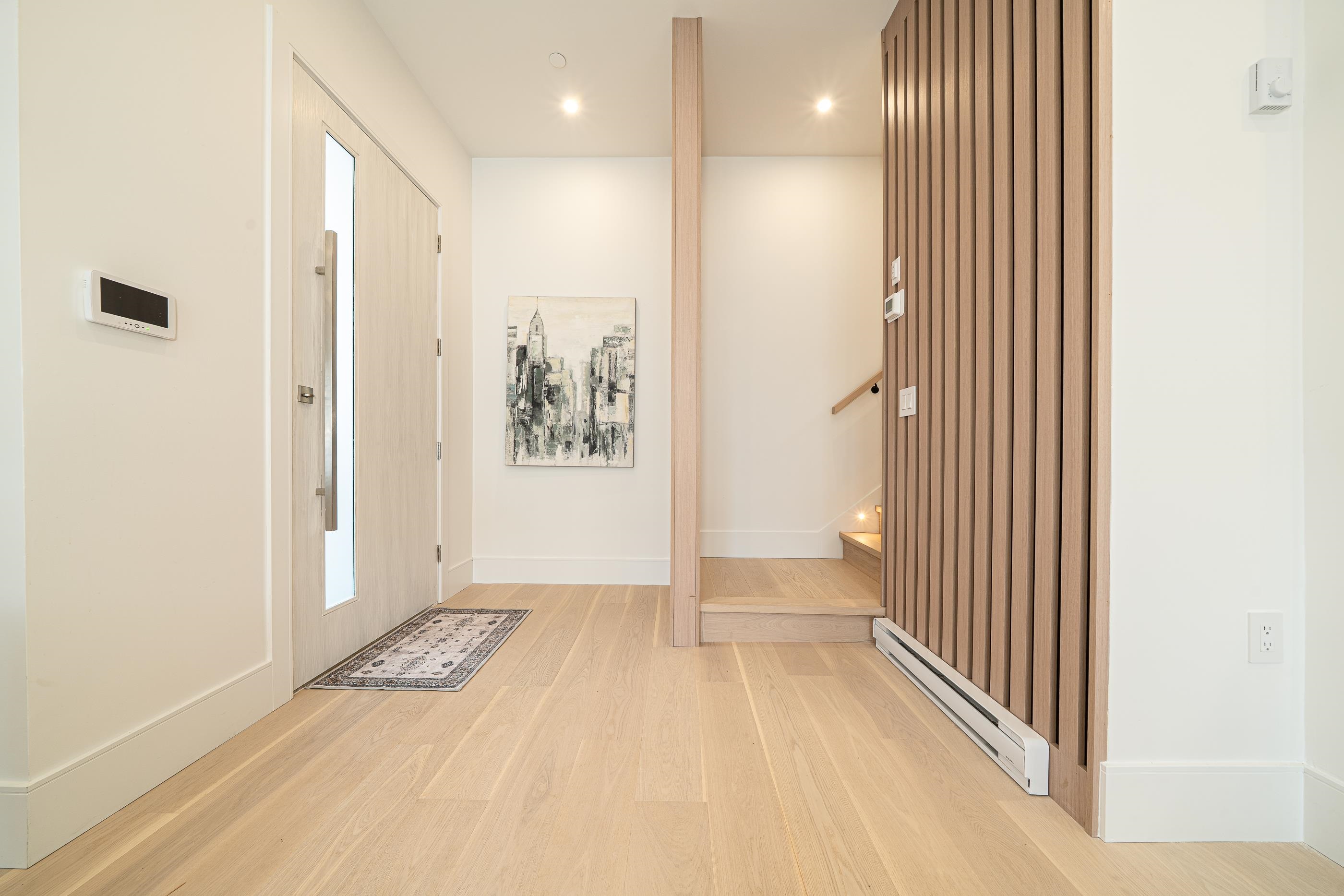 Brand new 1/2 duplex in the Fraser area Vancouver! This 1400+ sqft 3 bedrooms & 4 bathrooms family residence offers a bright open concept main floor. second floor has two really spacious bedroom. Top floor's bedroom also can be a office or media room which come with huge storage space. Great man craft. Features high-end S/S appliance, hard wood flooring, HRV, A/C, heat pump system, triple glass windows, security system. Huge patio with good size private back yard which is great for entertaining and BBQ's an...