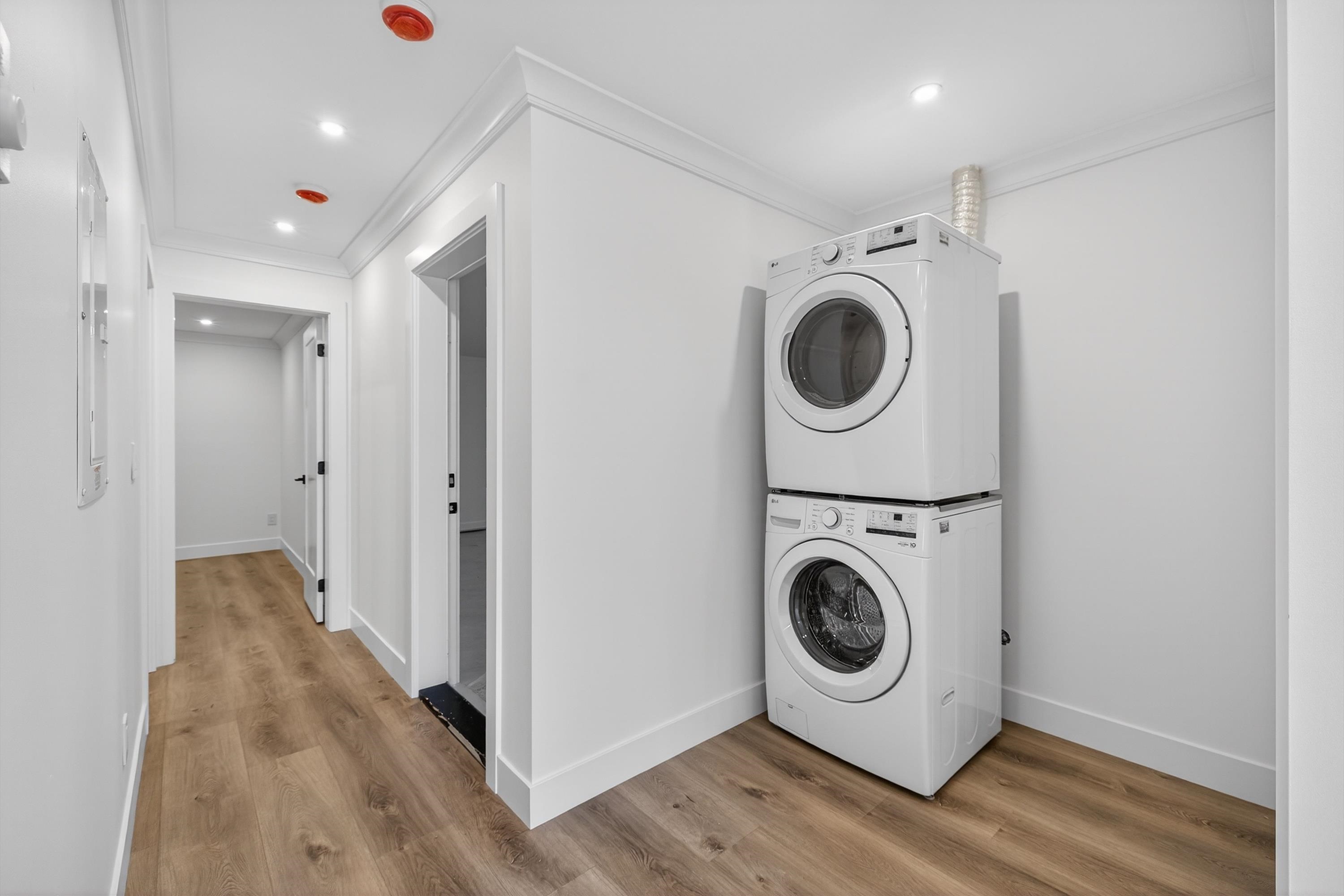 Brand-new modern West Coast 1/2 duplex on a prime corner lot w/ unobstructed Burns Bog views, 3,022 sq.ft. per side & 390 sq. ft. of covered decks on 9,000 sq.ft. lot (4,500 sq. ft. per unit). Features include a side-by-side double garage & 53-ft driveway w/ parking for up to 8 vehicles. Open-concept main floor,floor-to-ceiling windows & designer kitchen w/ double fridge,wine fridge,gas range & hidden spice kitchen, a main-floor bedroom w/ full bath. Upstairs has four bright bedrooms,full laundry & a primar...