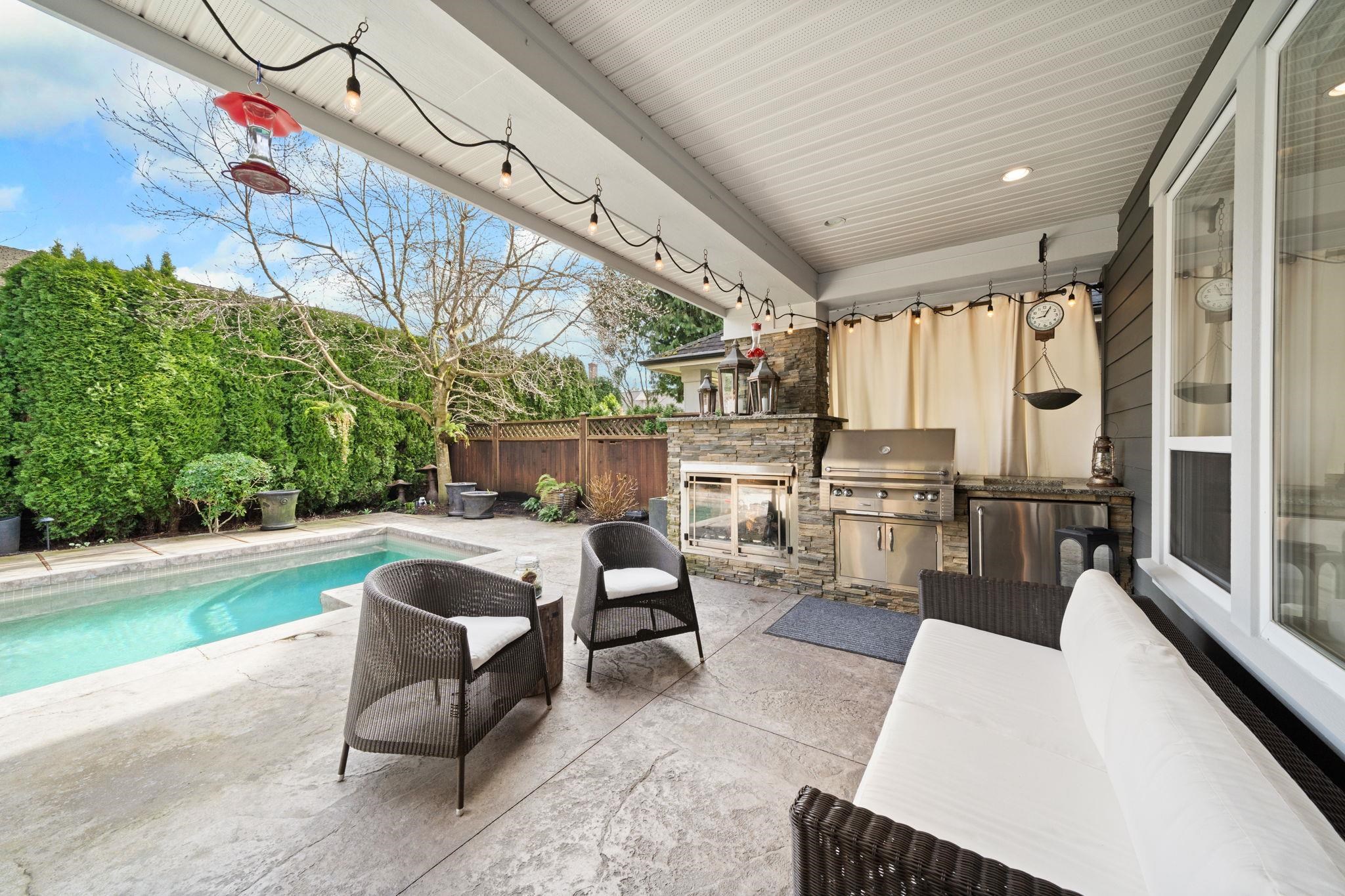 GORGEOUS Craftsman-style, 5 bdrm, 4 full bathroom home located in a quiet neighbourhood built by renowned TRENDSETTER HOMES. Meticulously maintained w/recent upgrades (A/C), designer touches & quality finishing. Amazing floorplan w/1 bdrm/den on the main plus 1 full bath, vaulted ceiling entryway flowing into the spacious living/dining area with gas f/pl. Gourmet kitchen (+wok kitchen) w/stone counters, huge island, s/s appliances opens onto the cozy family room & SPECTACULAR BACKYARD OASIS w/ covered seati...