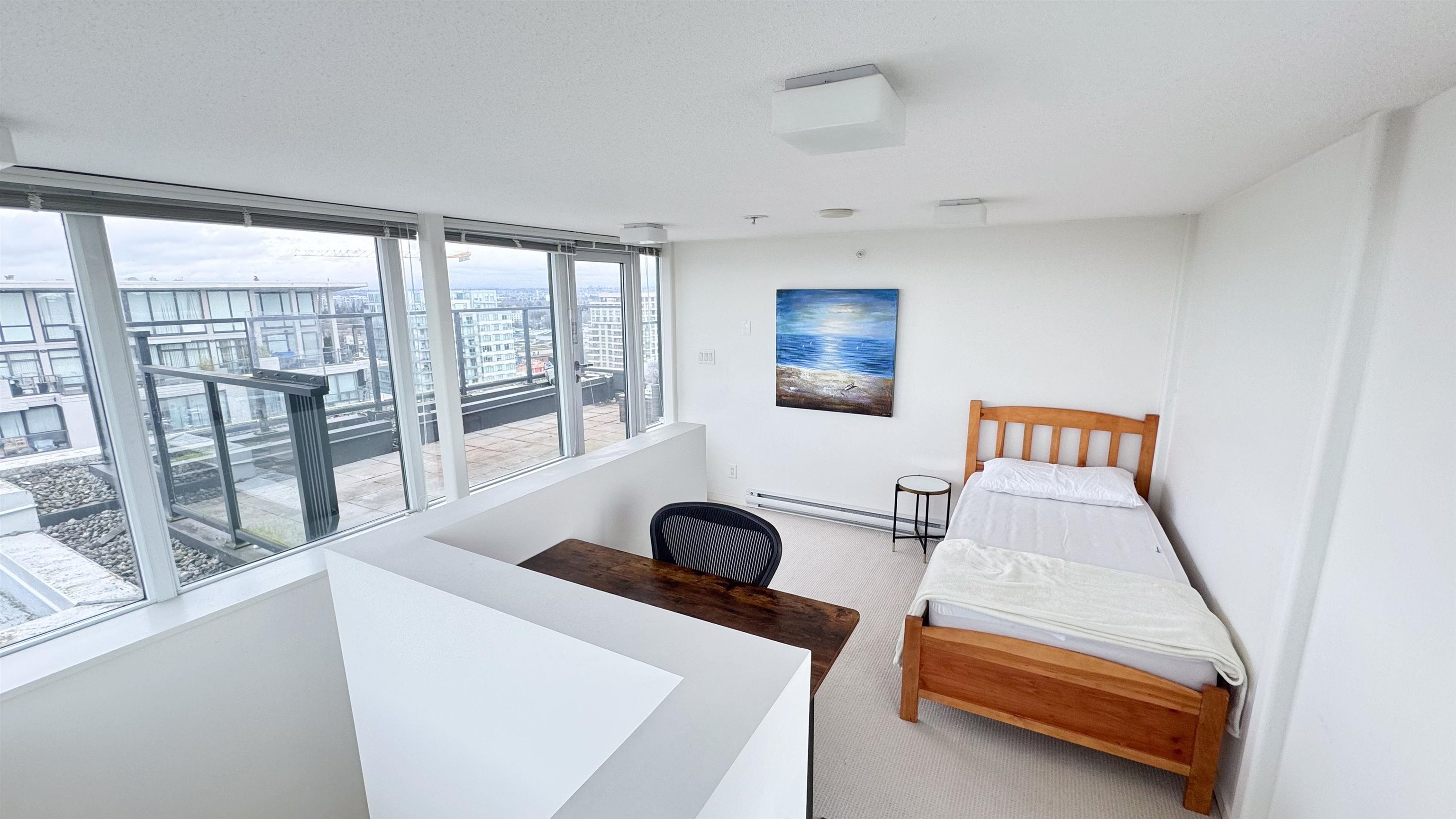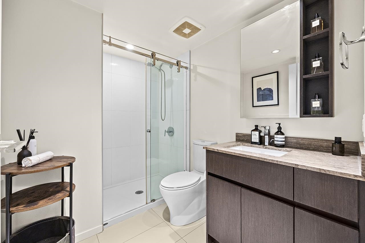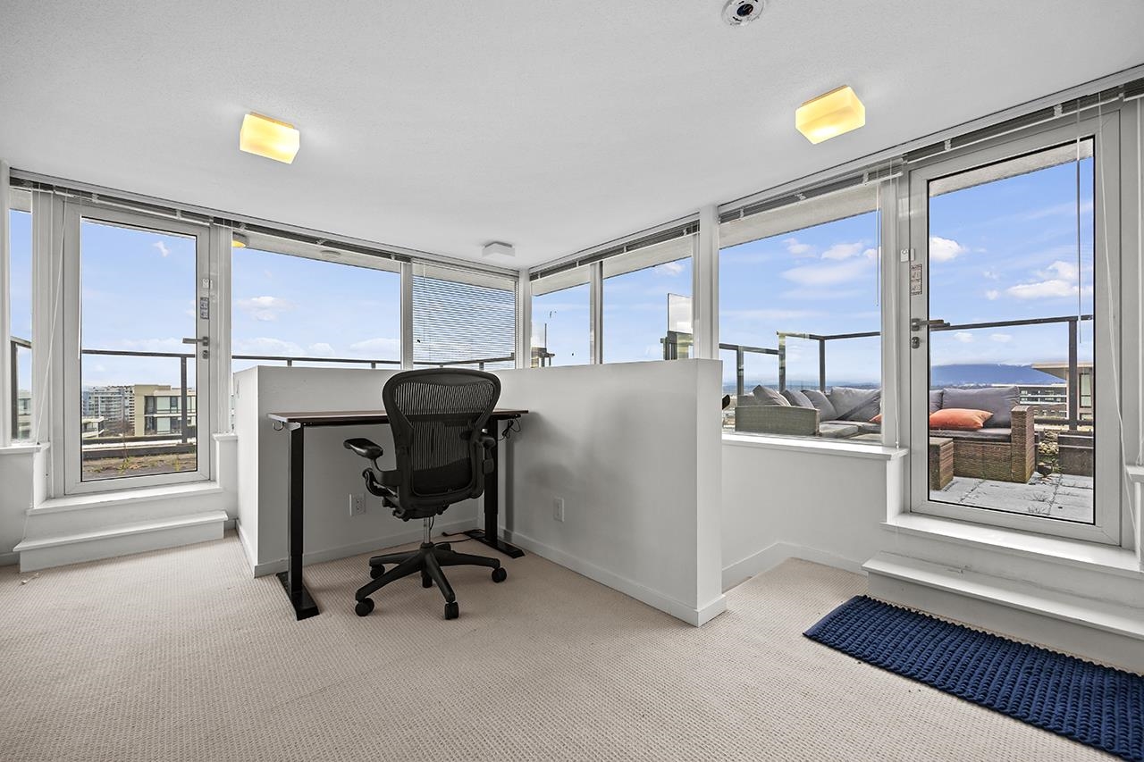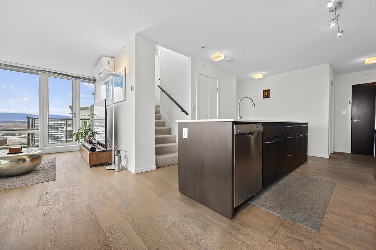 Quintet Tower A, a luxurious penthouse offering over 1,300 sq.ft. of total living space, including serene 286 sq.ft. private rooftop patio. This NW-facing home feels warm and refined, wrapped in mountain, city, and water views framed by floor-to-ceiling windows that fill every corner with natural light. Featuring 2 spacious bedrooms plus an airy loft/den on the upper level, it provides the perfect blend of comfort and versatility. The elegant kitchen is equipped with Bosch appliances, gas cooktop, Blomberg ...