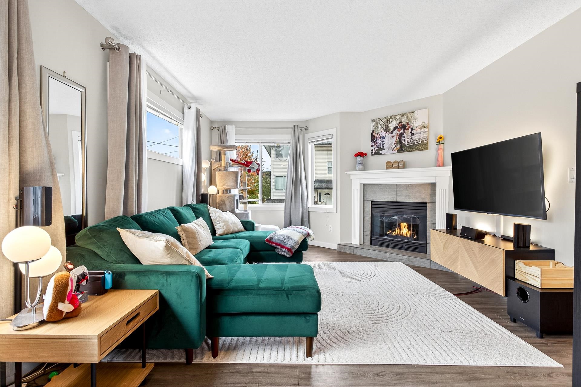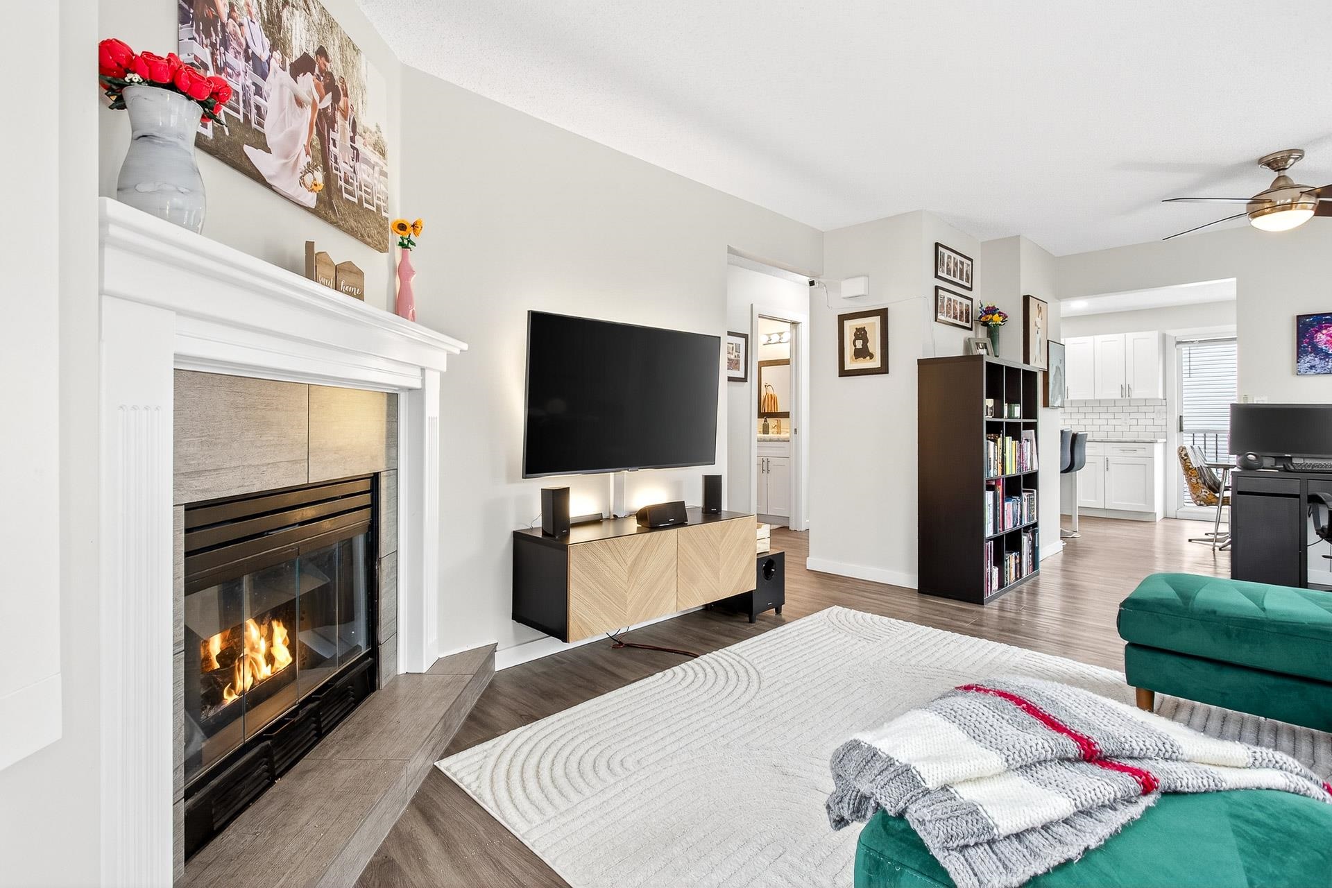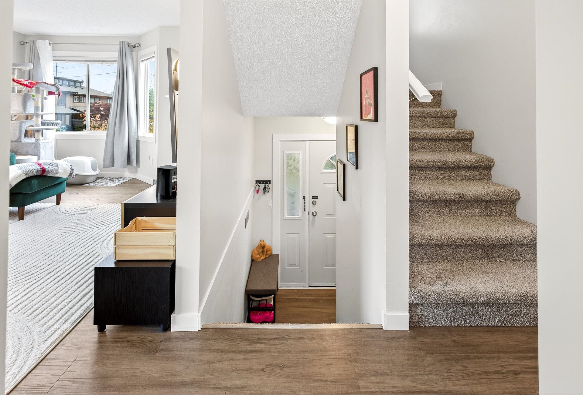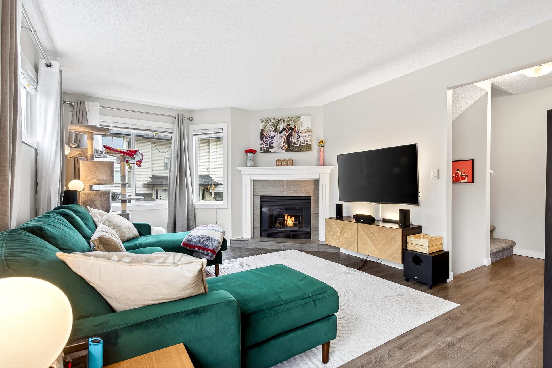 **Parkview Place** Spacious, Bright and updated END UNIT! Extensively renovated in 2021 including all white kitchen with S/S appliances, laminate flooring, baths, sinks, window blinds, pot lights & cozy gas fireplace. New (2024) hot water tank, two stage furnace + HEAT PUMP. Main level features living room with gas fireplace, dining room, updated kitchen + an eating area with access to the balcony. Upstairs has 3 spacious bedrooms including a primary suite with walk-in-closet + 2pc ensuite. Basement rec roo...
