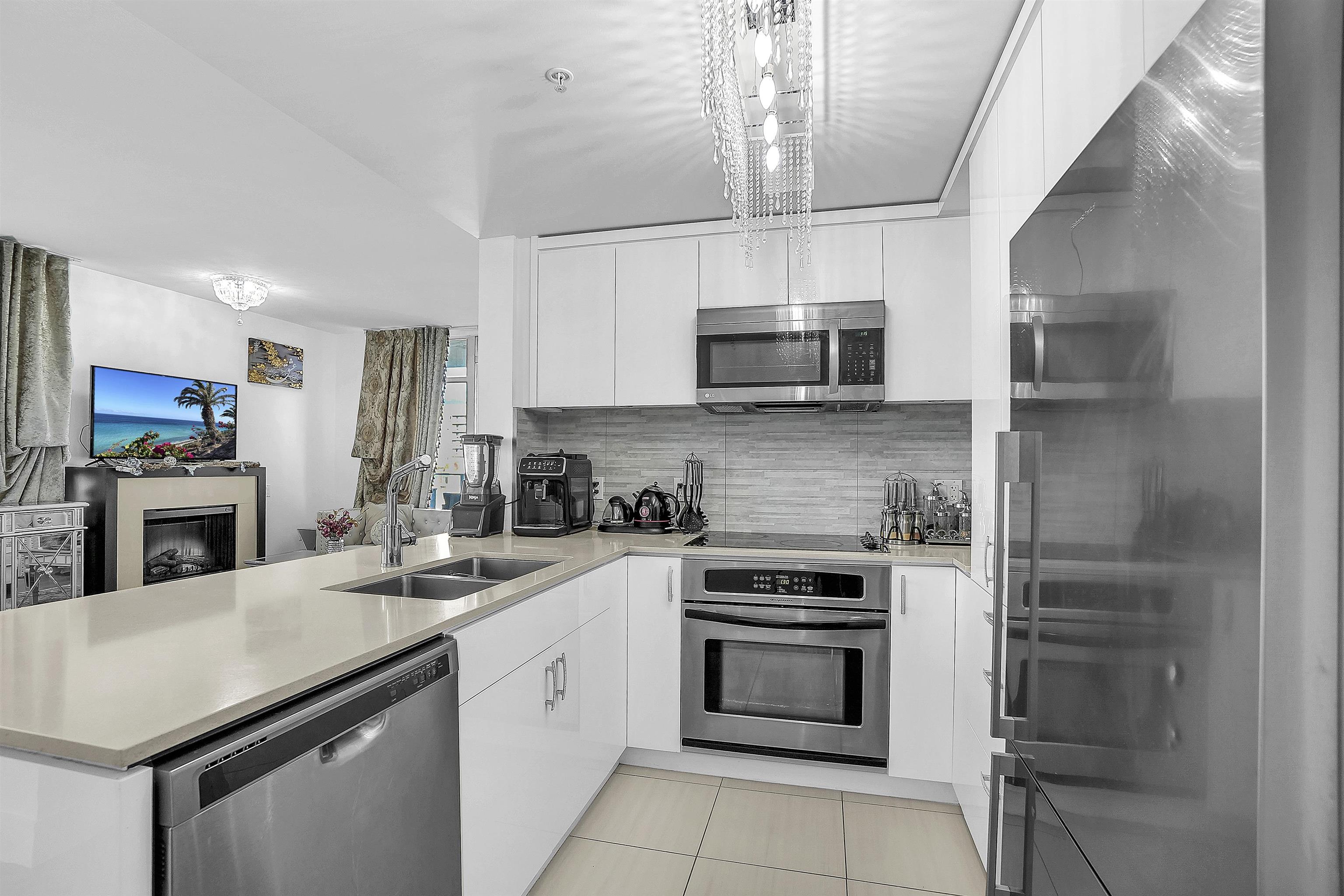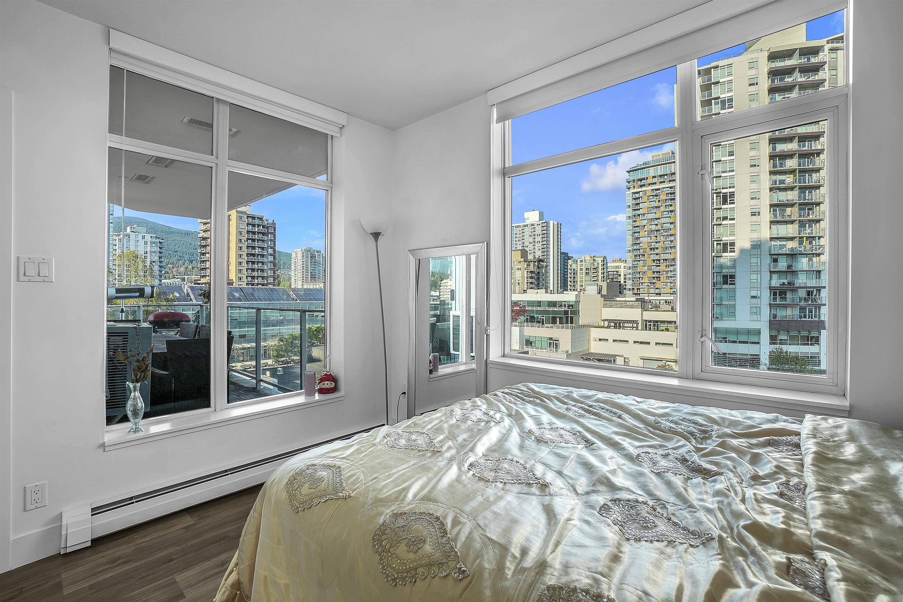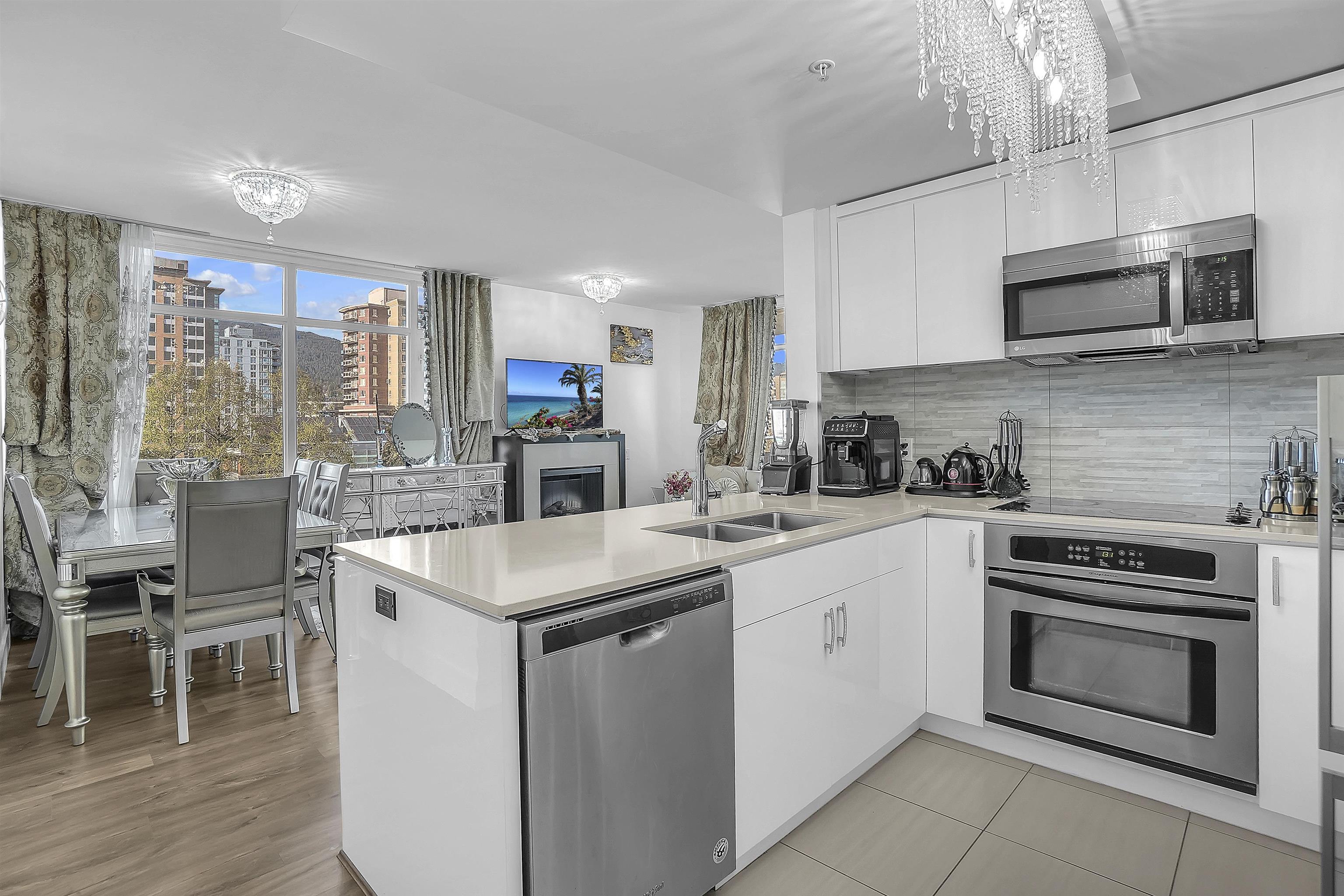 Location! In the heart of Lonsdale—steps to shopping, dining, banking, City Hall, and the library—this fully renovated 2 bed/bath corner home at Vista Place offers exceptional value in a highly regarded well-managed building. Perched on the 8th floor, enjoy lasting unobstructed mountain views &soothing sound of courtyard fountain below. Bright NE exposure brings warm morning light, paired with functional split-bedroom layout for comfort and privacy. Modern kitchen has high-gloss cabinetry, upgraded applianc...