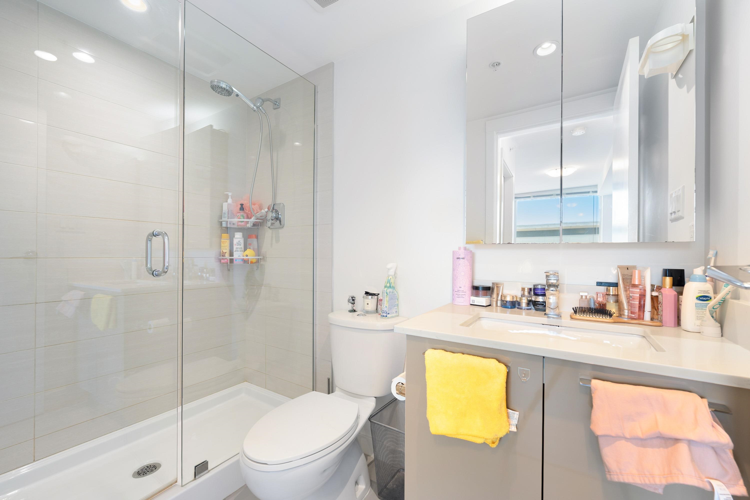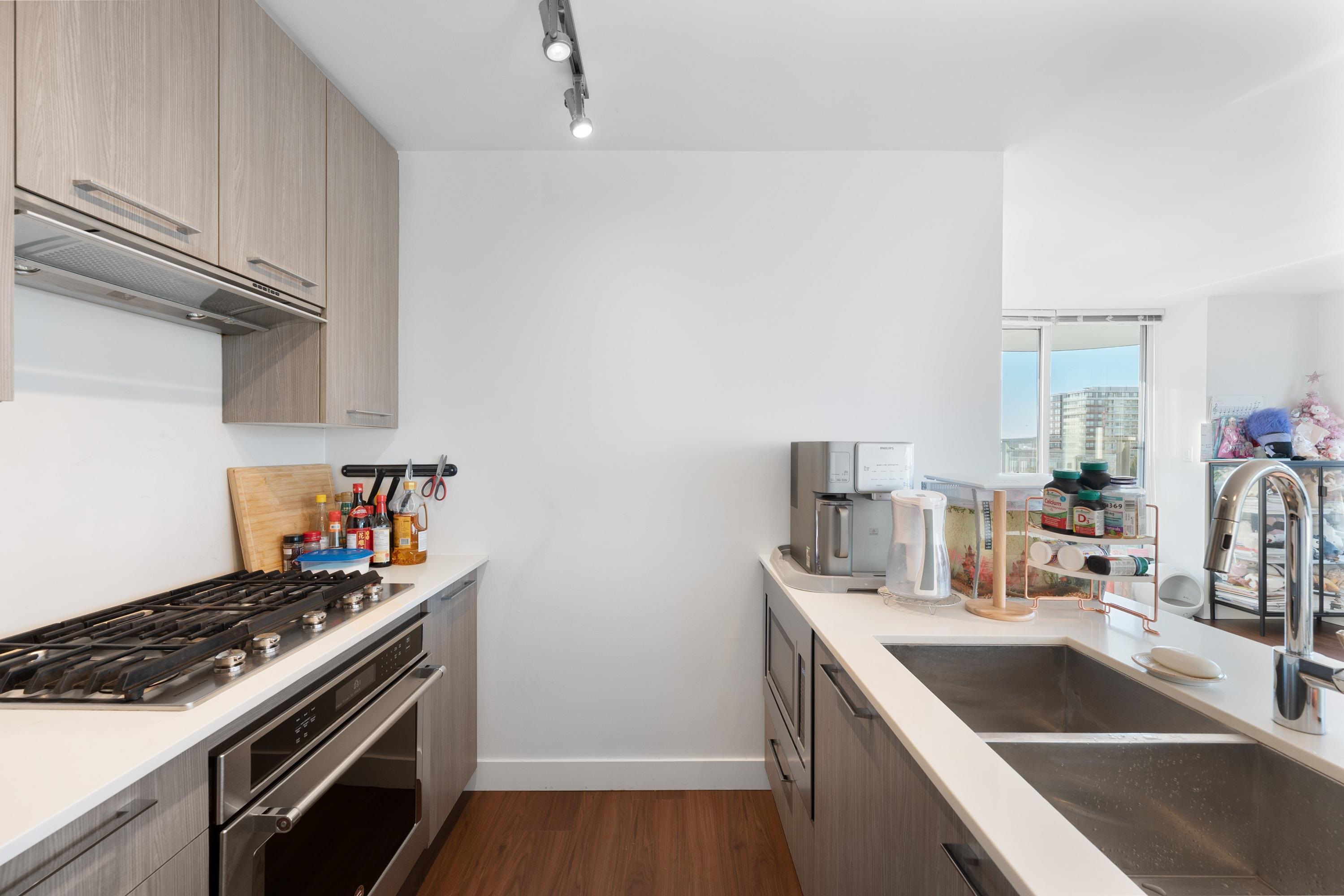 Welcome to Tempo air-conditioned concrete building in the heart of Richmond! This 972 sqft Jr 3bedroom corner unit, plus a 570 sqft private rooftop patio — perfect for outdoor living, gardening, and entertaining. Enjoy expansive living space, beautiful city and mountain views, and a functional layout. Features a modern kitchen with stone countertops, stainless steel appliances, gas cooktop, and laminate flooring throughout, along with 1 parking and 1 locker. Fantastic amenities include an indoor pool, hot t...