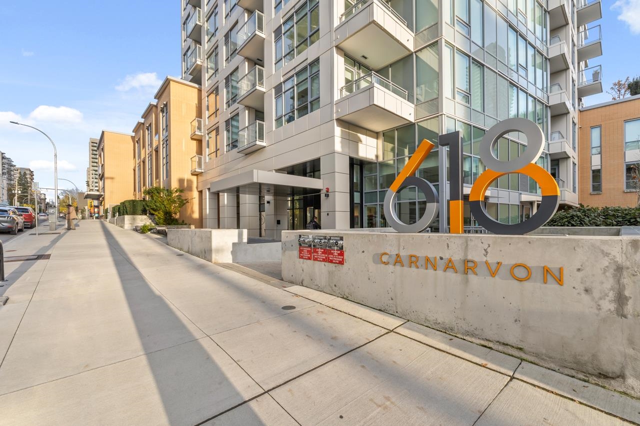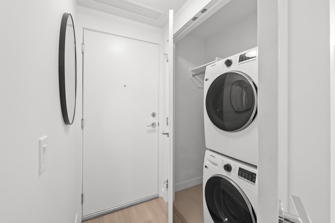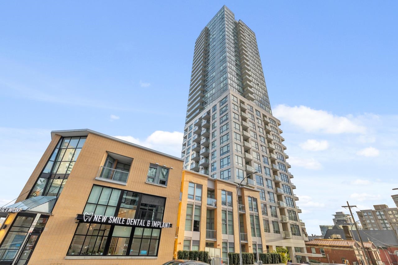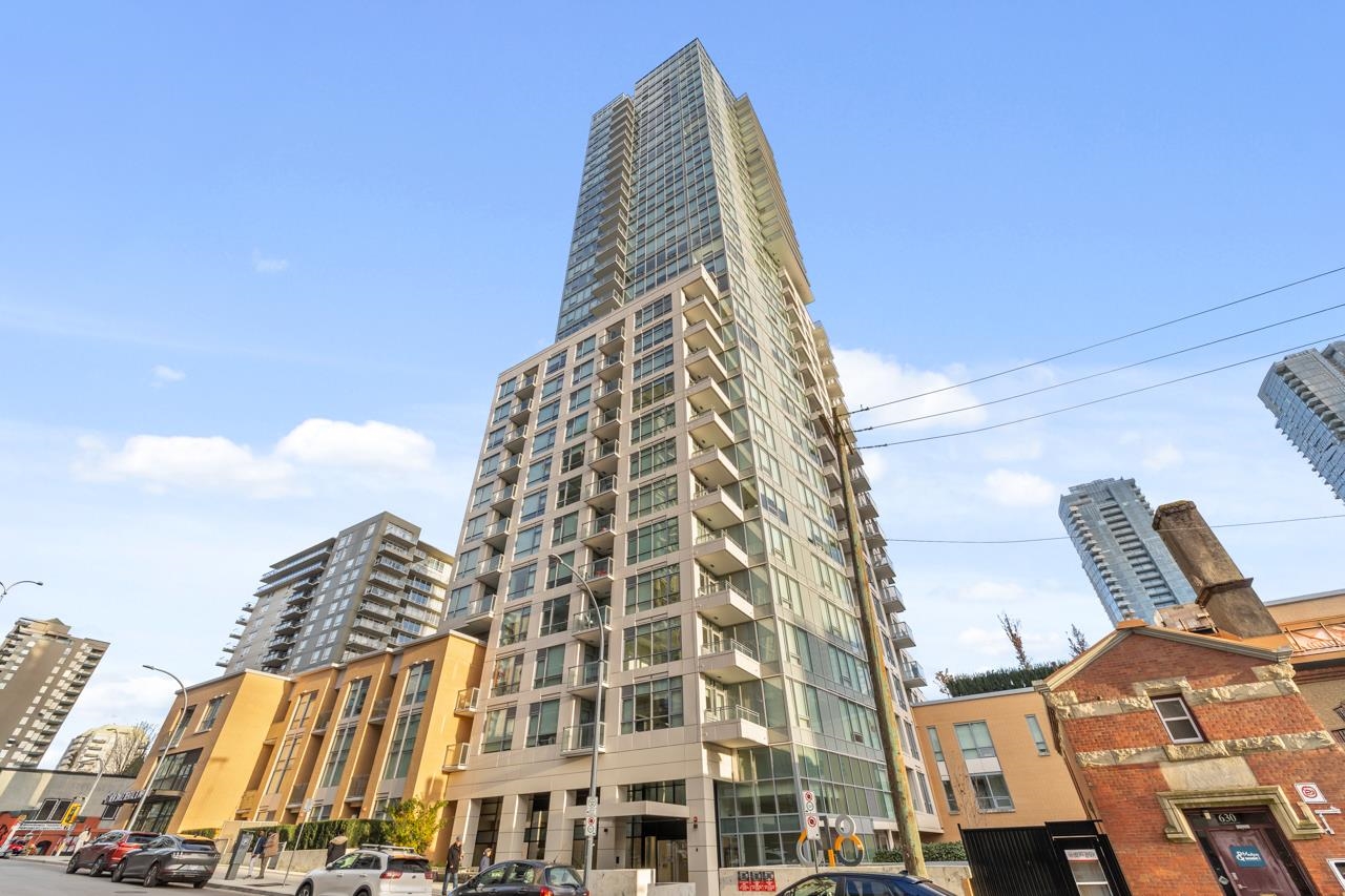 Come home to this fabulous 1 bed condo in a newer luxury CONCRETE BUILDING in the heart of downtown, with a QUIET OUTLOOK and 5min walk to SKYTRAIN. This BRIGHT and AIR CONDITIONED home features a functional layout with an abundance of NATURAL LIGHT, open concept living and dining area and private COVERED BALCONY. The CHEF-INSPIRED KITCHEN includes S/S BOSCH APPLIANCES, GAS COOKTOP, QUARTZ COUNTERS, and soft-close cabinetry. Full bedroom with generous closet space, spa-inspired bathroom and IN-SUITE LAUNDR...