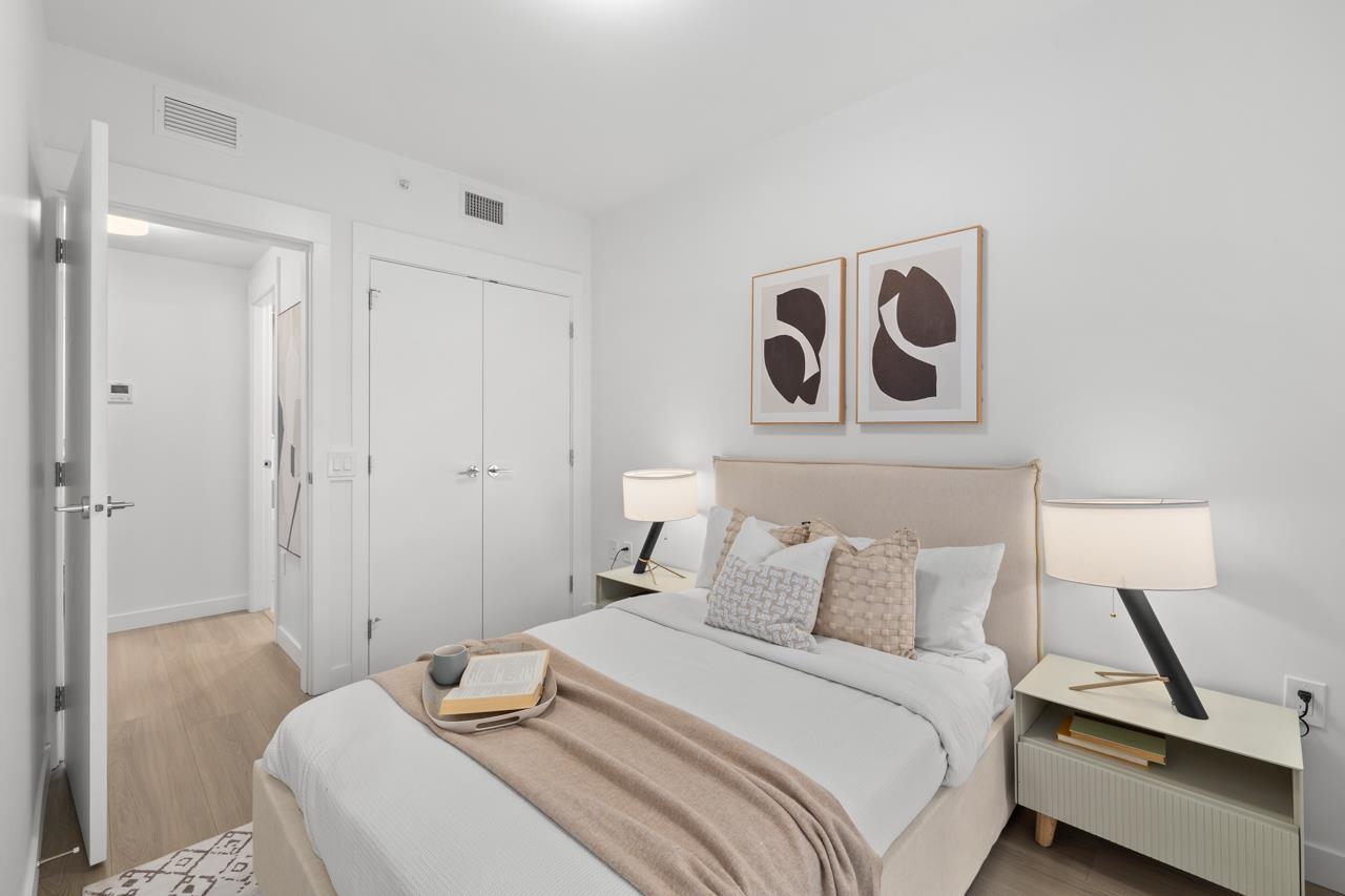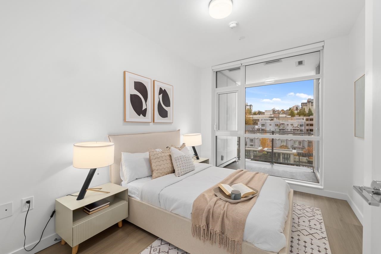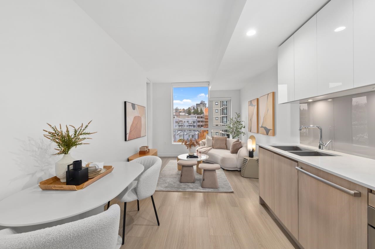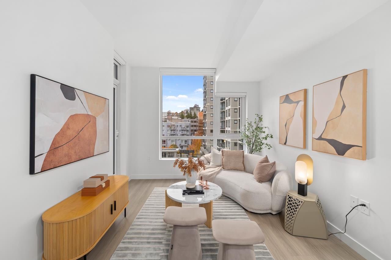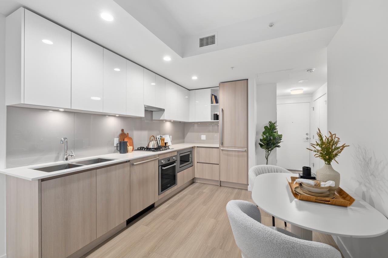 Come home to this fabulous 1 bed condo in a newer luxury CONCRETE BUILDING in the heart of downtown, with a QUIET OUTLOOK and 5min walk to SKYTRAIN. This BRIGHT and AIR CONDITIONED home features a functional layout with an abundance of NATURAL LIGHT, open concept living and dining area and private COVERED BALCONY. The CHEF-INSPIRED KITCHEN includes S/S BOSCH APPLIANCES, GAS COOKTOP, QUARTZ COUNTERS, and soft-close cabinetry. Full bedroom with generous closet space, spa-inspired bathroom and IN-SUITE LAUNDR...