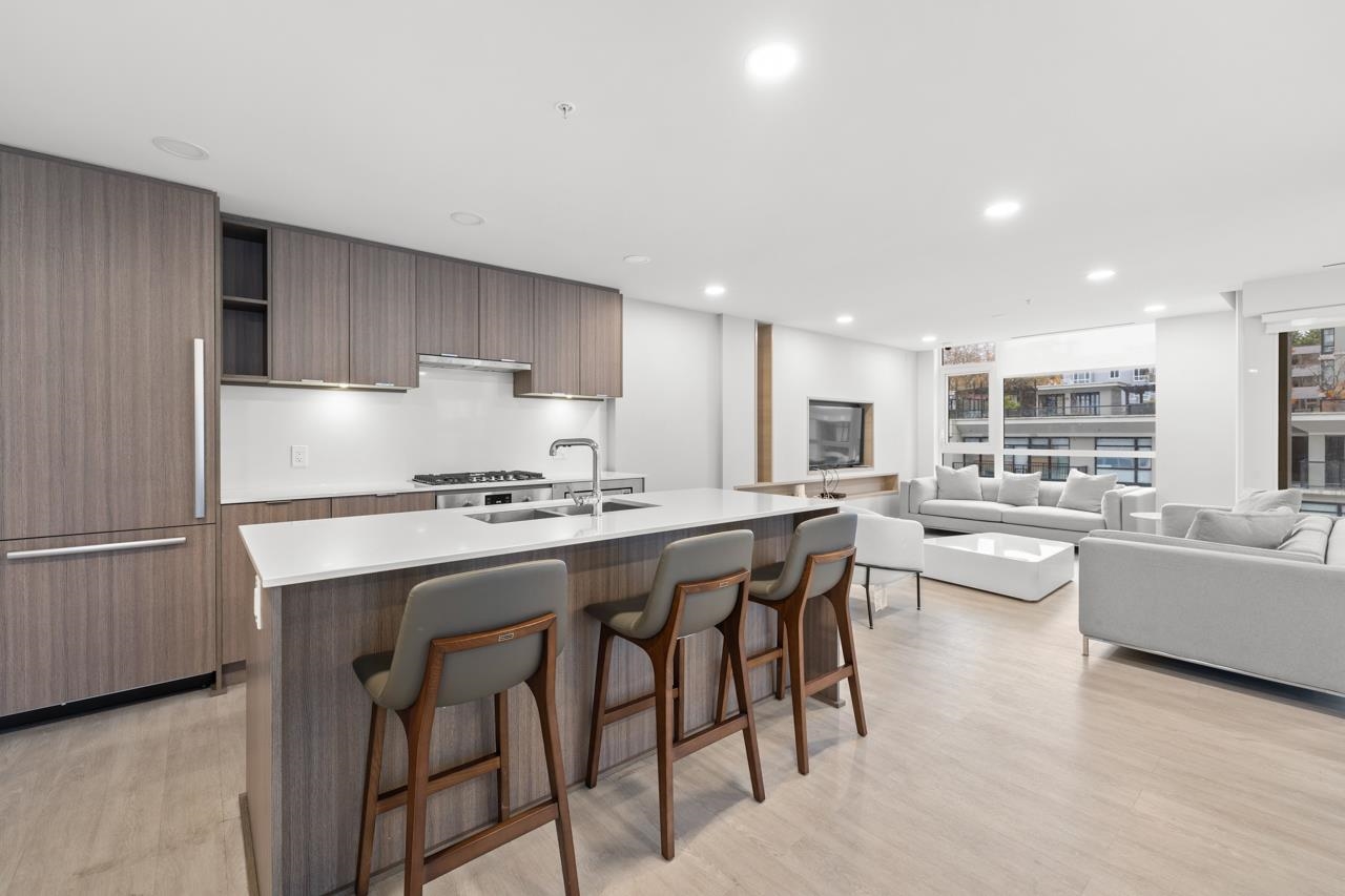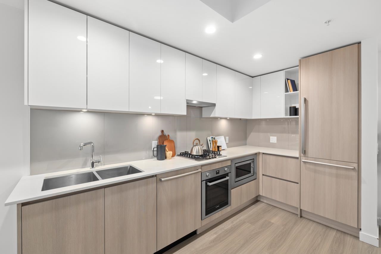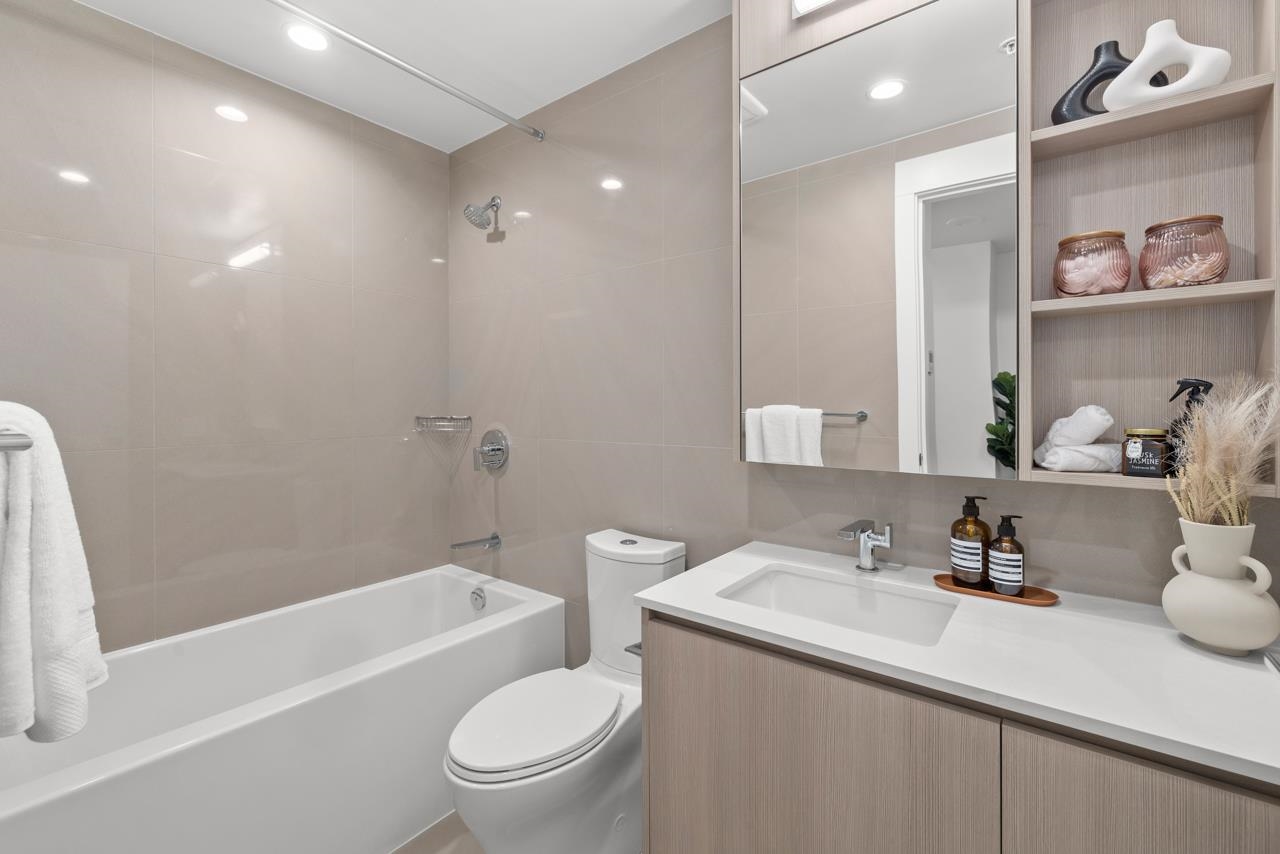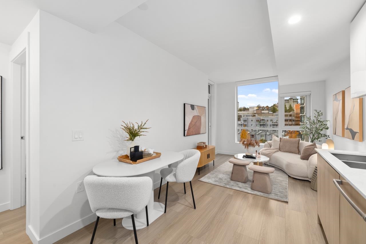 Come home to this fabulous 1 bed condo in a newer luxury CONCRETE BUILDING in the heart of downtown, with a QUIET OUTLOOK and 5min walk to SKYTRAIN. This BRIGHT and AIR CONDITIONED home features a functional layout with an abundance of NATURAL LIGHT, open concept living and dining area and private COVERED BALCONY. The CHEF-INSPIRED KITCHEN includes S/S BOSCH APPLIANCES, GAS COOKTOP, QUARTZ COUNTERS, and soft-close cabinetry. Full bedroom with generous closet space, spa-inspired bathroom and IN-SUITE LAUNDR...