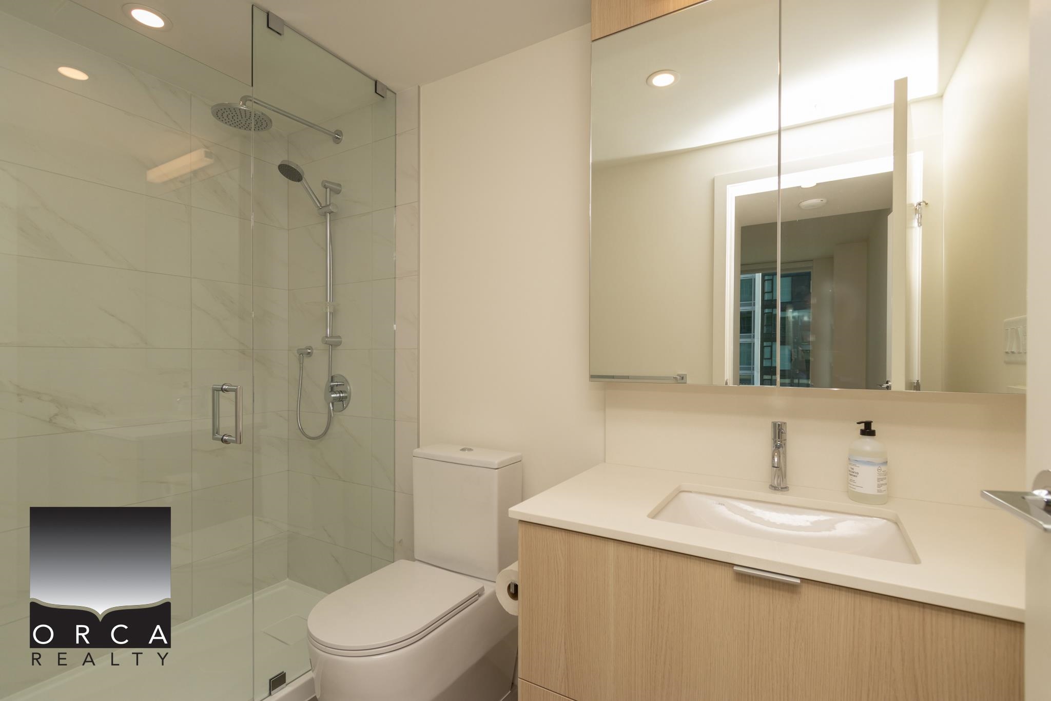 Step into this expansive brand new 2BR/2BA unit, featuring a spacious private balcony and a sleek, modern kitchen with premium Bosch and Liebherr appliances. The open living space is bright and airy, with quartz countertops and laminate flooring. Enjoy the convenience of air conditioning for year-round comfort, as well as secure parking and storage. Situated in a prime location, this unit is just steps away from rapid transit, major highways, and a variety of dining and shopping options. The well-maintained...