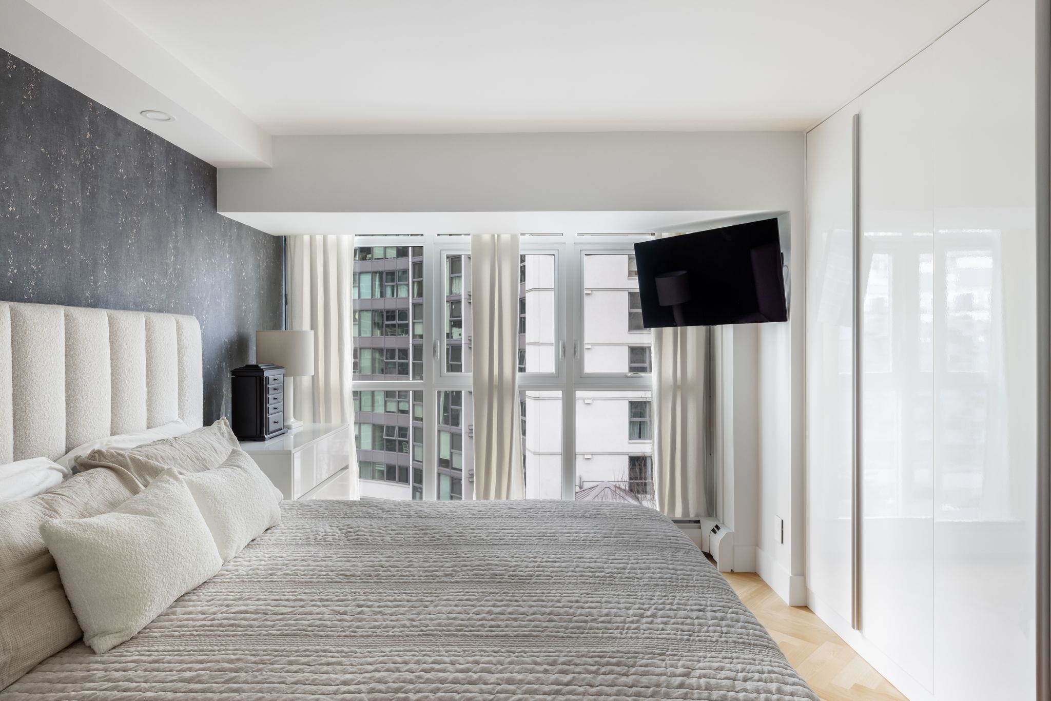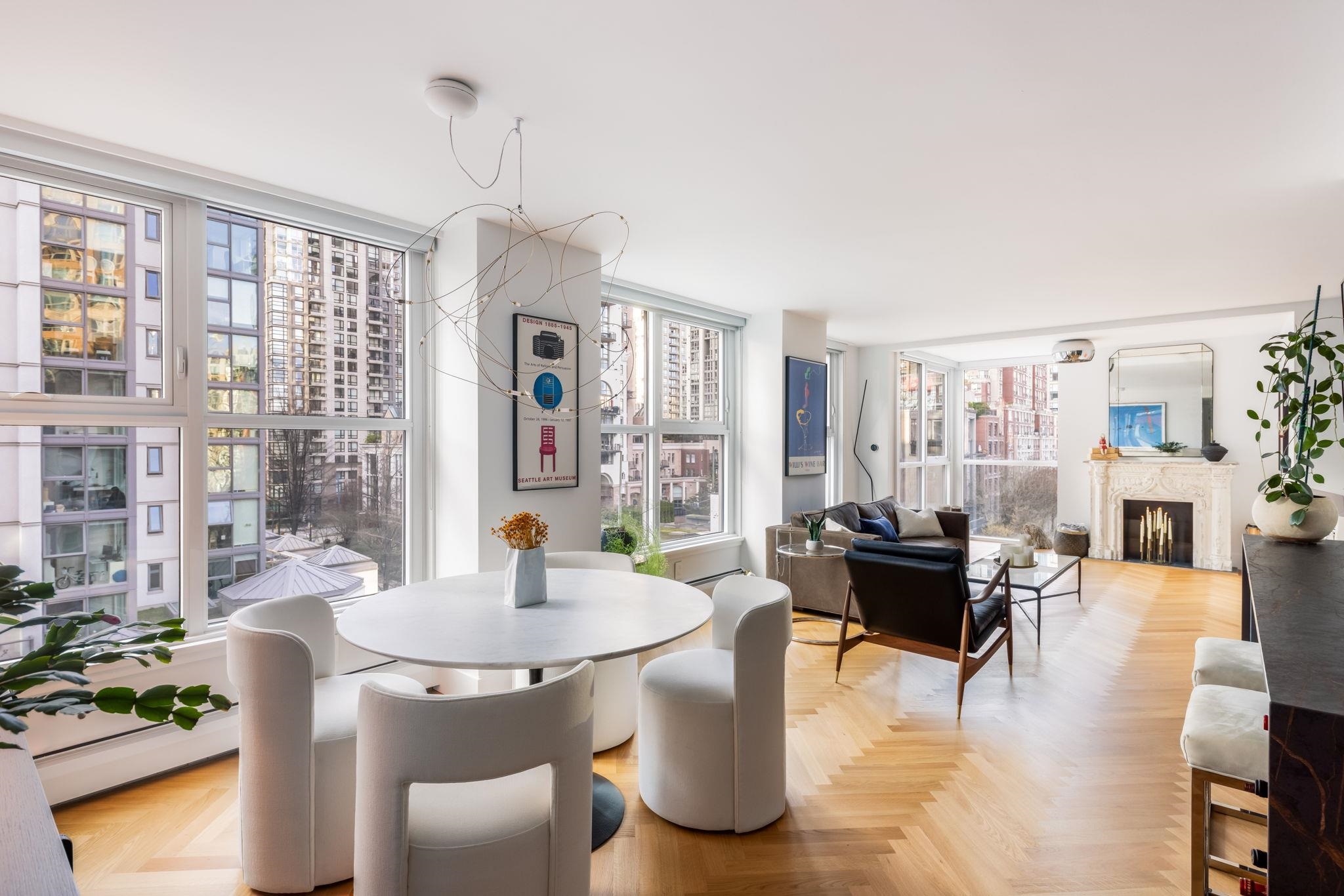 Welcome to this exquisitely renovated 2 bed, 2 bath residence in the HEART of Yaletown, perfectly positioned across from David Lam Park. The designer kitchen features custom cabinetry, premium appliances, Dekton counters & walk-in pantry, complemented by stunning white oak herringbone flooring. The kitchen seamlessly opens to the BRIGHT, house-sized living room & dining area which features a Moooi suspension light over the table area. The European aesthetic creates an inviting ambiance w/ beautiful city vie...