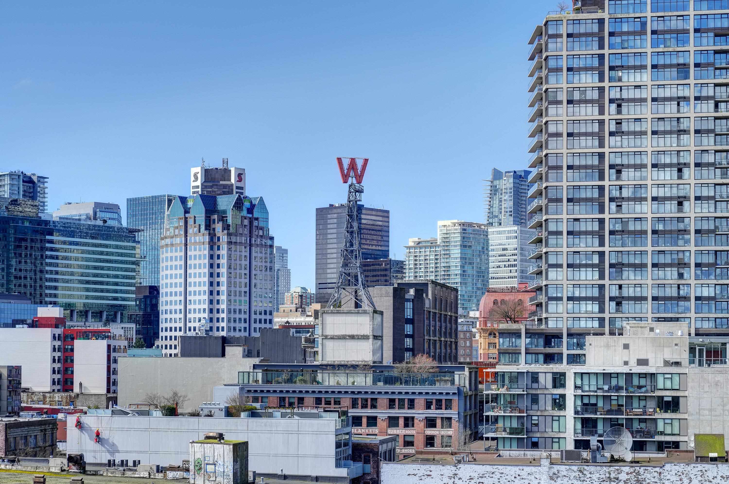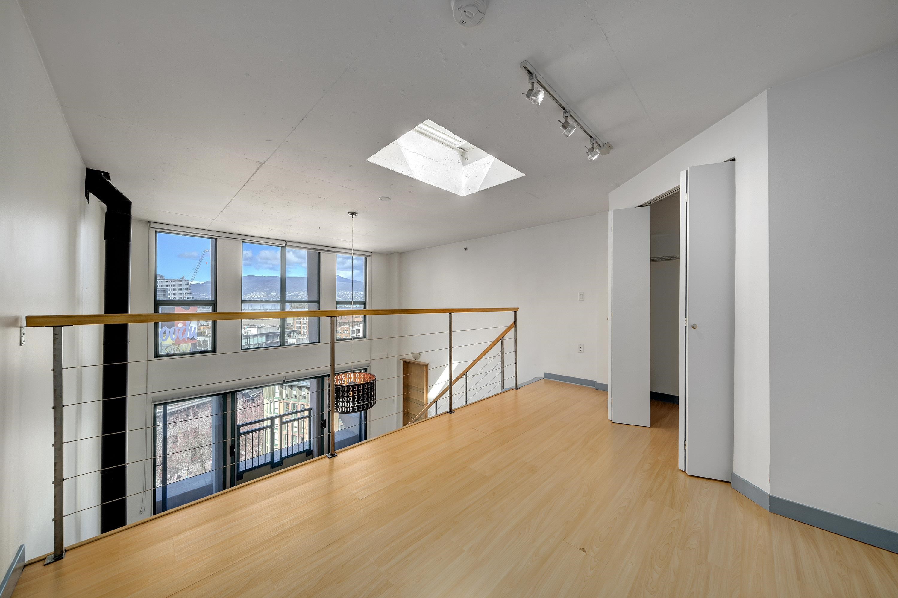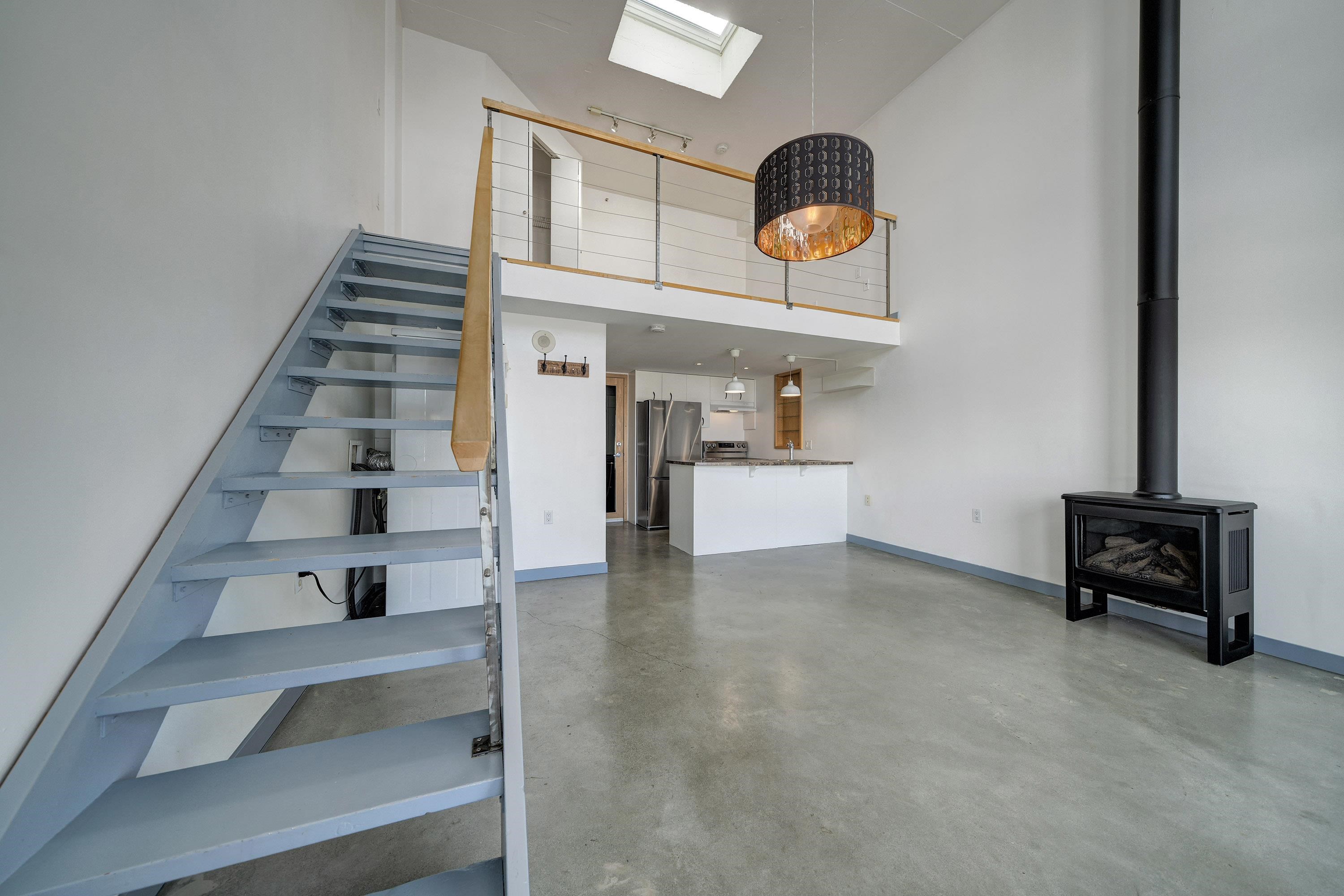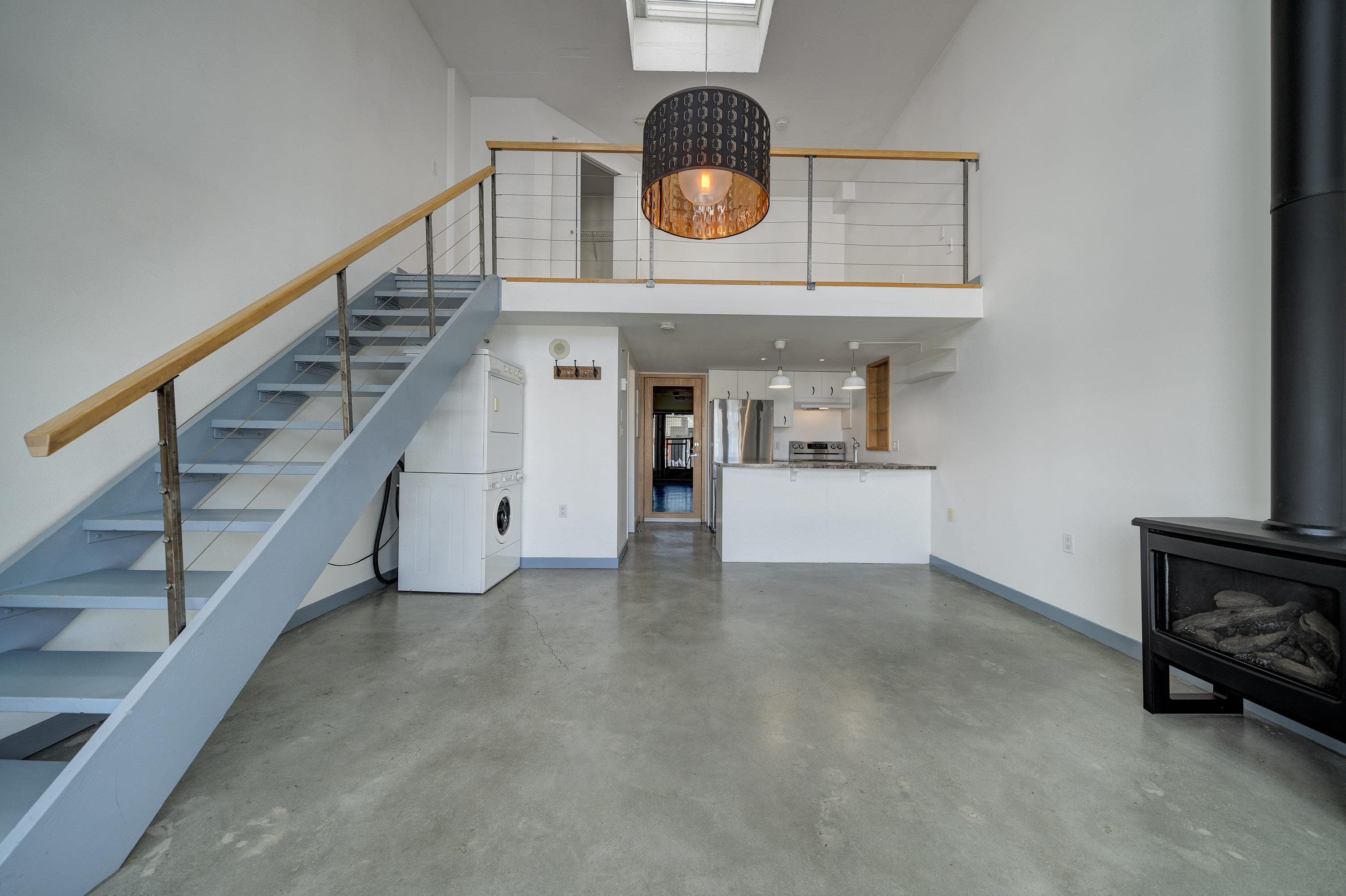 New York-style penthouse loft in the Van Horne building - Gastown. Outstanding creative space with concrete floors, 16" ceiling, and panoramic views of the water, mountains, and the city. The space features large floor-to-ceiling windows and a constantly moving picture of the world outside - it is light and bright. There is a Juliet balcony with double sliders, built-in shelving, a freshly painted kitchen with newer appliances, in-suite laundry, plus a free-standing gas fireplace for ambience. The upper lof...