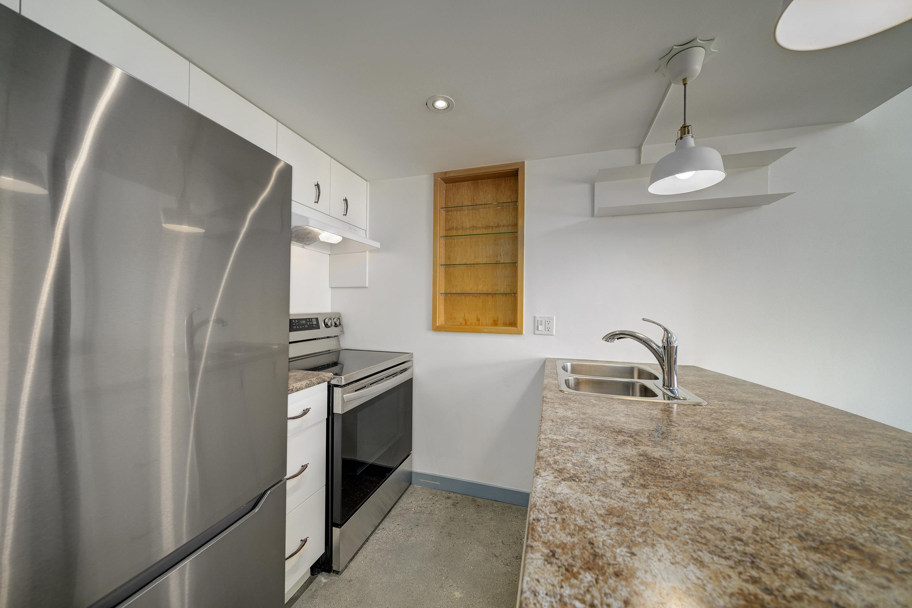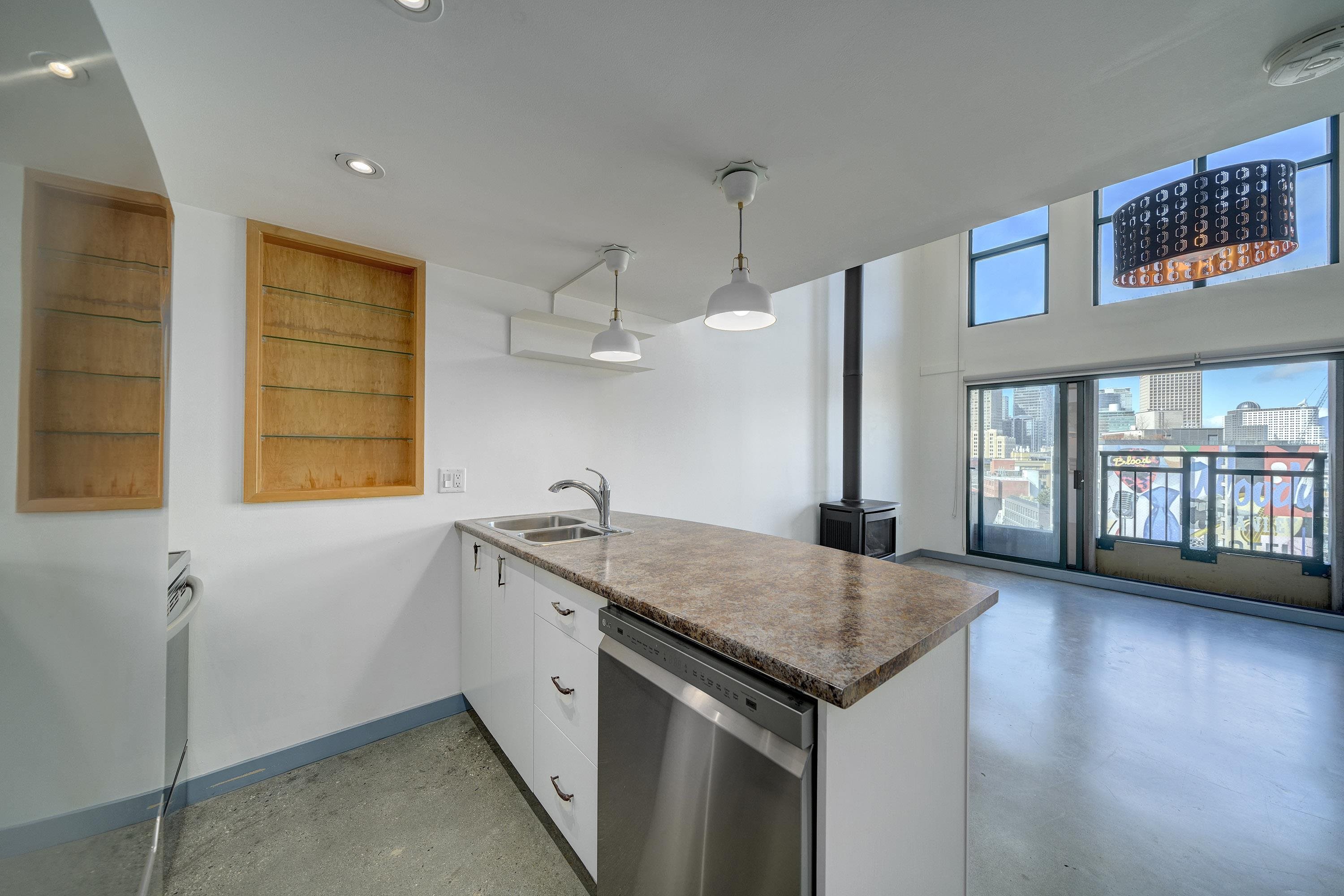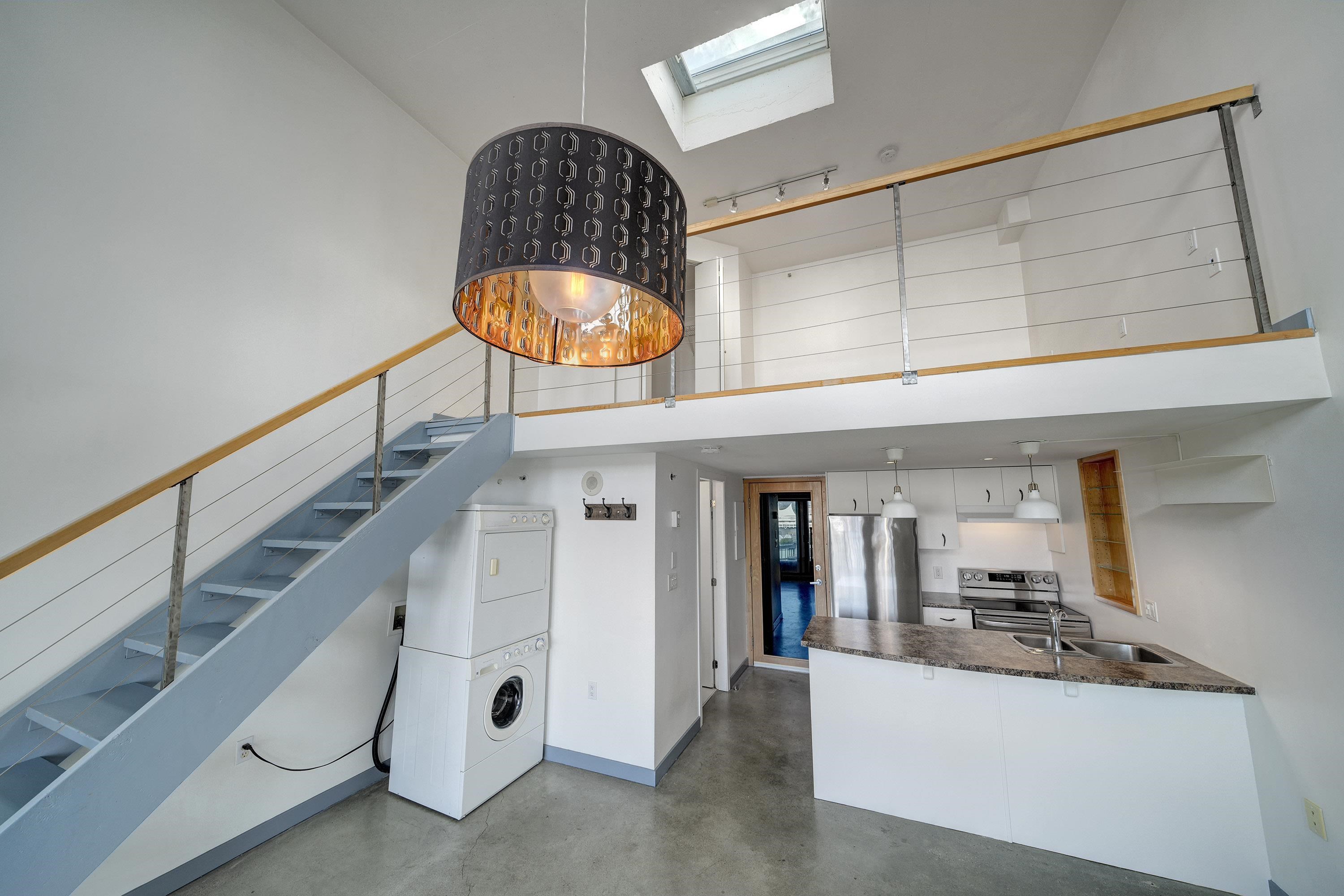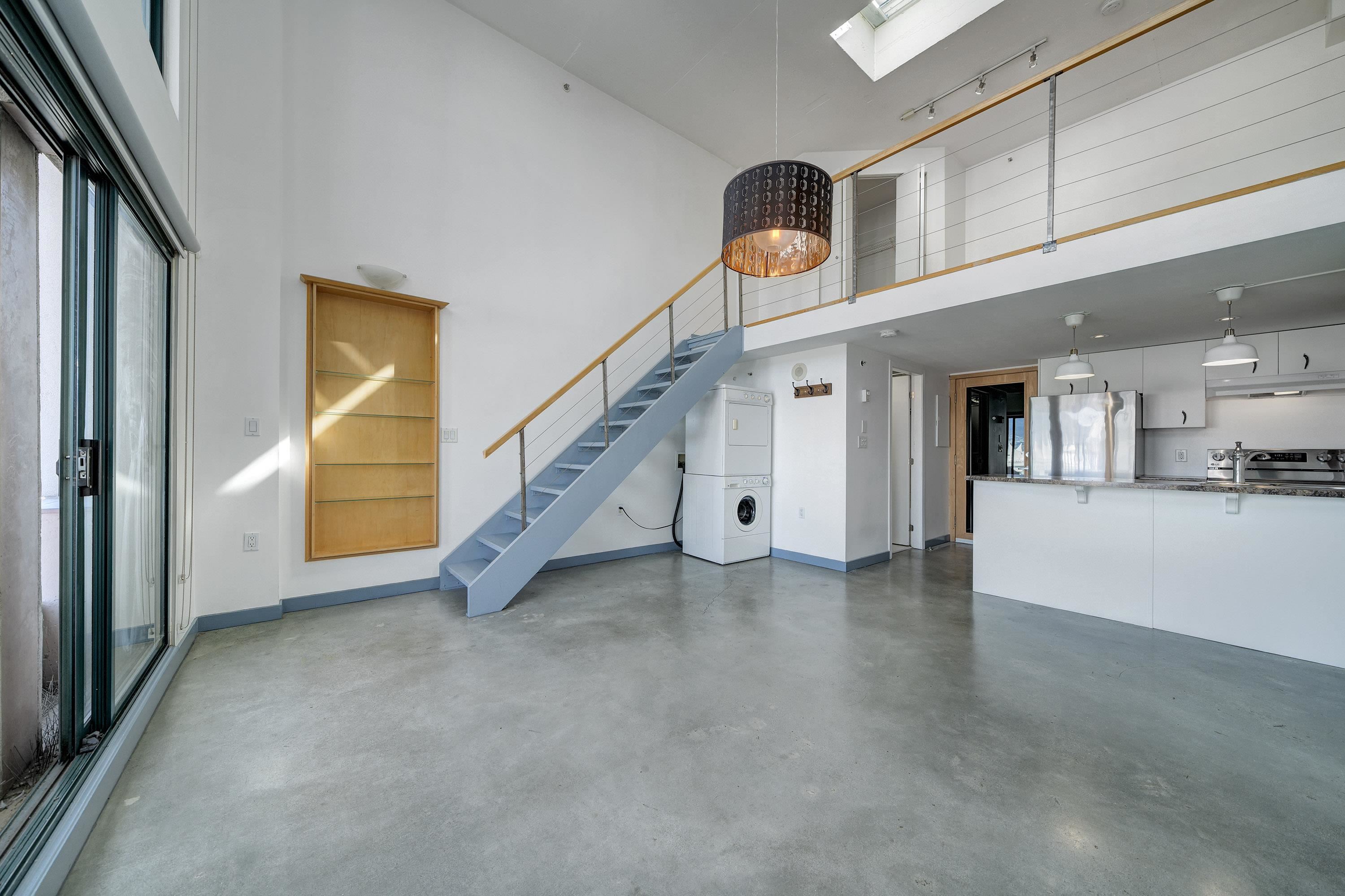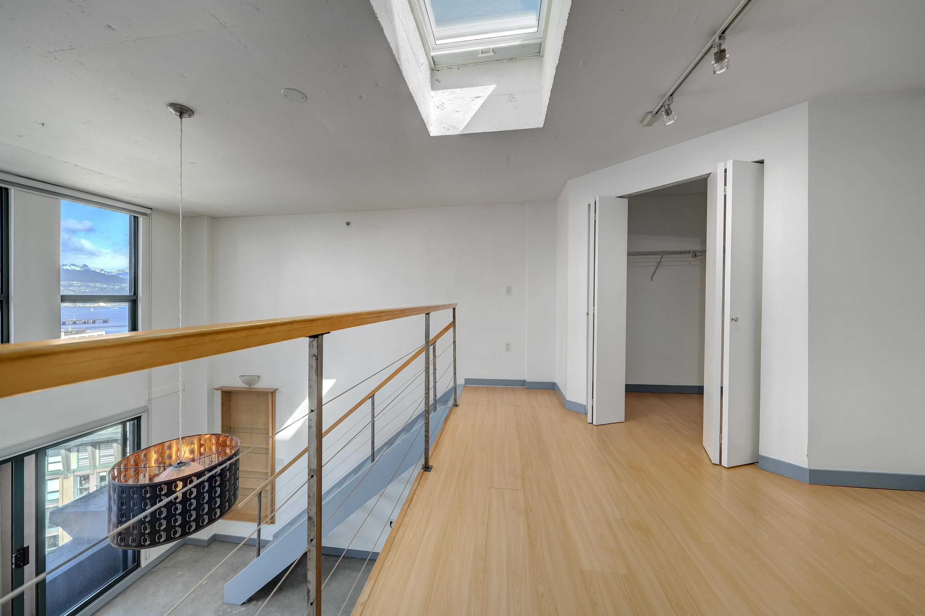 New York-style penthouse loft in the Van Horne building - Gastown. Outstanding creative space with concrete floors, 16" ceiling, and panoramic views of the water, mountains, and the city. The space features large floor-to-ceiling windows and a constantly moving picture of the world outside - it is light and bright. There is a Juliet balcony with double sliders, built-in shelving, a freshly painted kitchen with newer appliances, in-suite laundry, plus a free-standing gas fireplace for ambience. The upper lof...