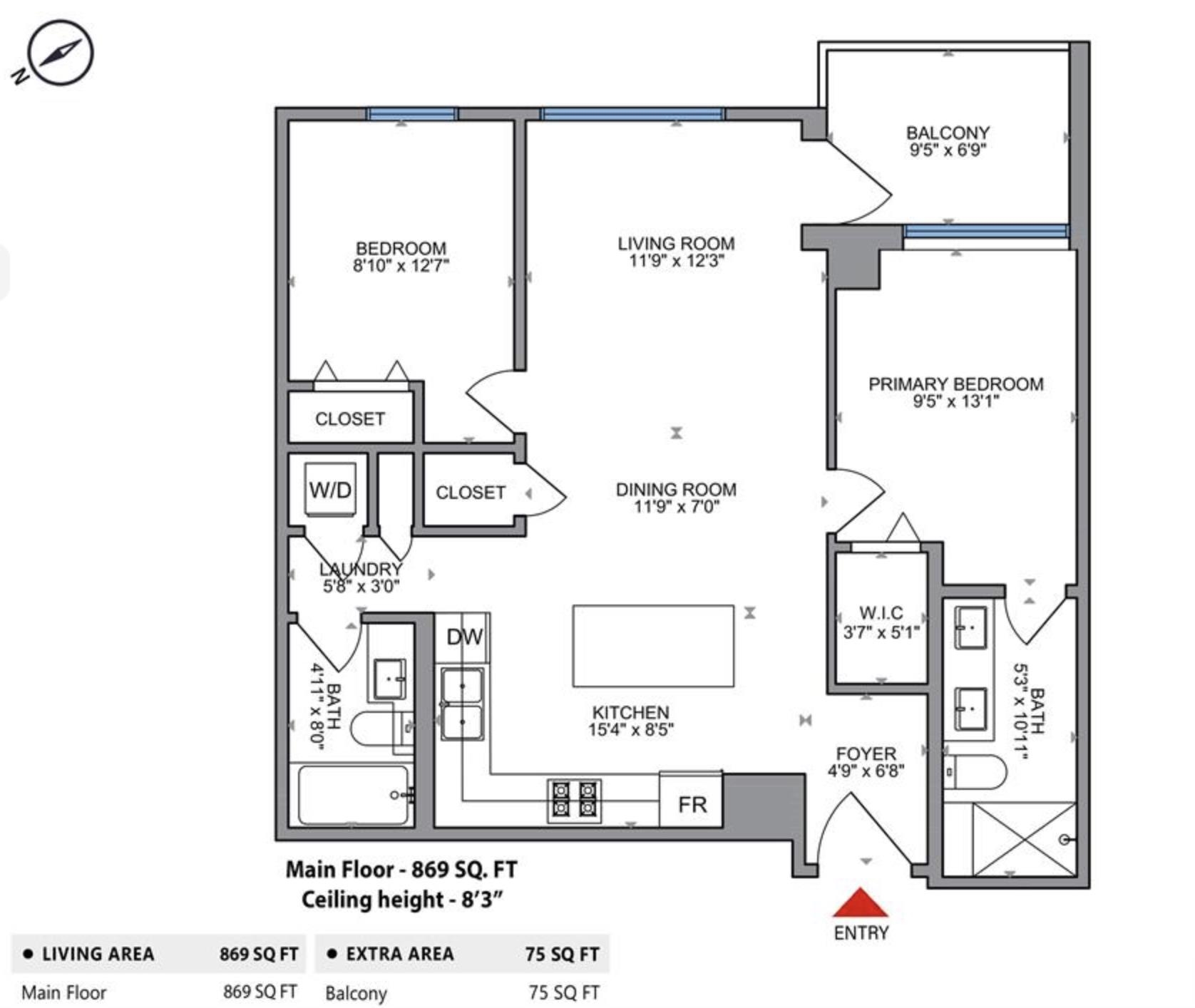 869 sqft
