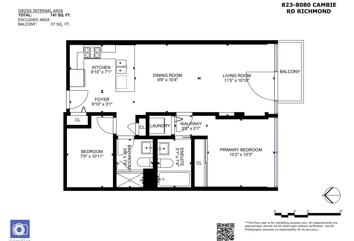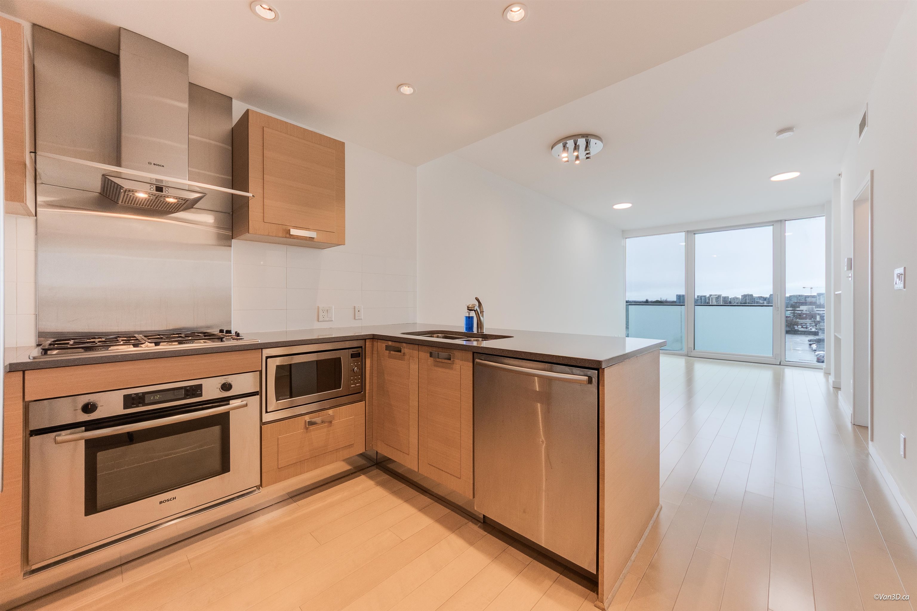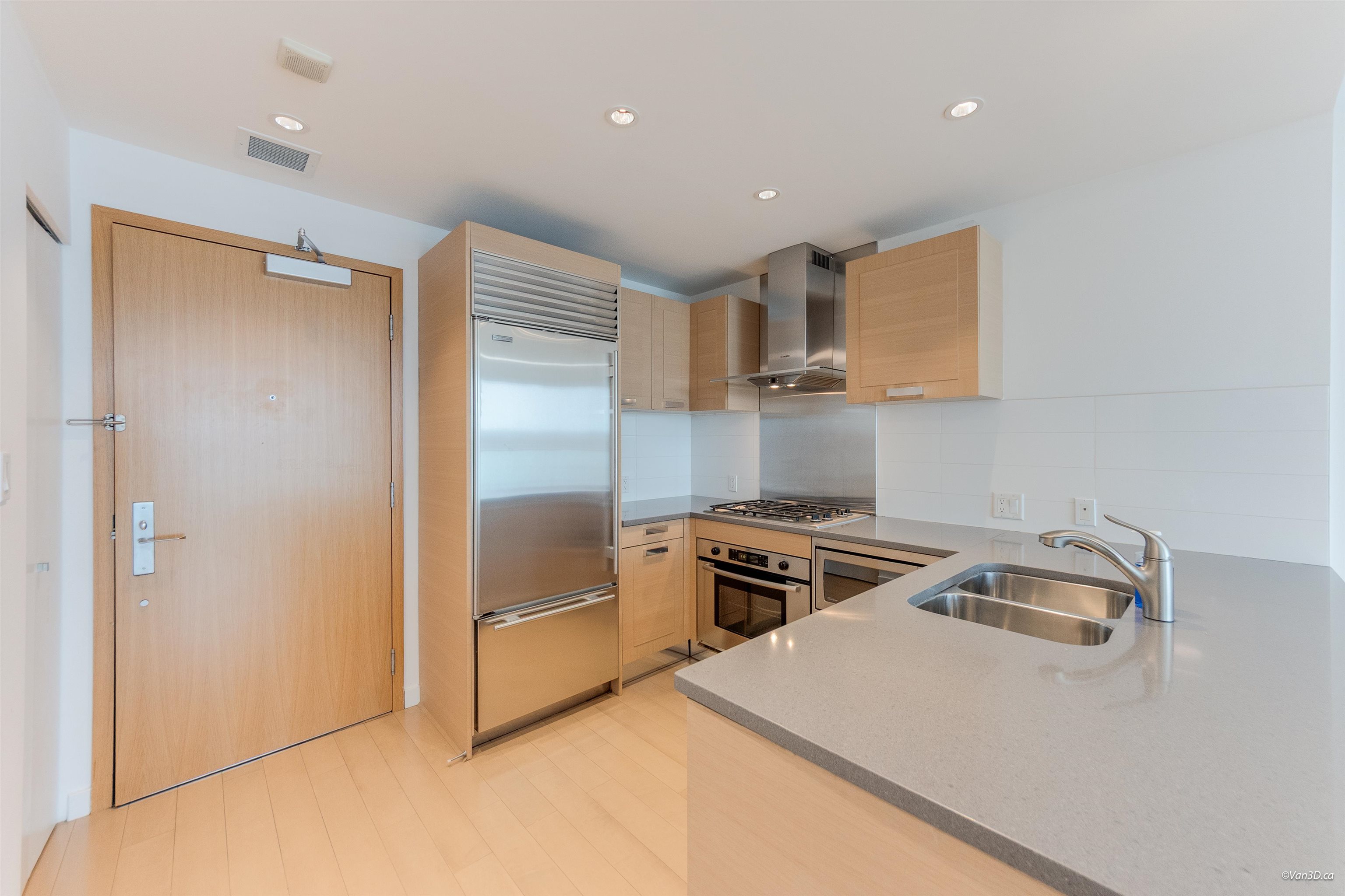 Directly connected to SkyTrain, this south-facing, air-conditioned 2-bedroom home at Aberdeen Residences offers ultimate convenience in the heart of Richmond at Cambie & No. 3 Road. Functional 2 bed 2 bath layout with open-concept living and a spacious kitchen featuring Sub-Zero fridge and Bosch stove/oven. Comes with air conditioning, a private Juliet balcony, and triple-pane windows for better soundproofing and energy efficiency. New laminate flooring throughout. Includes 1 ground-level access parking. Un...