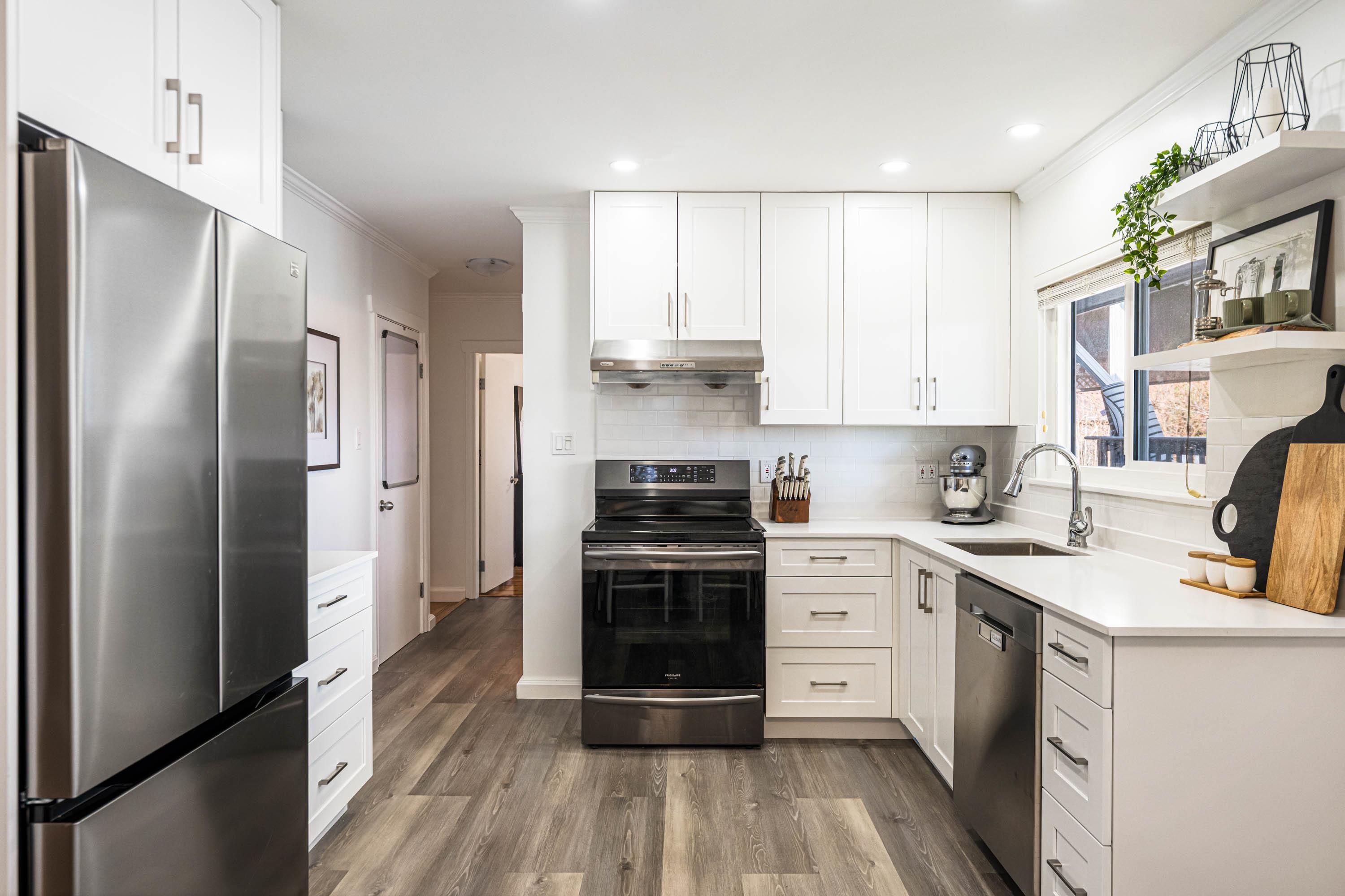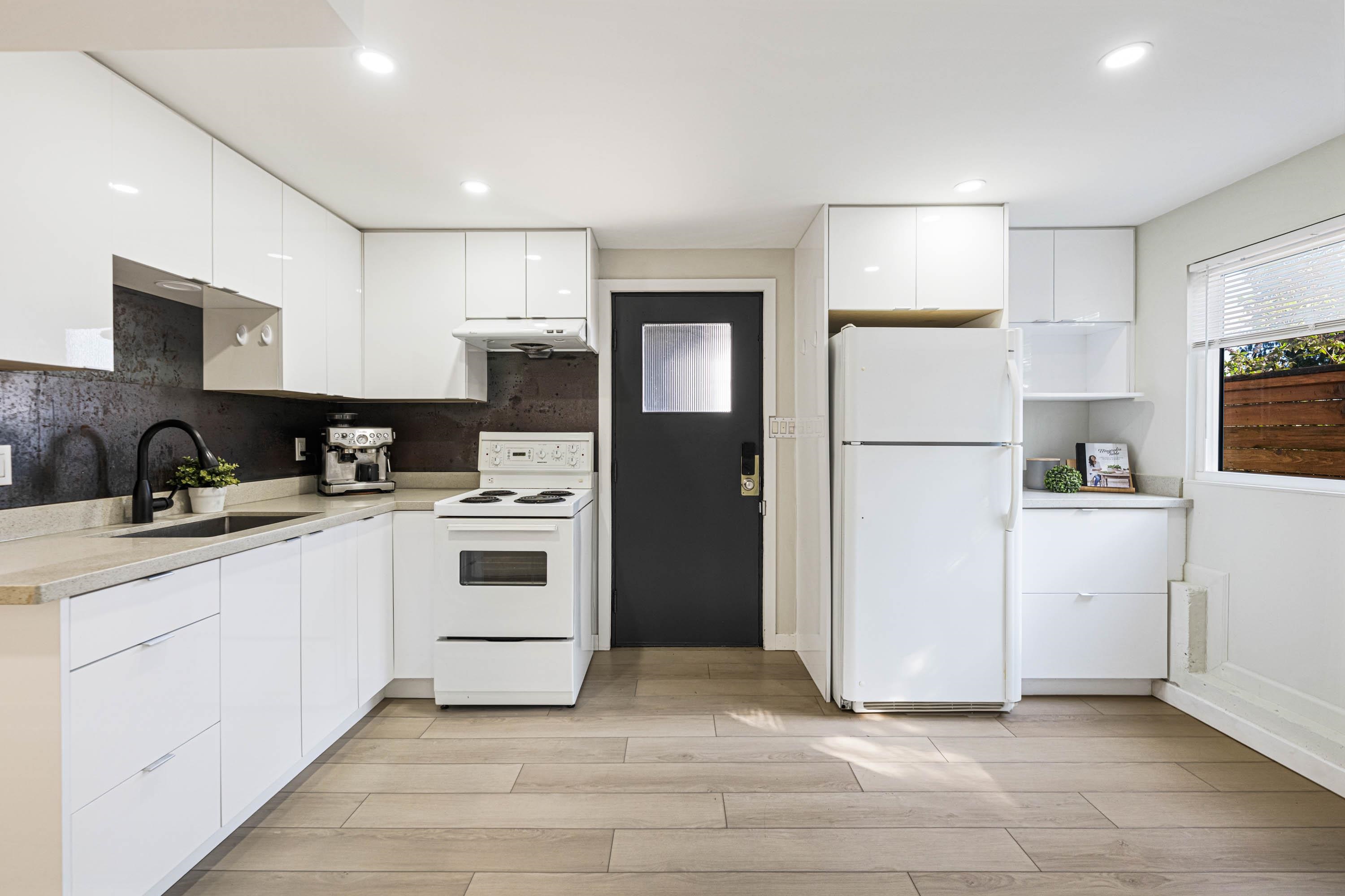 Set on a sun-filled south-facing lot, this maintained & thoughtfully updated home offers comfort, versatility & exciting potential. The main level features 2 inviting bedrooms & a functional layout, highlighted by a BRAND NEW kitchen, freshly painted & new fridge/dishwasher. Downstairs, a renovated two-bedroom suite w/ separate entrance, spacious living area, & its own kitchen provides an ideal mortgage helper or space for extended family. Enjoy a private, professionally landscaped backyard w/a covered deck...