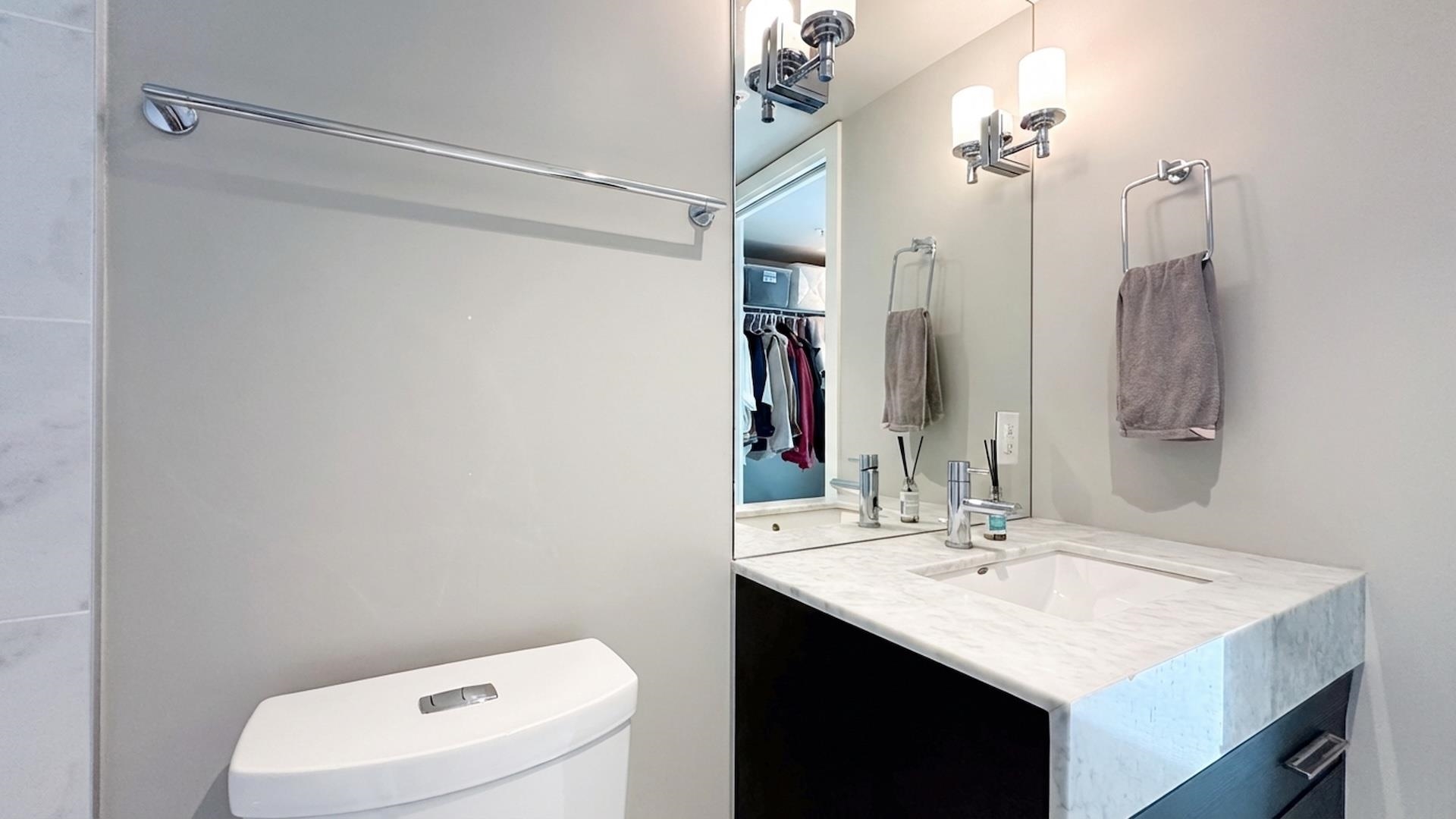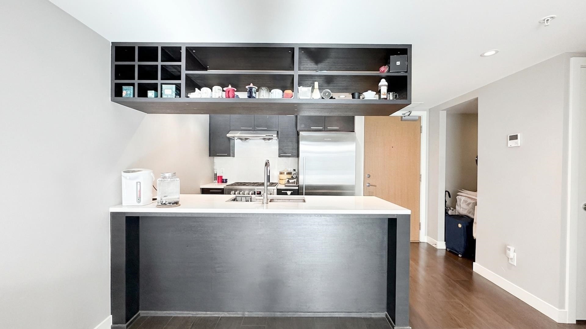 Centrally located, this one bedroom and den unit facing South on 8th floor. This home has marble-style porcelain on walls & floors, lovely lighting fixtures, soaker tub, energy star rated appliances & in-suite laundry. Steps away from Richmond City Center; Skytrain Richmond Brighouse Station is at your door, walking distance to shopping, restaurants, minutes to Recreation & YVR. Amenities: 10 person dining area & chef's kitchen, family lounge with a large screen TV/fireplace, rooftop terrace & garden lounge...