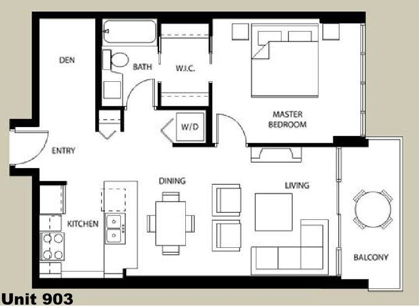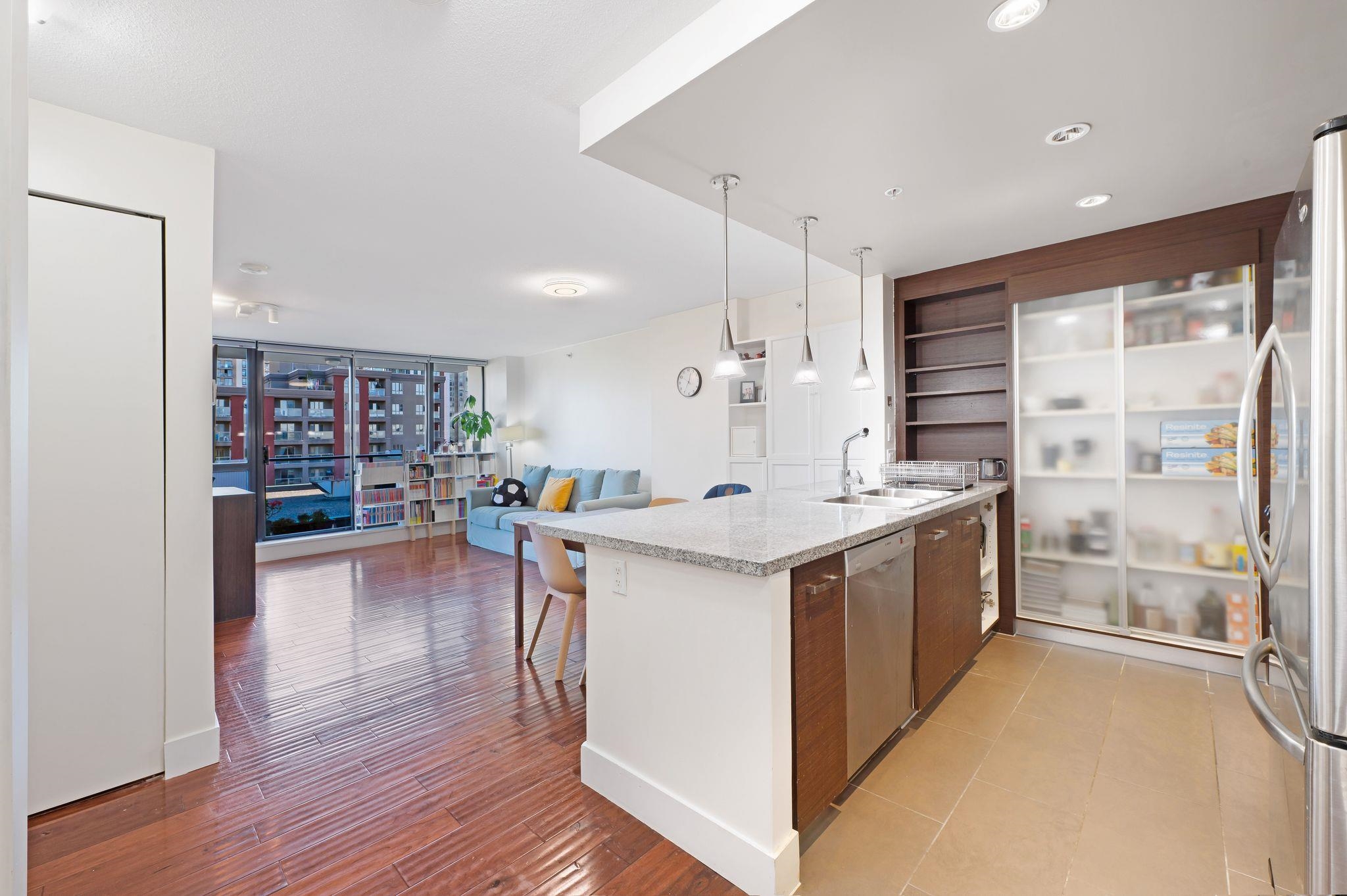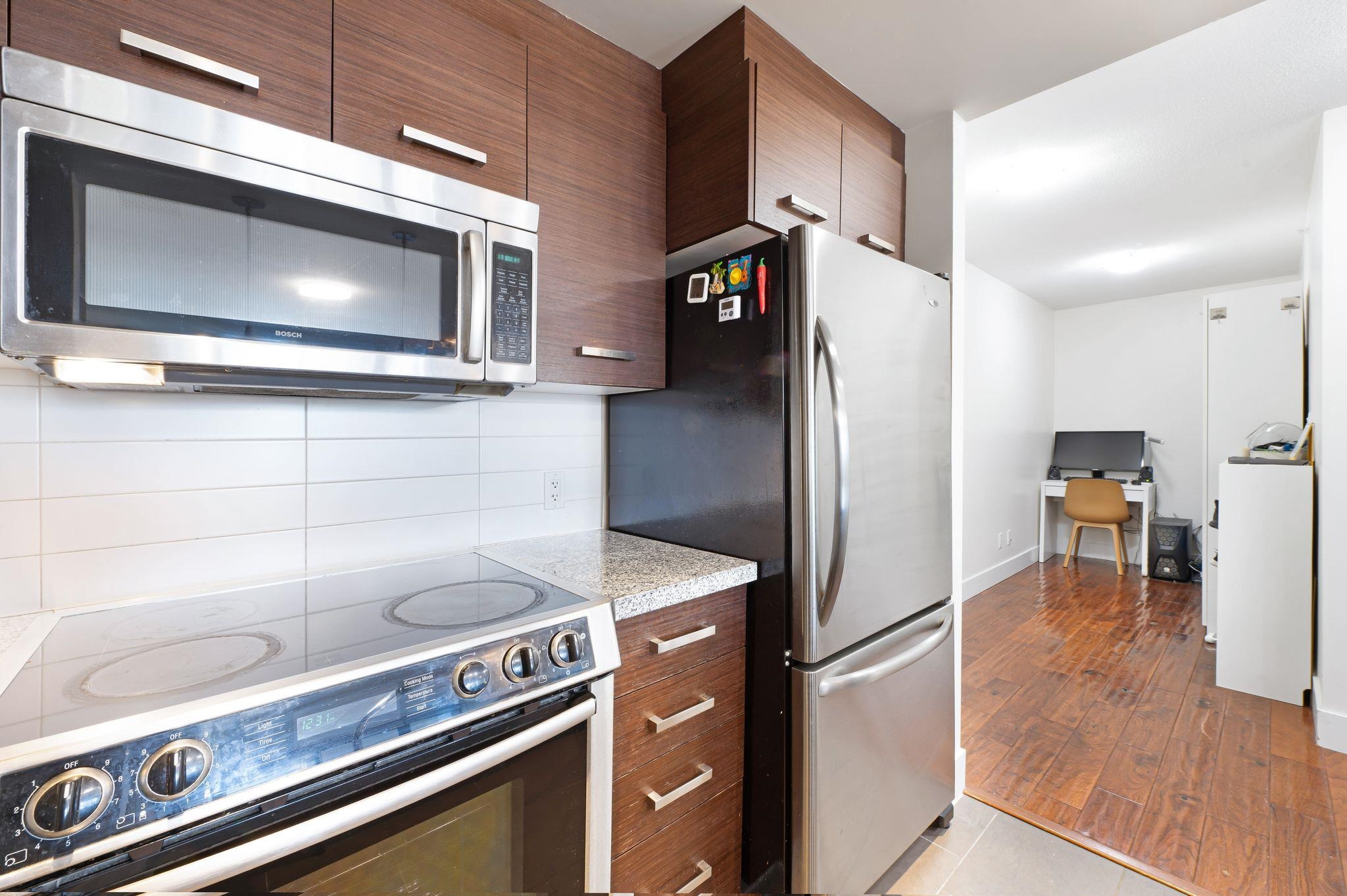 Bright and airy one-bedroom plus den with over 710 sq. ft. of living space. This well-maintained home offers floor-to-ceiling windows, open concept layout, and engineered hardwood floors. The modern kitchen features Bosch stainless steel appliances and granite and marble countertops, while the spacious bedroom has a walk-in closet. The den is perfect for an office or reading nook, and the large balcony is great for relaxing or entertaining. Enjoy Parc's amenities: fitness centre, yoga studio, media room, lo...