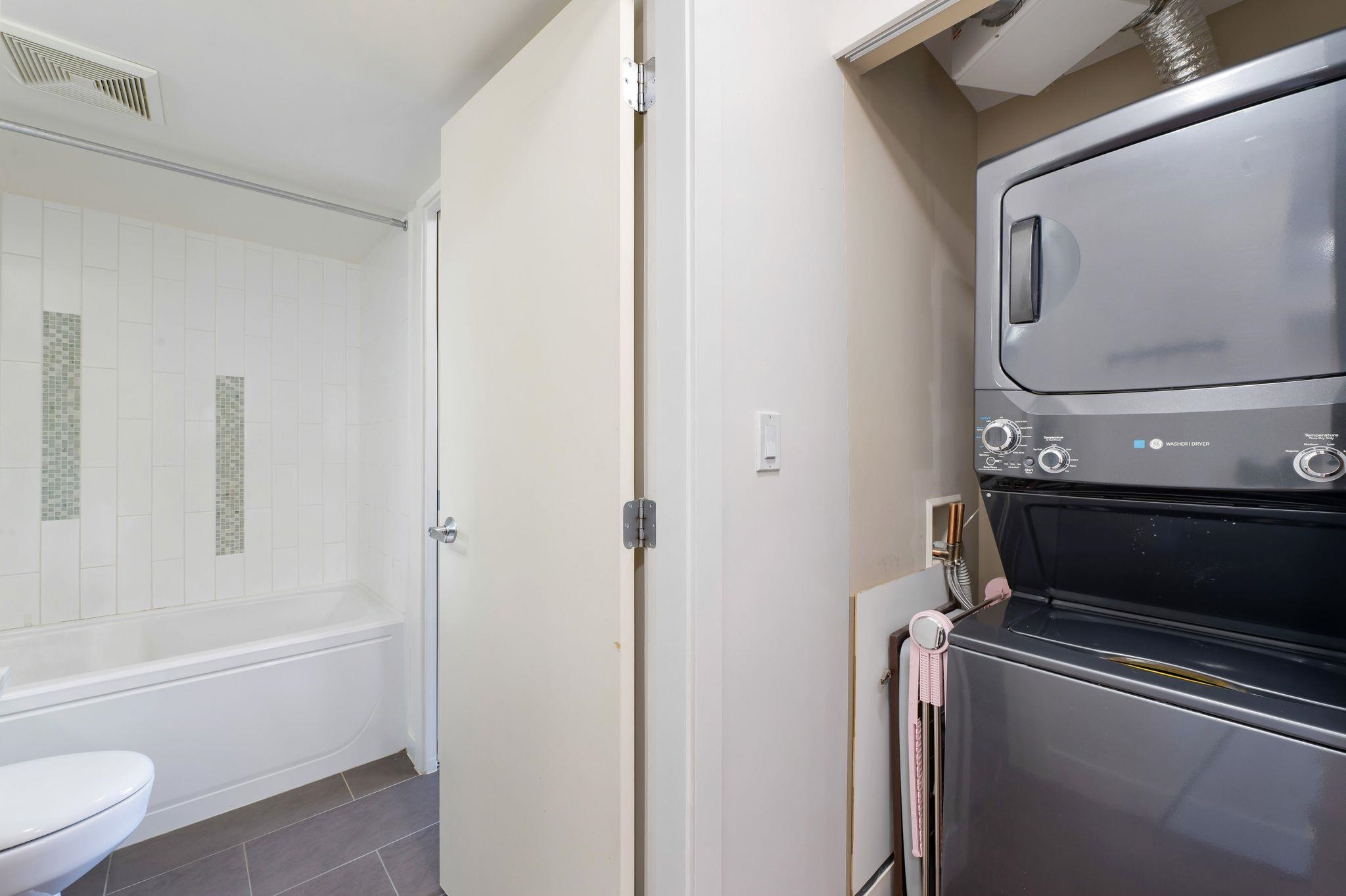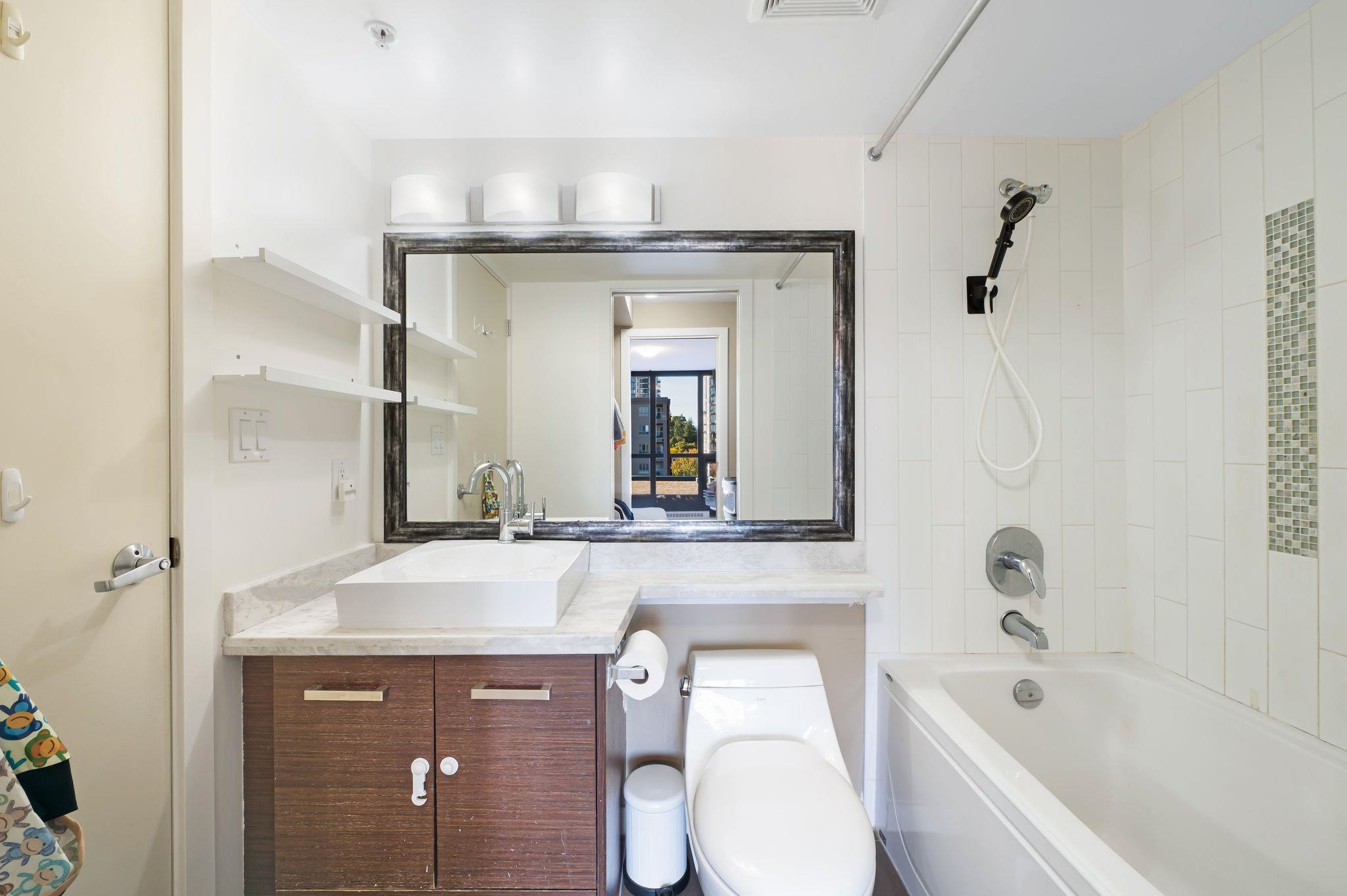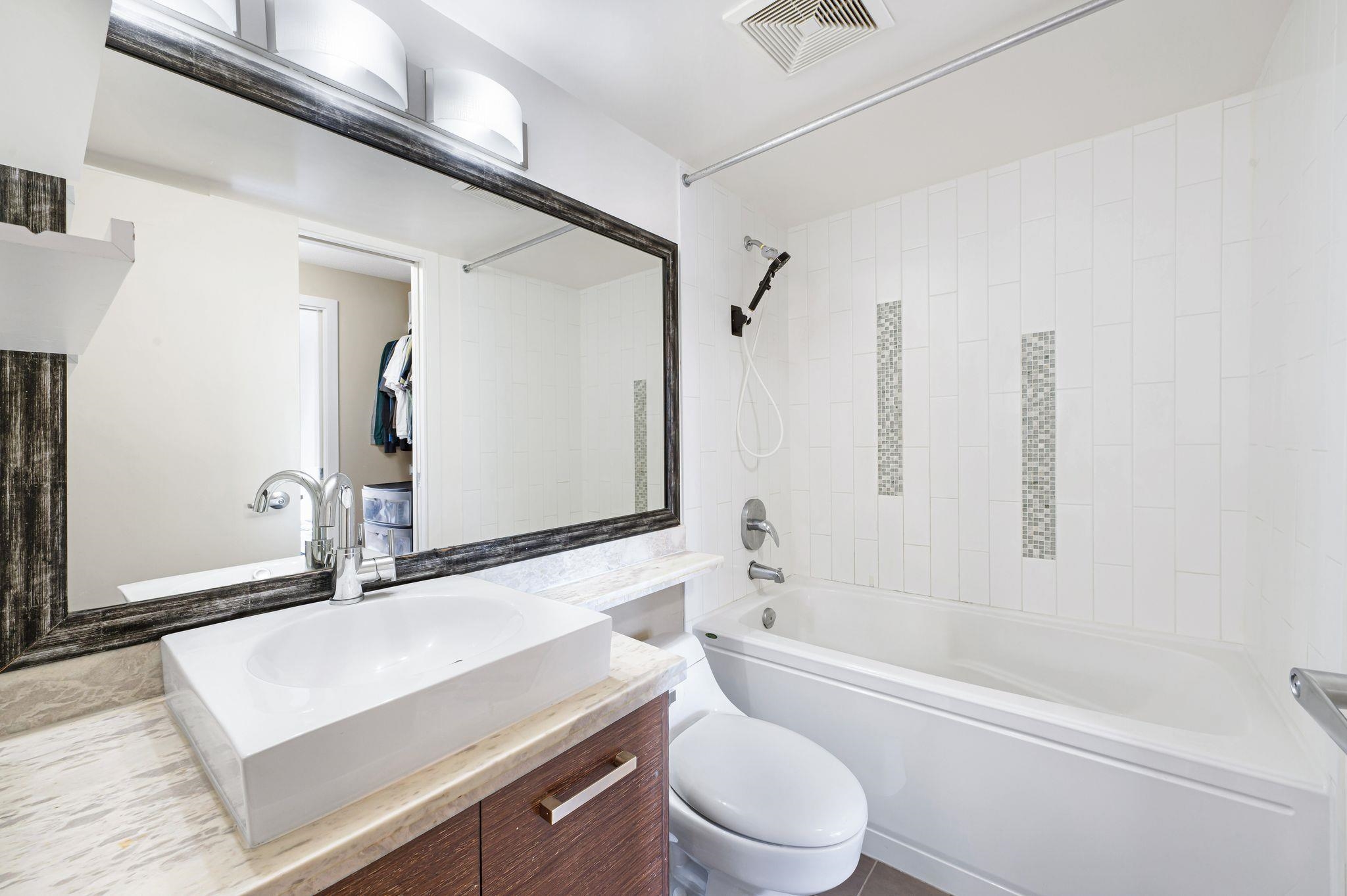 Bright and airy one-bedroom plus den with over 710 sq. ft. of living space. This well-maintained home offers floor-to-ceiling windows, open concept layout, and engineered hardwood floors. The modern kitchen features Bosch stainless steel appliances and granite and marble countertops, while the spacious bedroom has a walk-in closet. The den is perfect for an office or reading nook, and the large balcony is great for relaxing or entertaining. Enjoy Parc's amenities: fitness centre, yoga studio, media room, lo...
