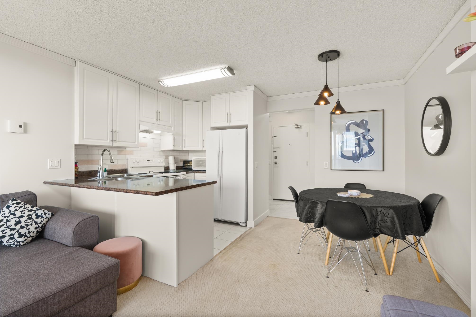 Discovery Place I, a Bosa-built building with a proactive, well-managed strata. The heavy lifting has already been done -and paid for- offering real peace of mind and no surprises. Extensive upgrades include new windows and sliding patio doors (2023), repiping with updated risers, roof replacement, building envelope work, refreshed lobby, hallways, and modernized elevators (3). Maintenance fees have not increased in 7 years! This 918 sq ft west-facing 2 bedroom, 2 bathroom home offers a functional layout an...