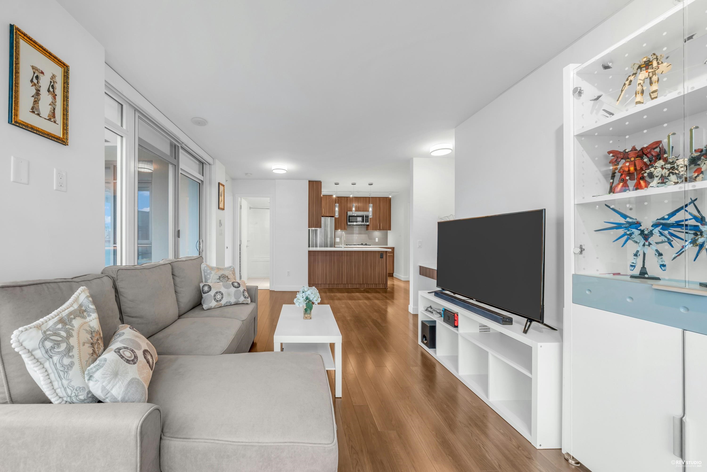 Stunning 2-bedroom, 2-bath South Corner home in the sought-after "Viceroy" by Bosa! Bright, spacious layout with floor-to-ceiling windows showcasing panoramic City, River & Mountain views. Modern kitchen with large island & full-size appliances. Enjoy a generous 115 sqft patio, perfect for BBQs or relaxing. Steps to shops, cafes, transit & amenities. Includes 1 parking & 1 locker. Urban living at its finest!