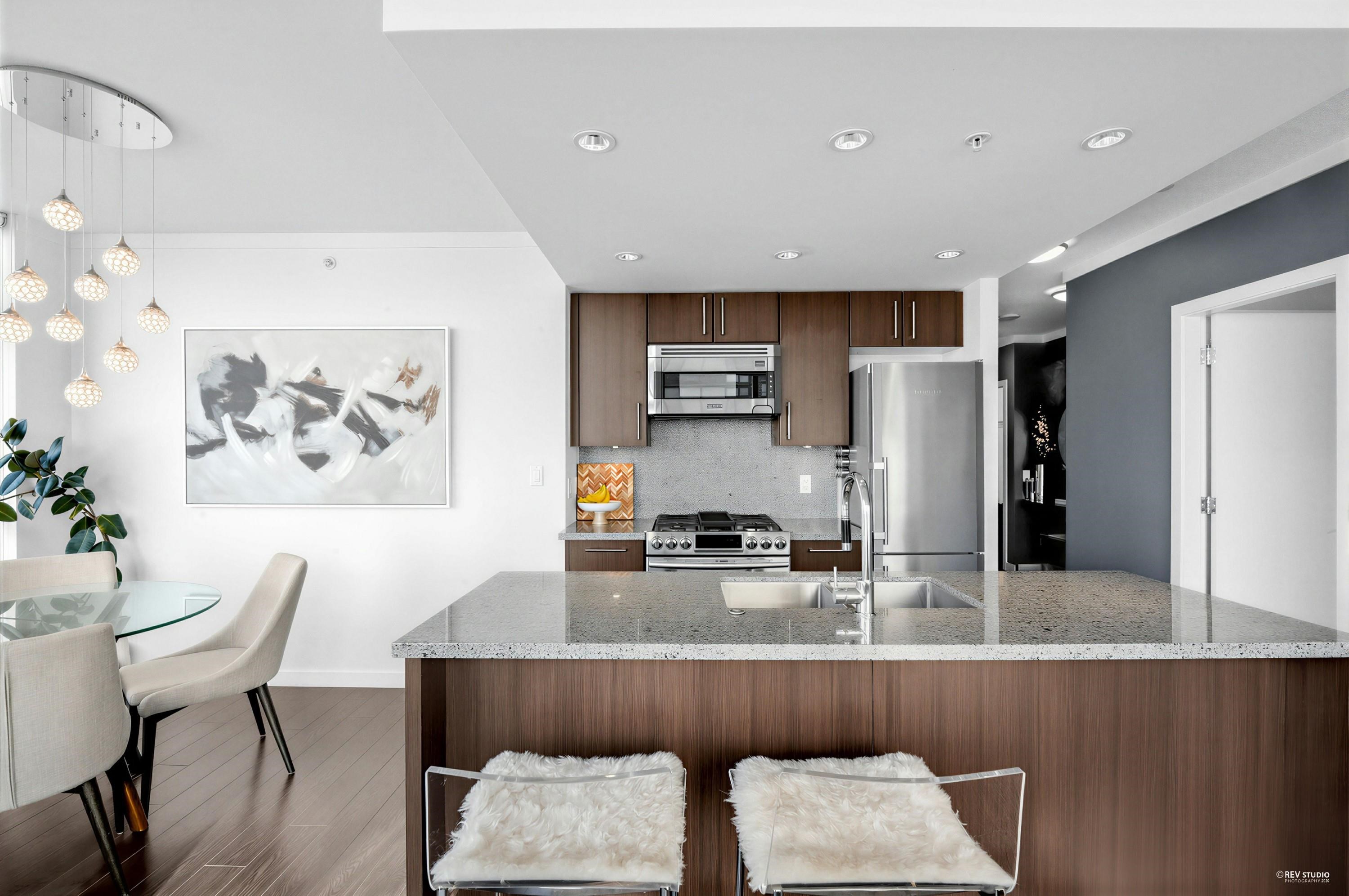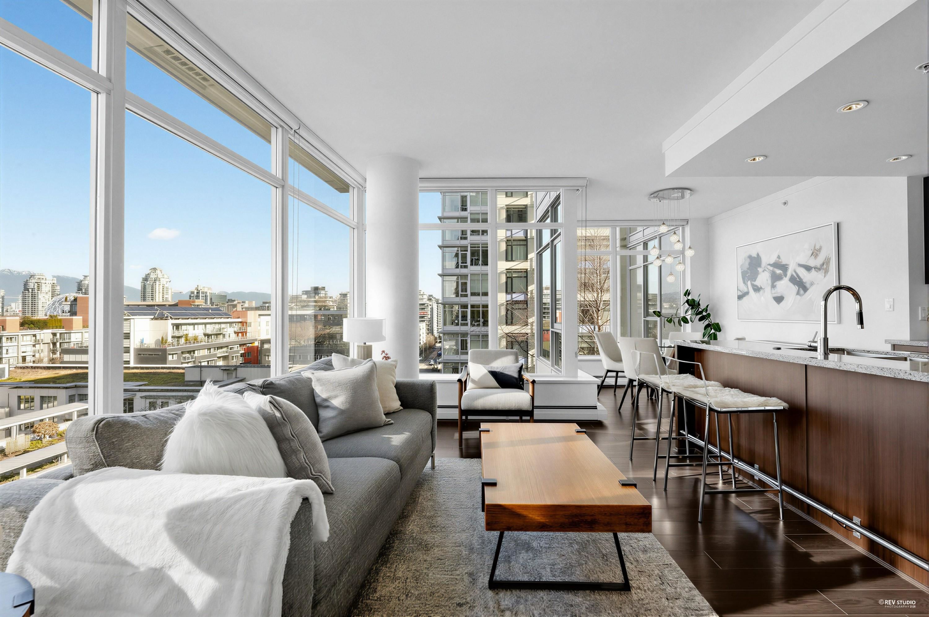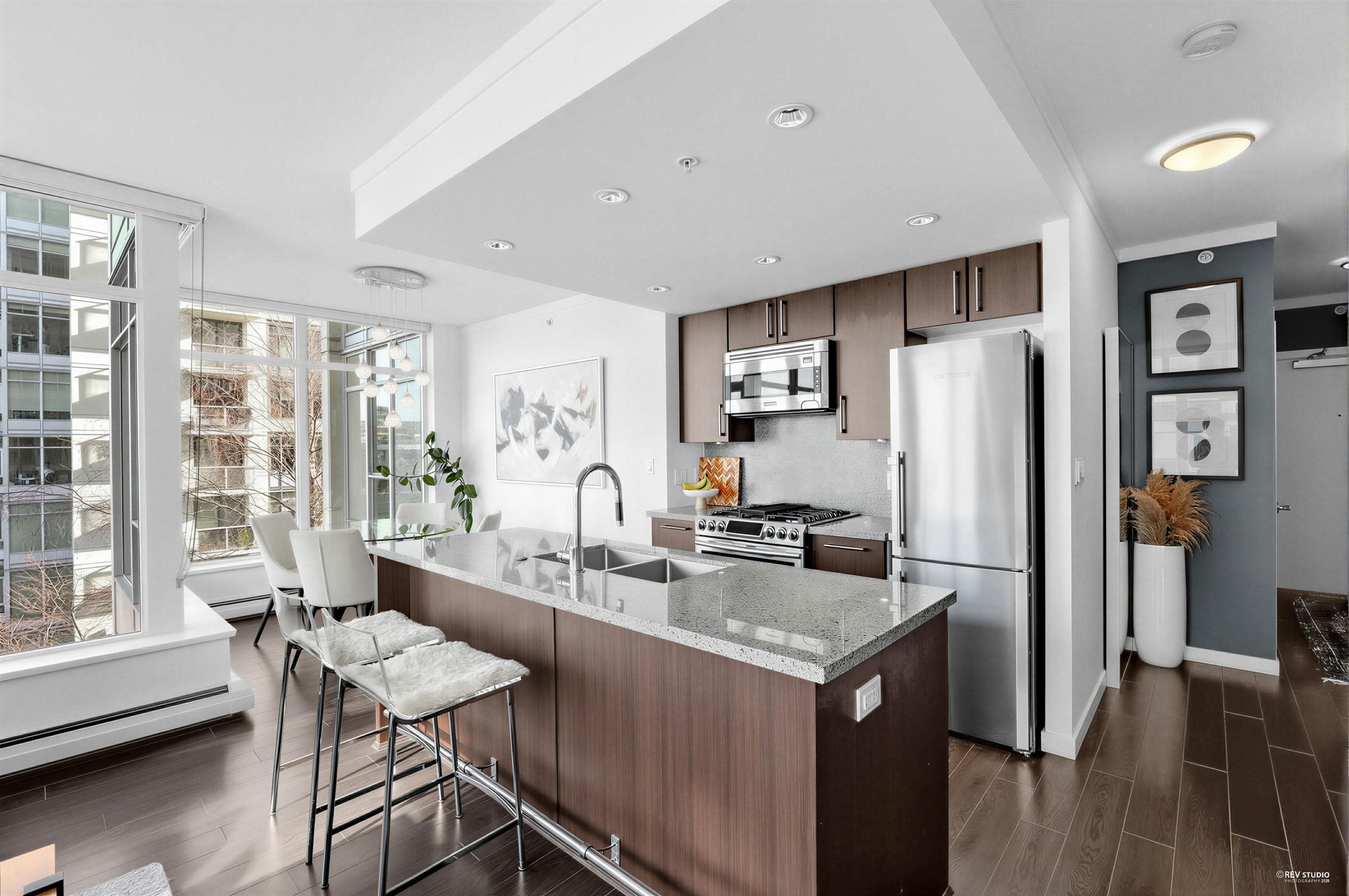 Experience the ultimate Vancouver lifestyle in this spacious 704 sq. ft. 1-Bedroom + Flex + Solarium home in False Creek. Perched on the quiet side of the building away from traffic, this residence offers breathtaking, Water and Mountain views. The functional floor plan features a modern kitchen with a gas cooktop, quartz countertops, and premium appliances. Enjoy a lively neighborhood just steps from the seawall, Hinge Park, trendy coffee shops, and world-class dining. With the Olympic Village SkyTrain sta...