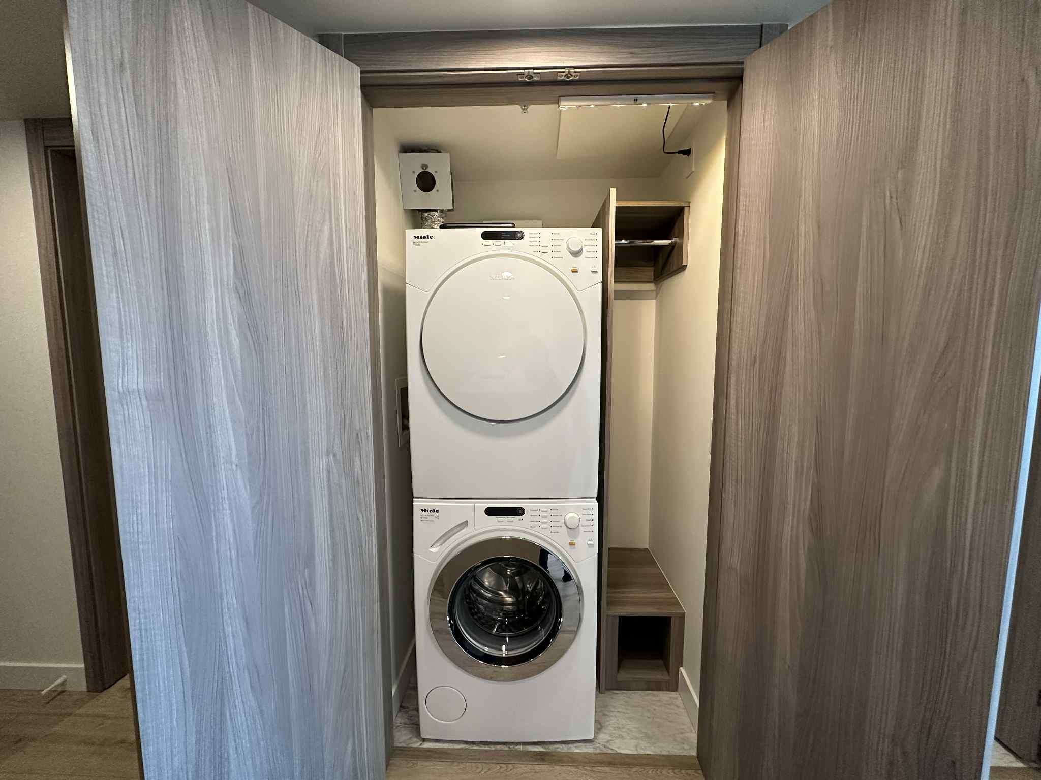 Immaculate Condition 1 Bed + Den at W1 by Concord! This rare 577sf West-facing home features A/C, floor-to-ceiling windows, spacious kitchen w/ island, dining & living areas, Miele appliances, and large den ideal for office/storage. Comes w/ 1 parking & 1 locker. Top Tier Amenities: 24hr concierge, gym, touchless car wash, karaoke, card/game room, tutor & meeting rooms. Steps to Marine Gateway, T&T, Cineplex, banks, SkyTrain & more! OPEN HOUSE SUN OCT 19 (2-4pm)