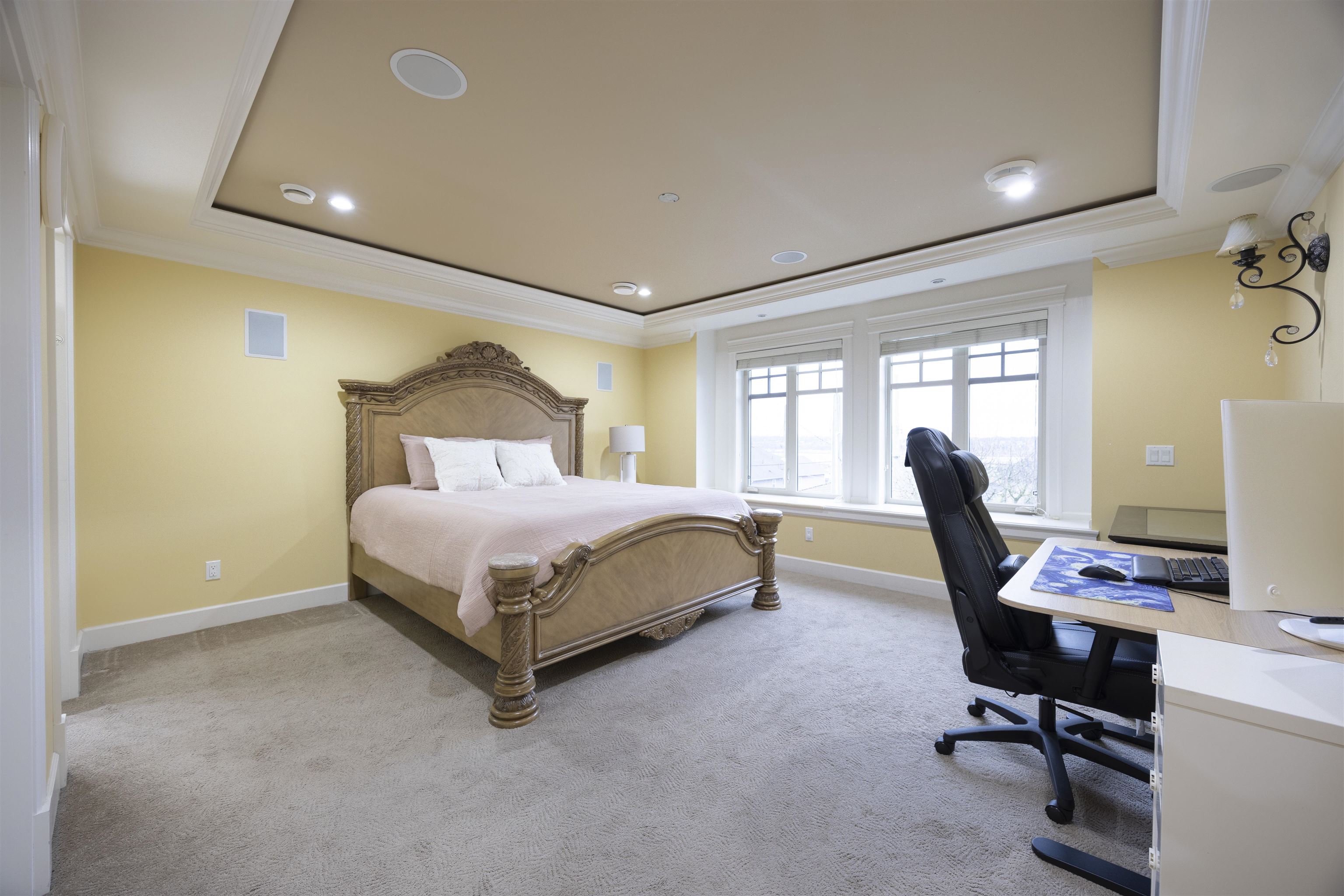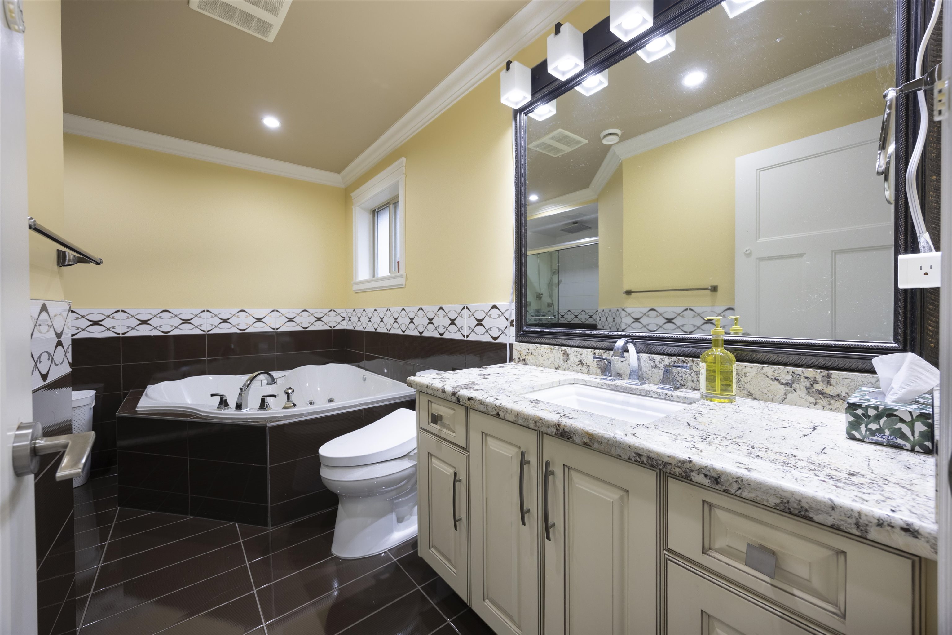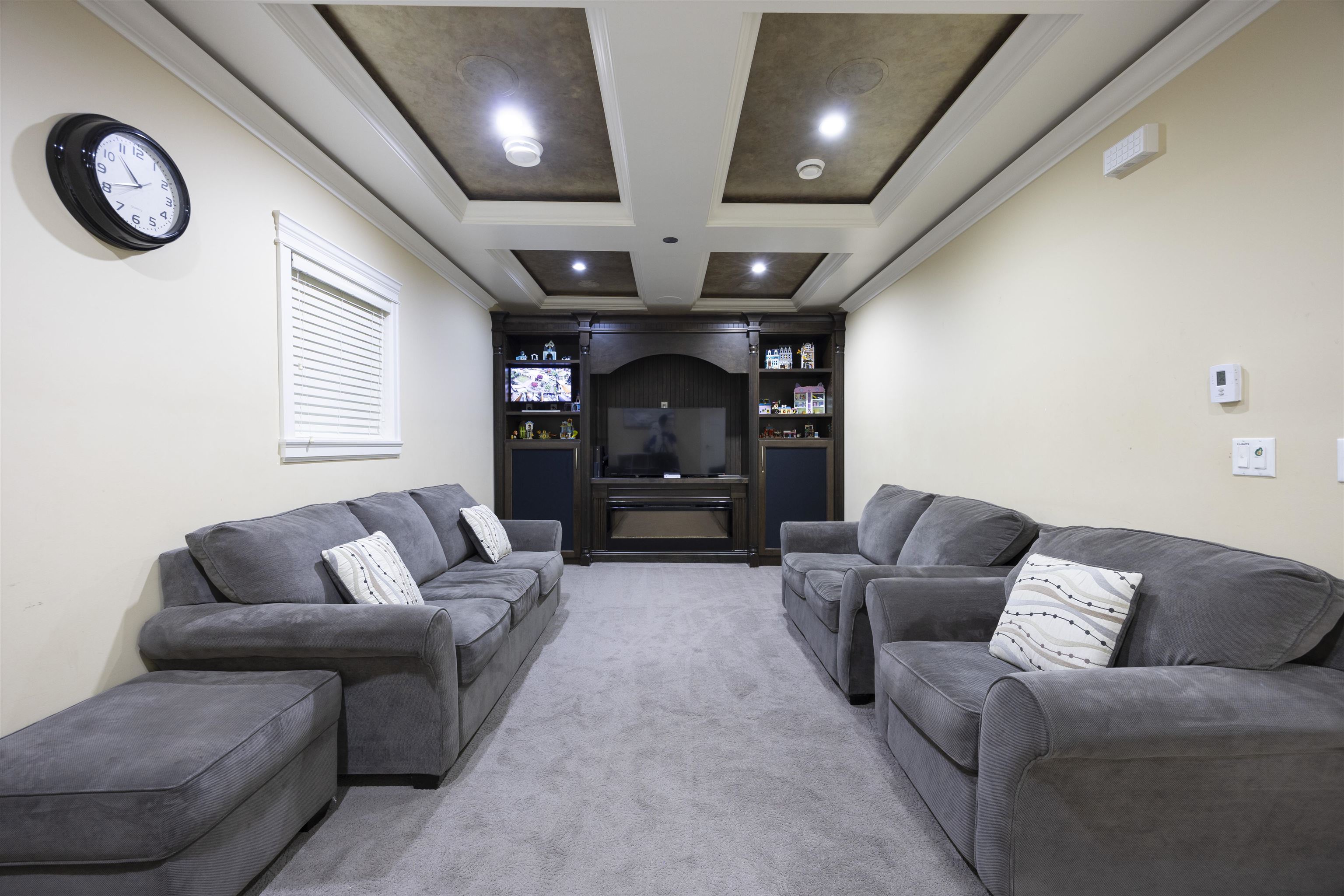 Quality custom-built 3-level home in prime Maillardville, Coquitlam. Elevated lot with sweeping south-east Fraser River views. Approx. 5,288 sq ft, 9 bedrooms, 6 bathrooms—ideal for large or multi-generational living. Main level: open-concept, 10-ft ceilings, spacious living/dining, gourmet kitchen with granite island + separate wok kitchen. Features include radiant in-floor heating, A/C with HRV, built-in sound/security, theatre room, wet bar, spa-style ensuite. Includes 2 self-contained suites: 2-bedroo...